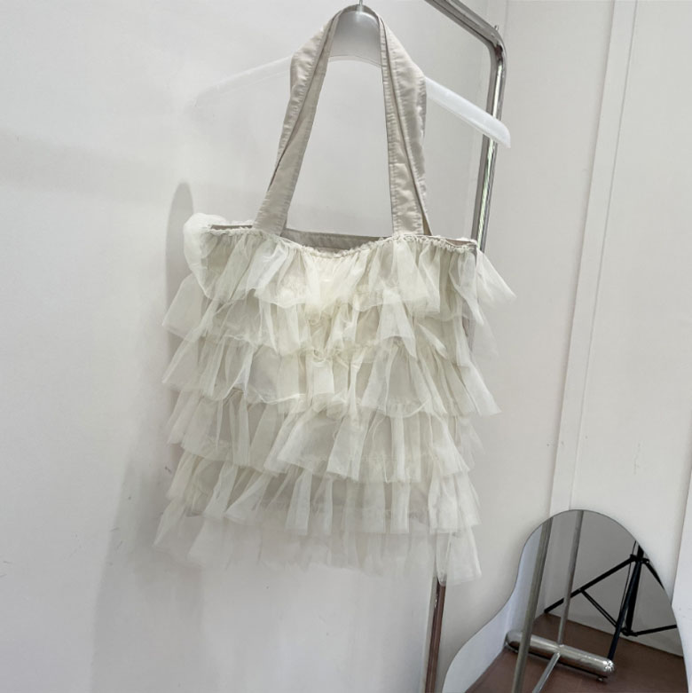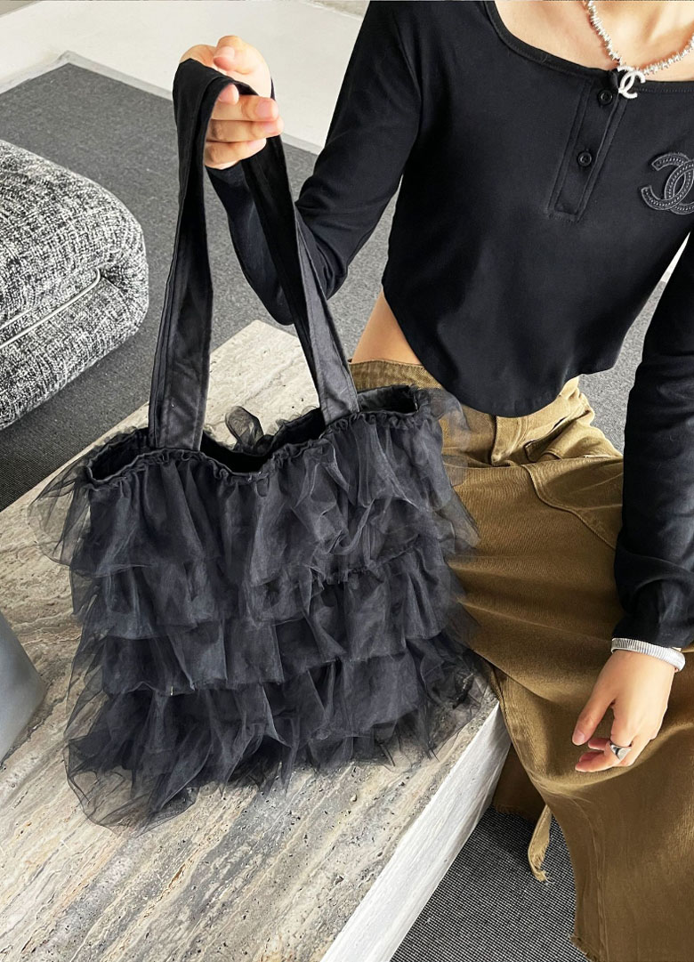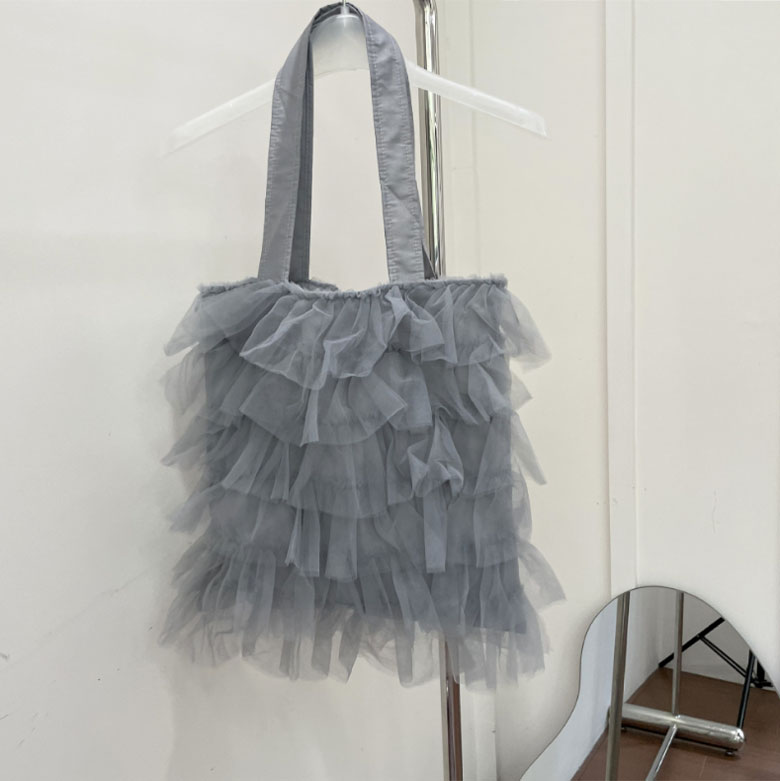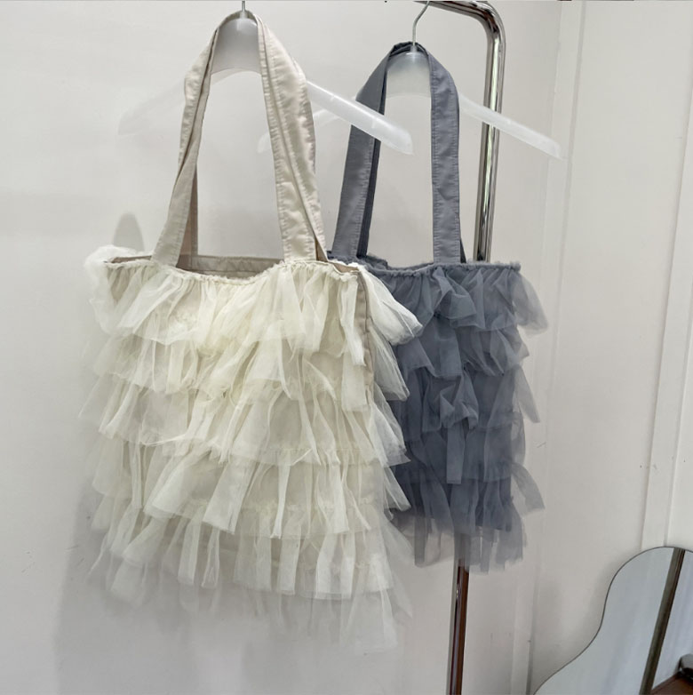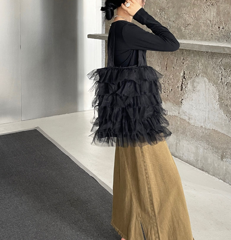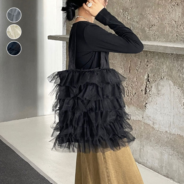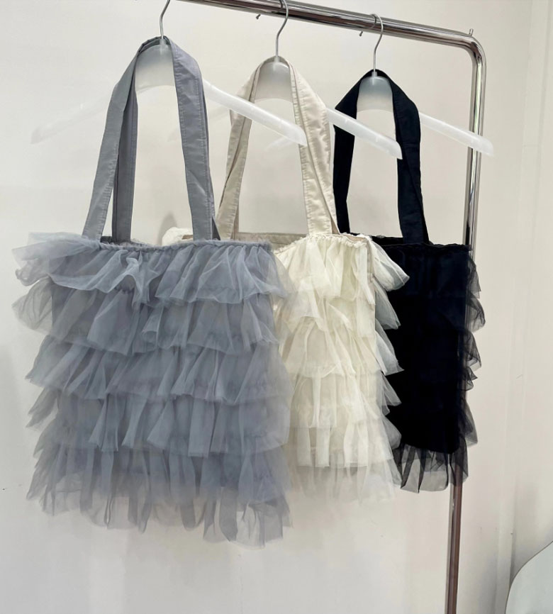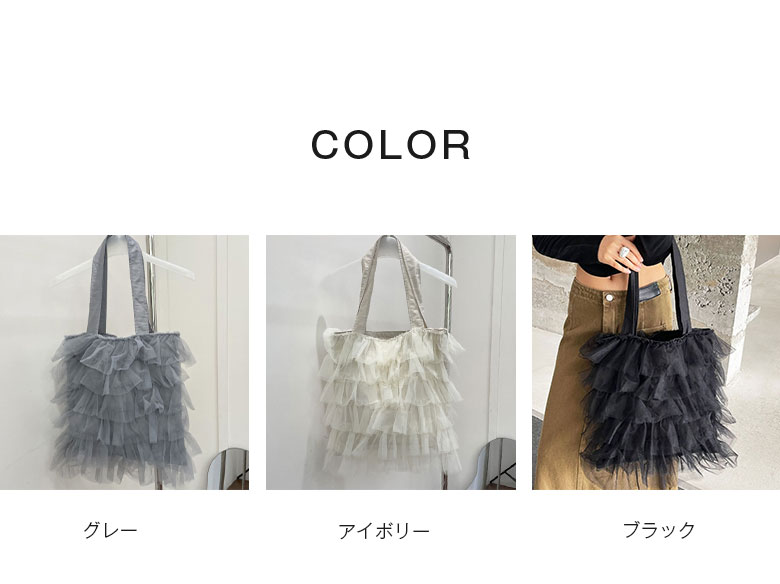 チュールフリル トートバッグ レディー バッグ 小物 ブランド雑貨 割引 グレー アイボリー ブラック
