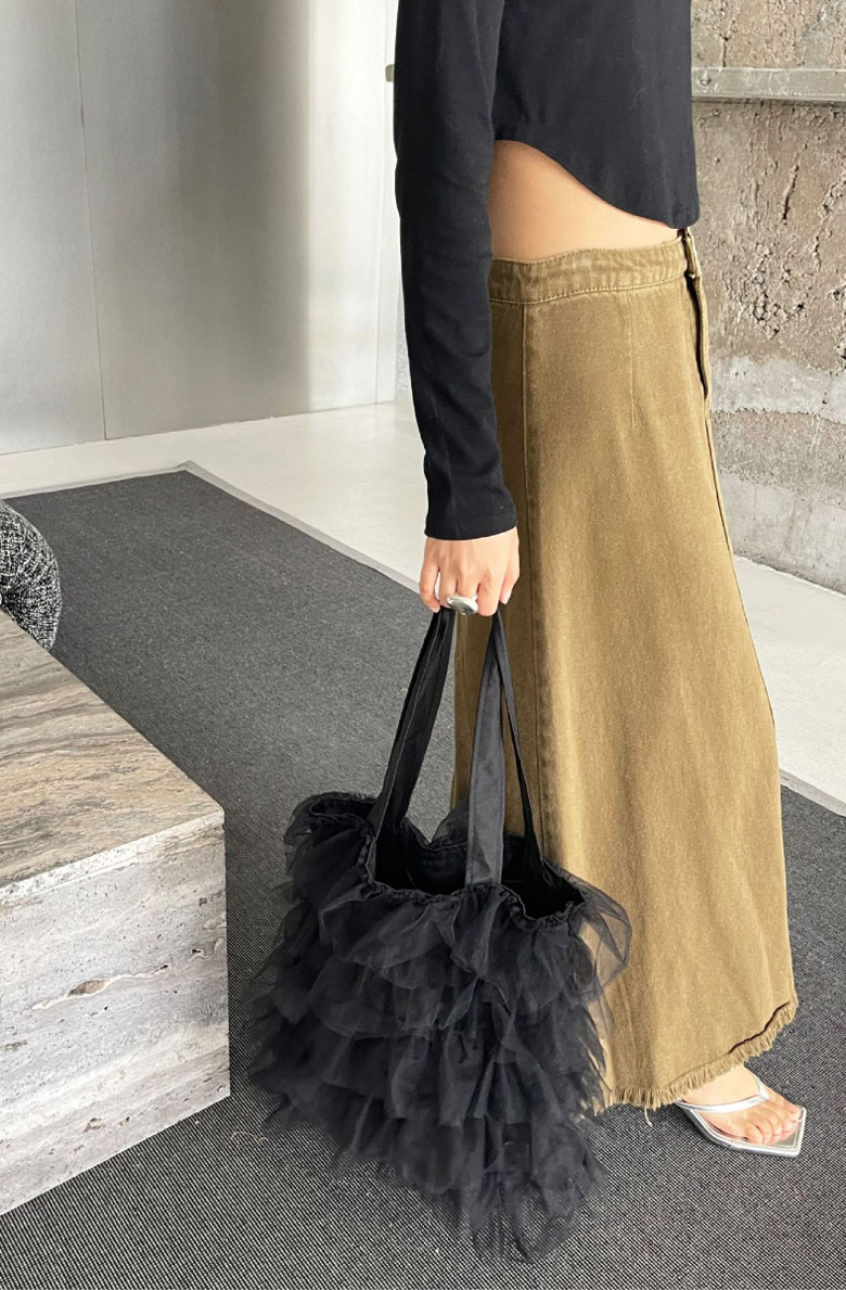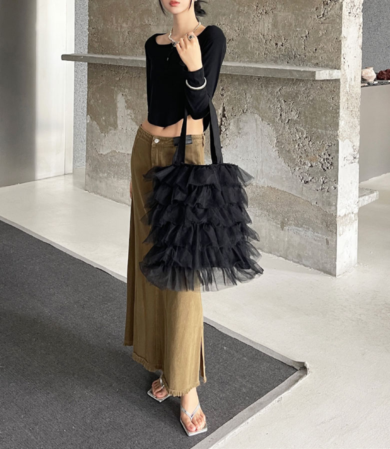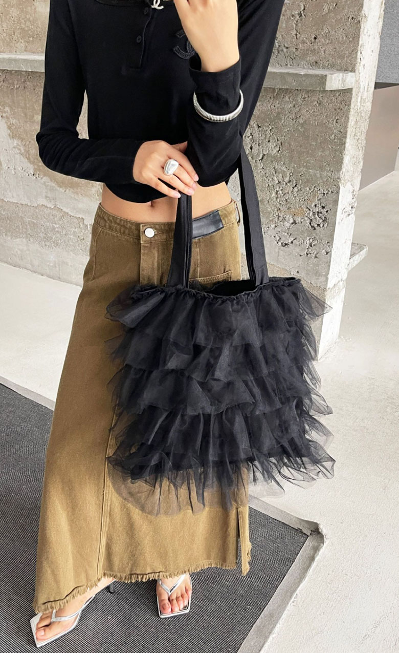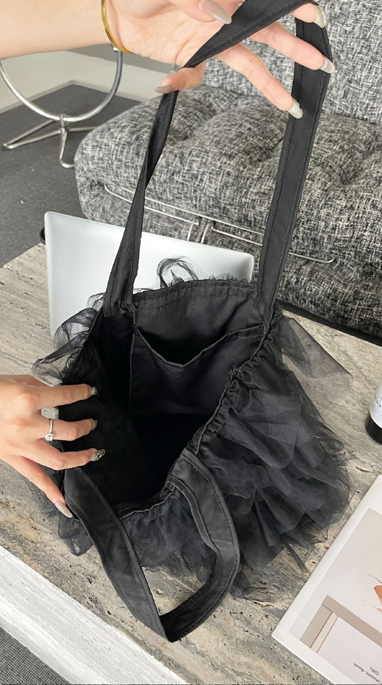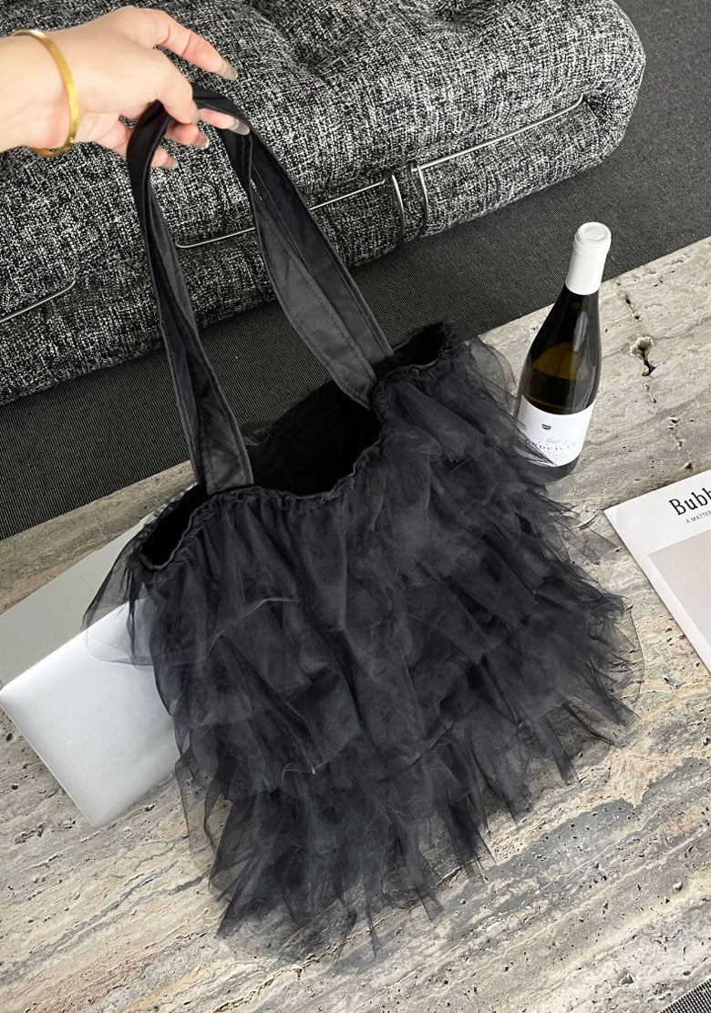 チュールフリル トートバッグ レディー バッグ 小物 ブランド雑貨 割引 グレー アイボリー ブラック