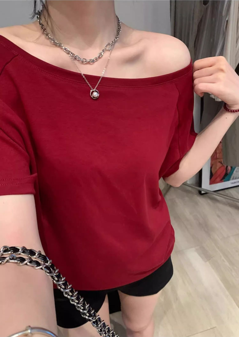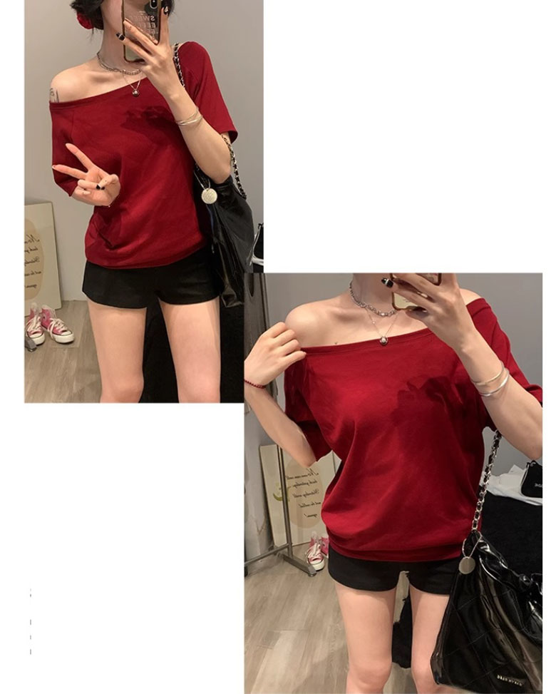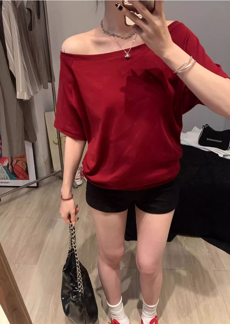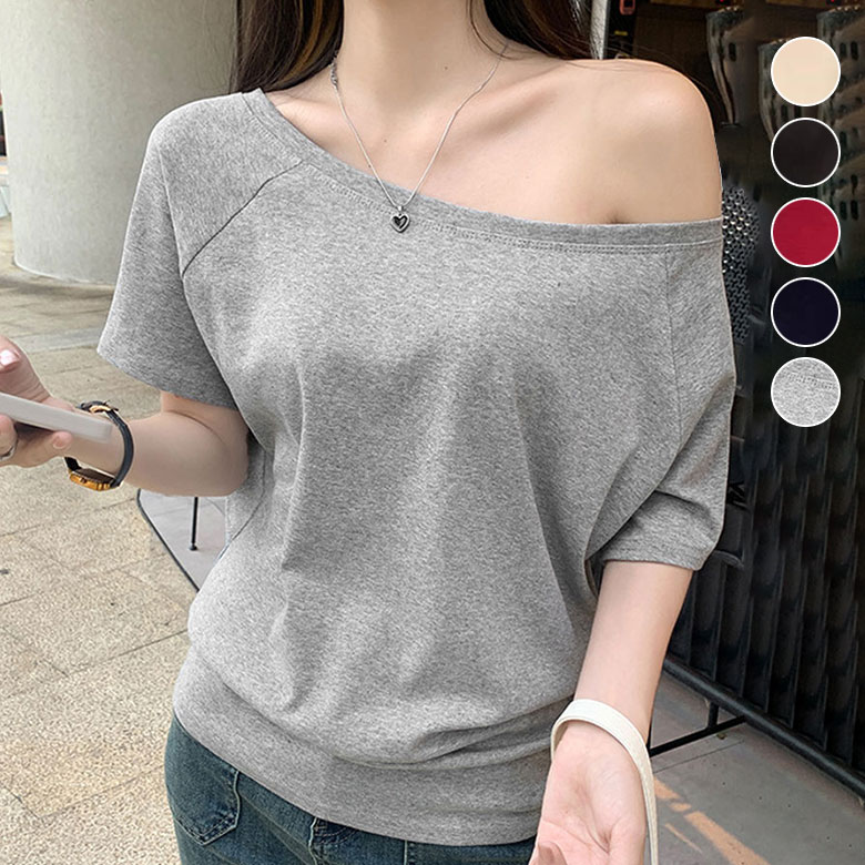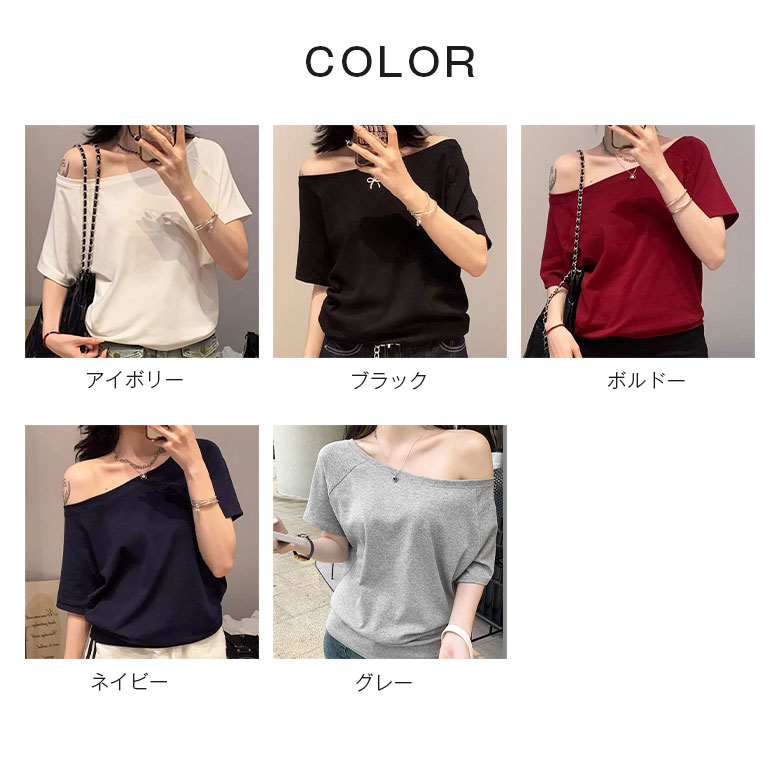 オフショルダー 半袖 Tシャツ レディ レディースファッション 人気 M L XL アイボリー ブラック ボルドー ネイビー グレー
