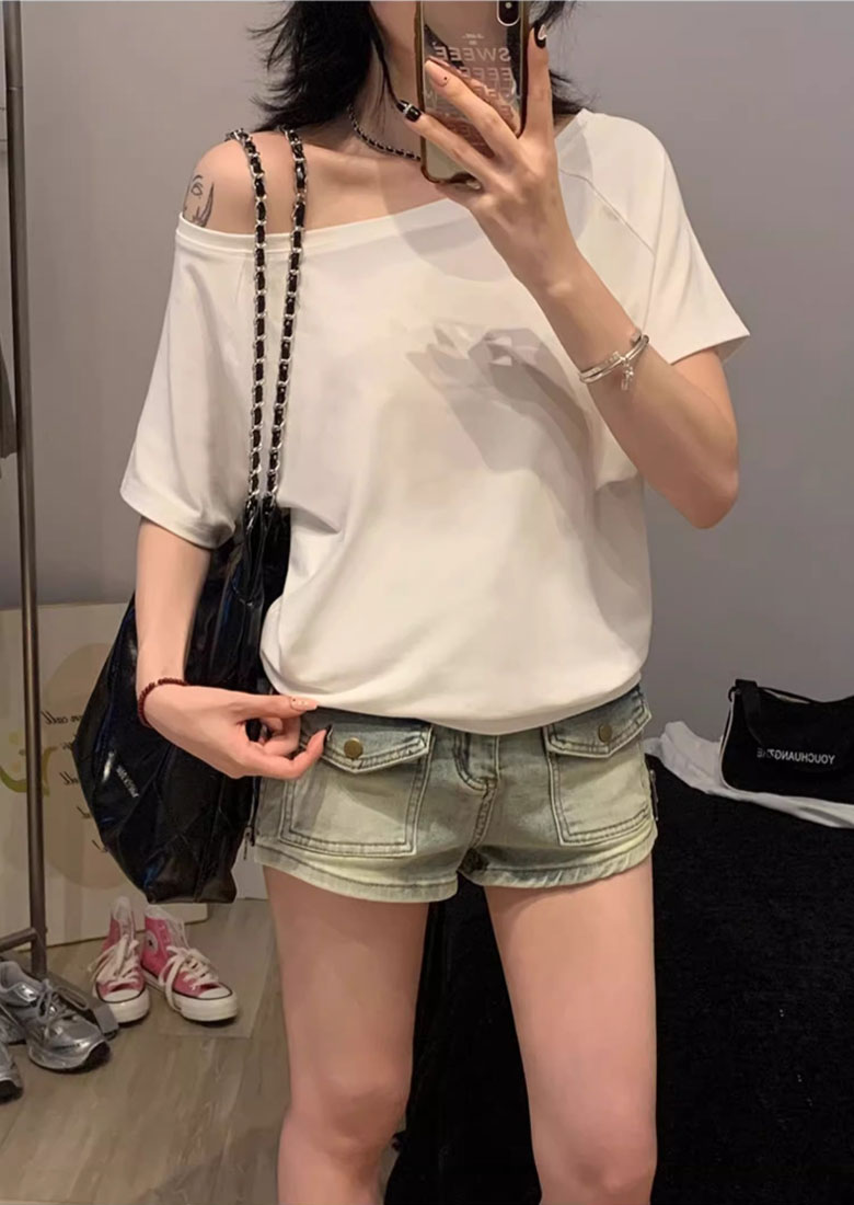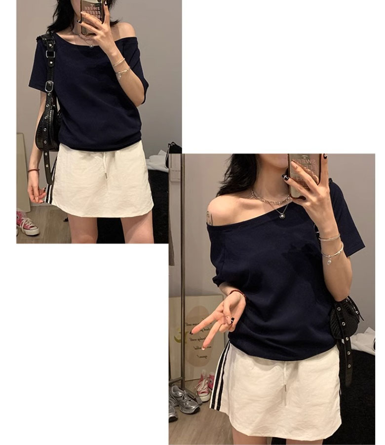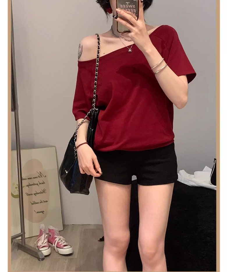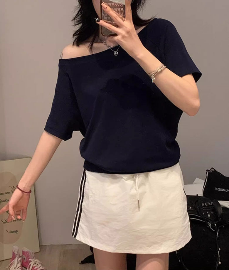 オフショルダー 半袖 Tシャツ レディ レディースファッション 人気 M L XL アイボリー ブラック ボルドー ネイビー グレー