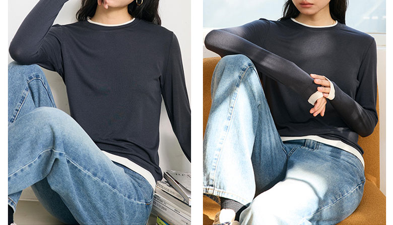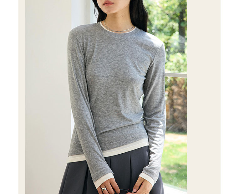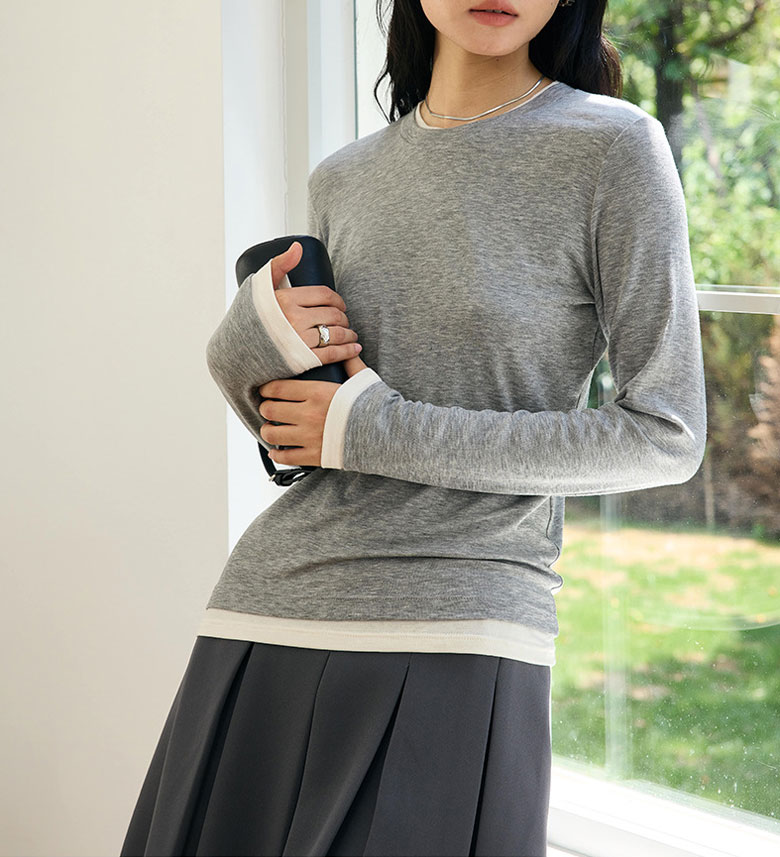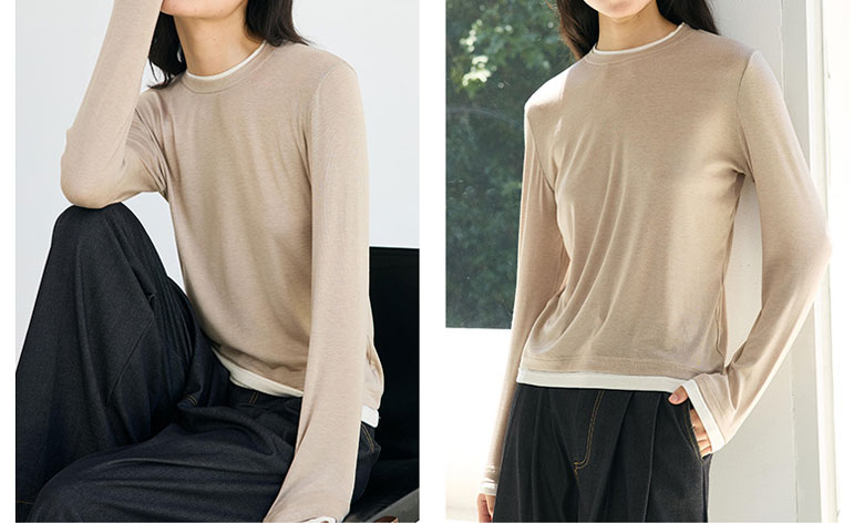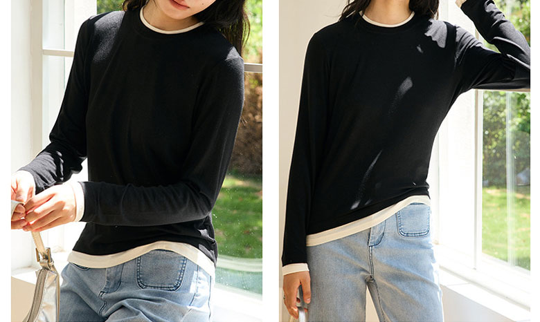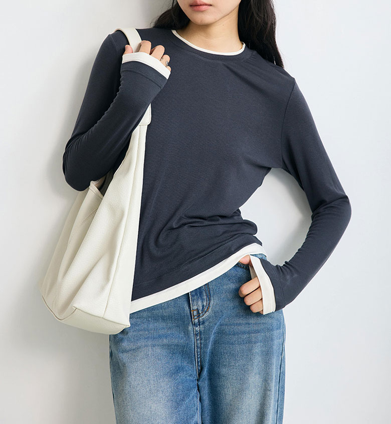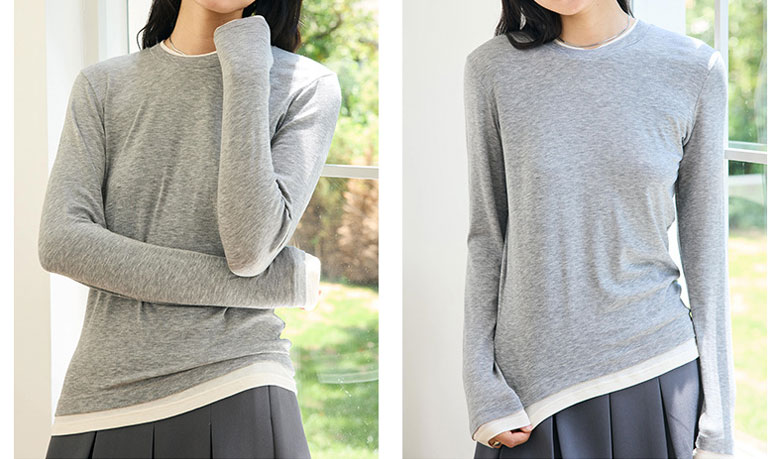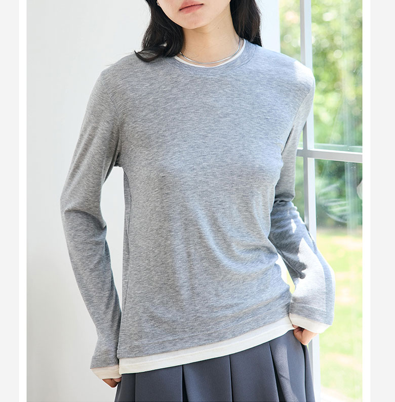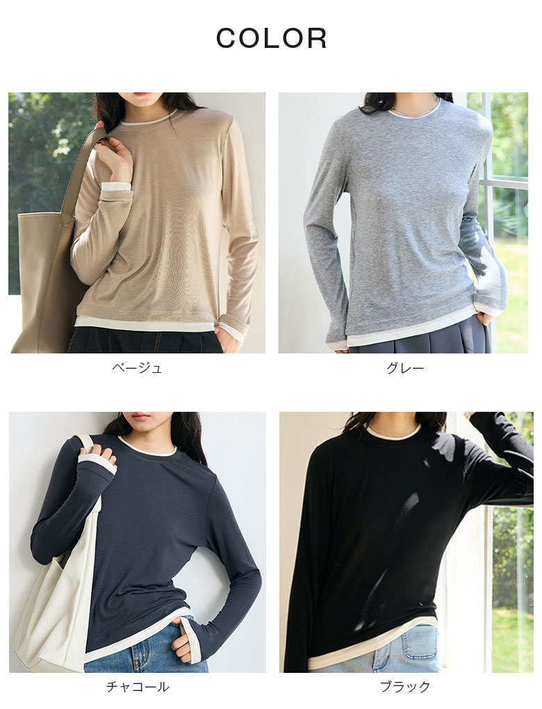 フェイクレイヤード 長袖 ニット セー トップス ニット セーター セーター お得なセール M L ベージュ グレー チャコール ブラック