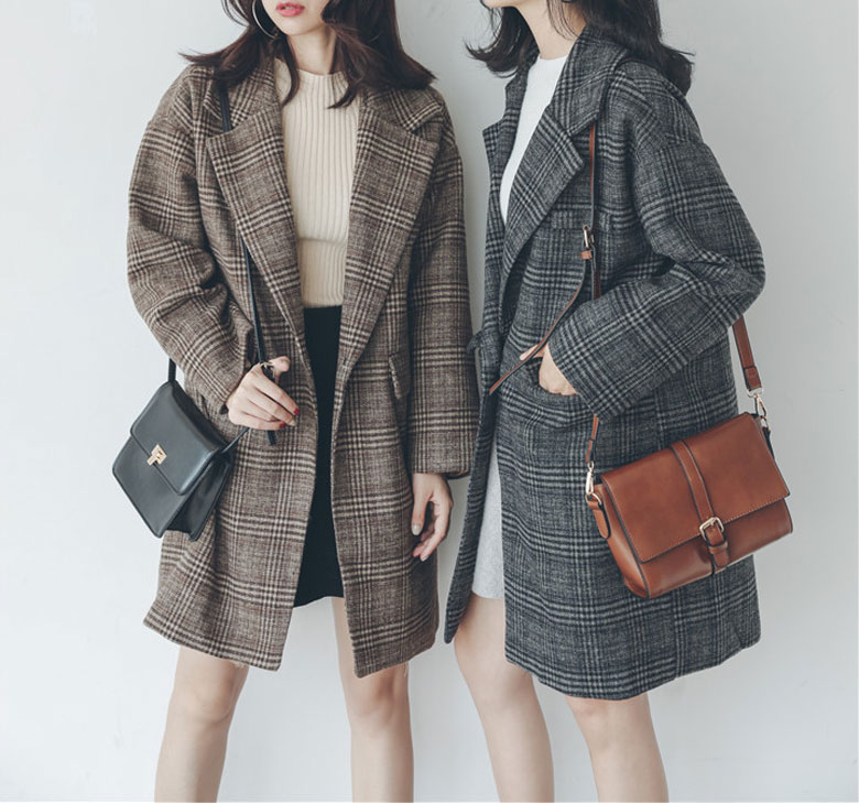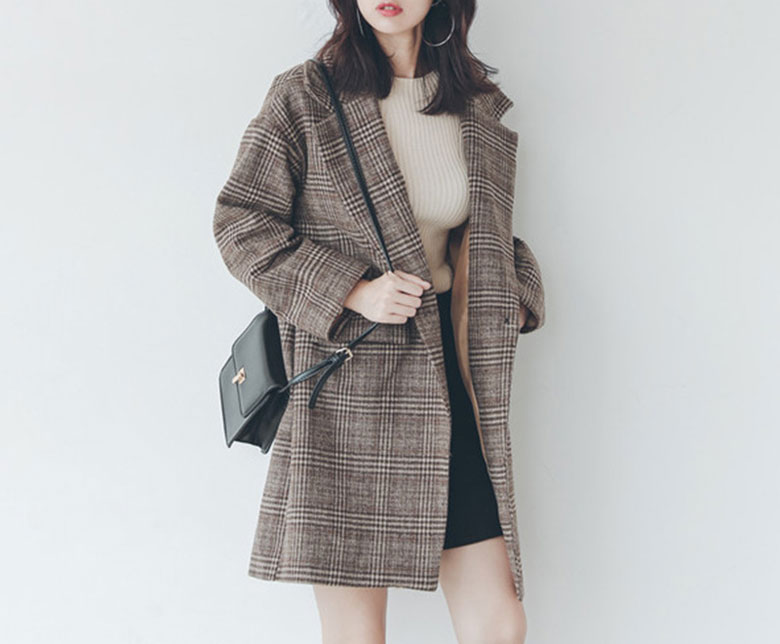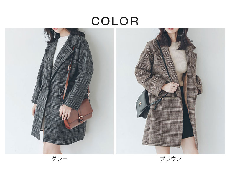 グレンチェック ウールコート レディー レディースファッション 豊富な品揃え M L XL グレー ブラウン