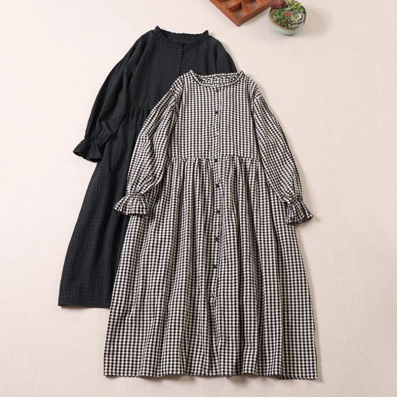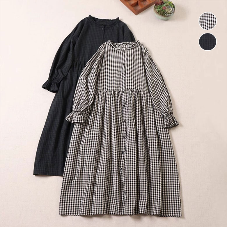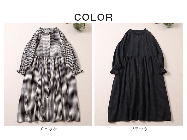 チェック柄 ワンピース レディース 春 ワンピース 割引 M L チェック ブラック