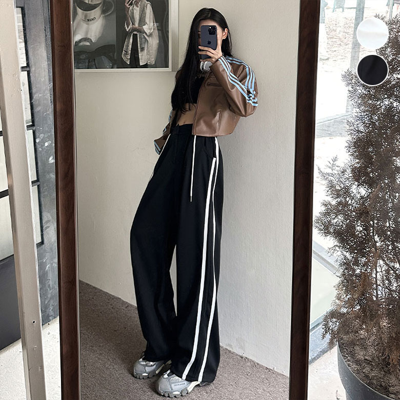 スポーツ ワイドパンツ レディース 秋 ボトムス パンツ 続々登場 S M L XL ホワイト ブラック
