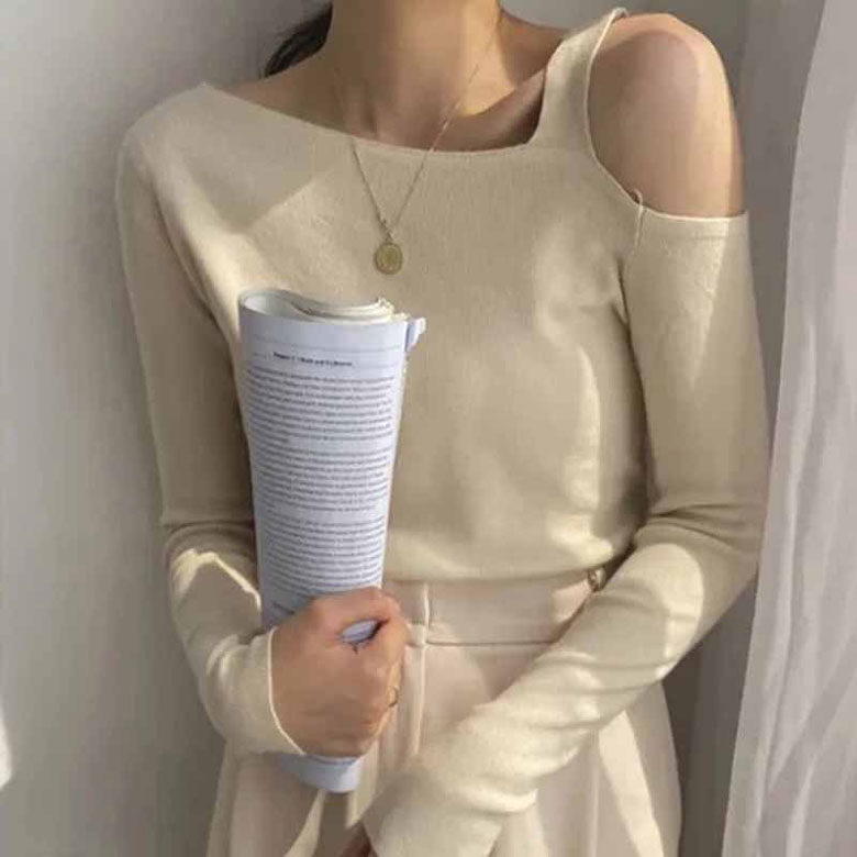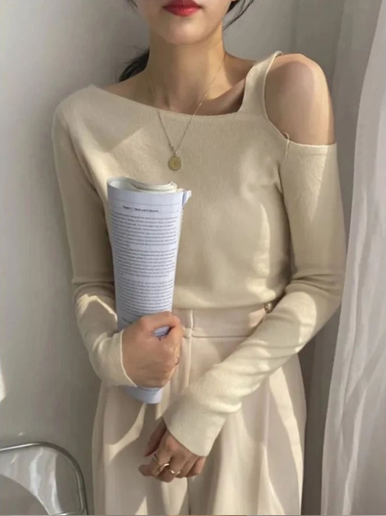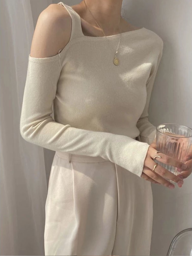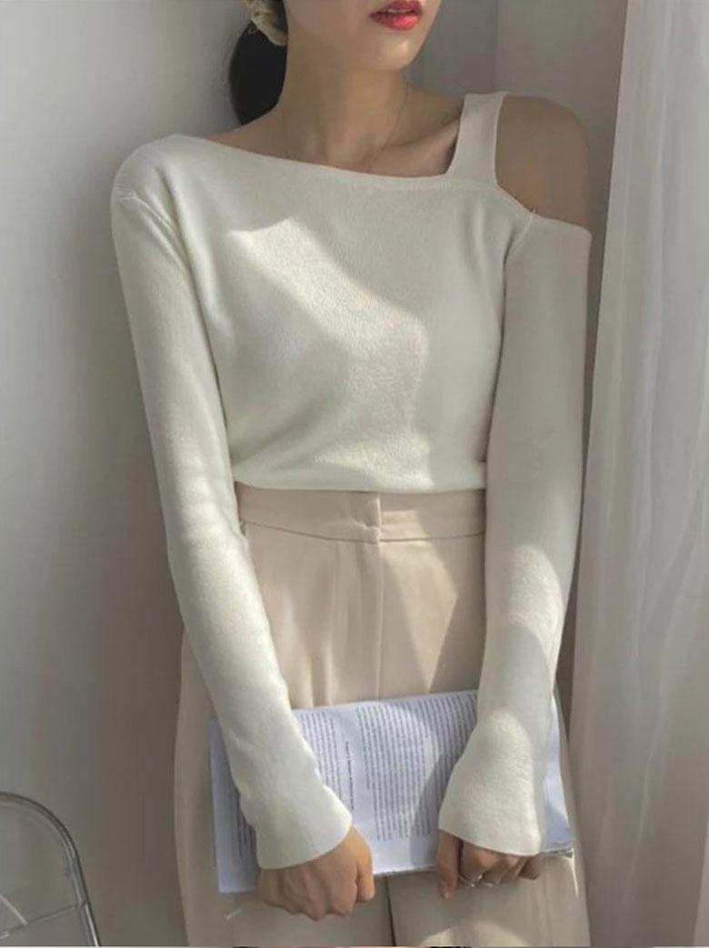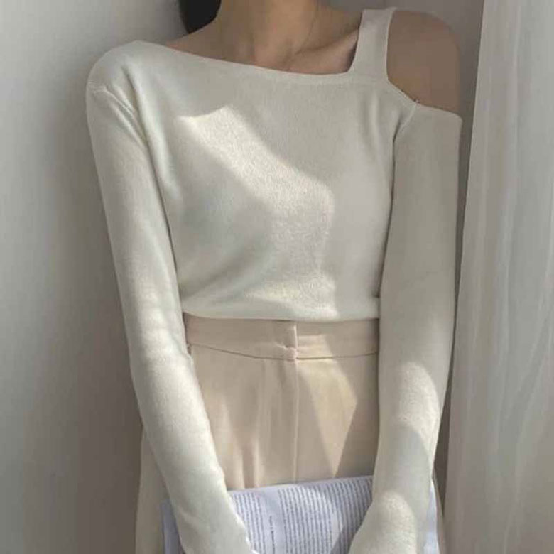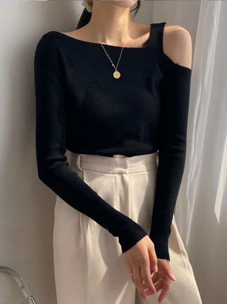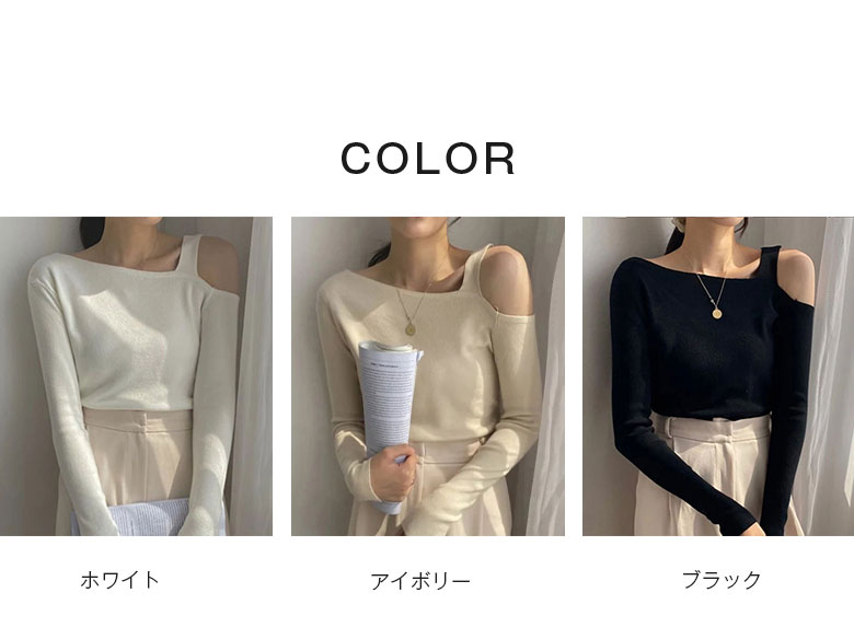 3B34肩出し ニット 長袖 トップス トップス ニット セーター セーター お得なセール ホワイト アイボリー ブラック
