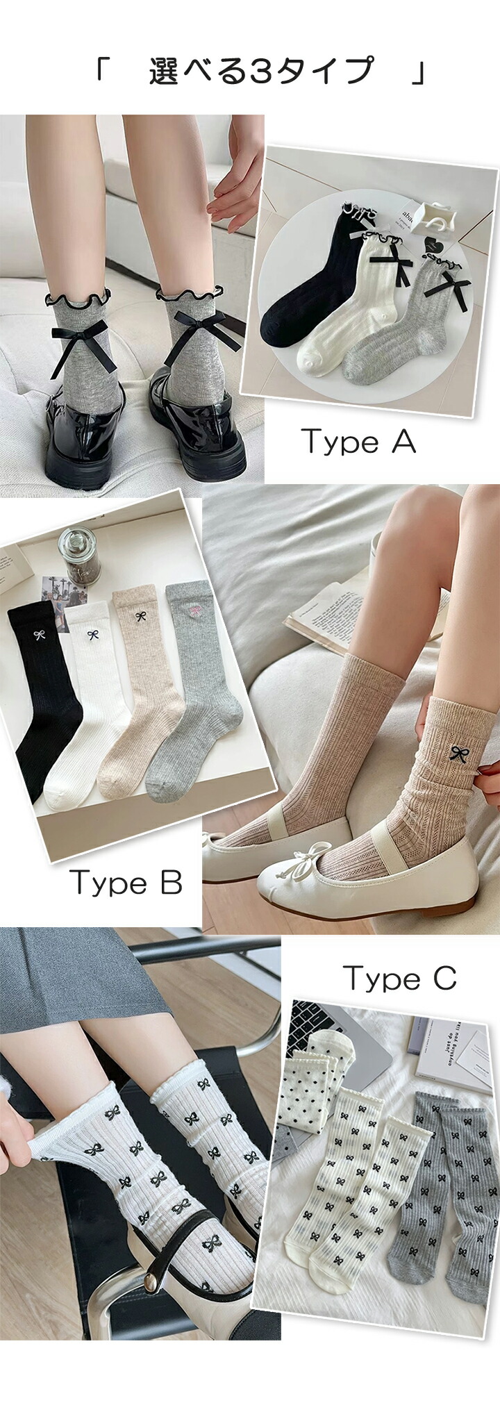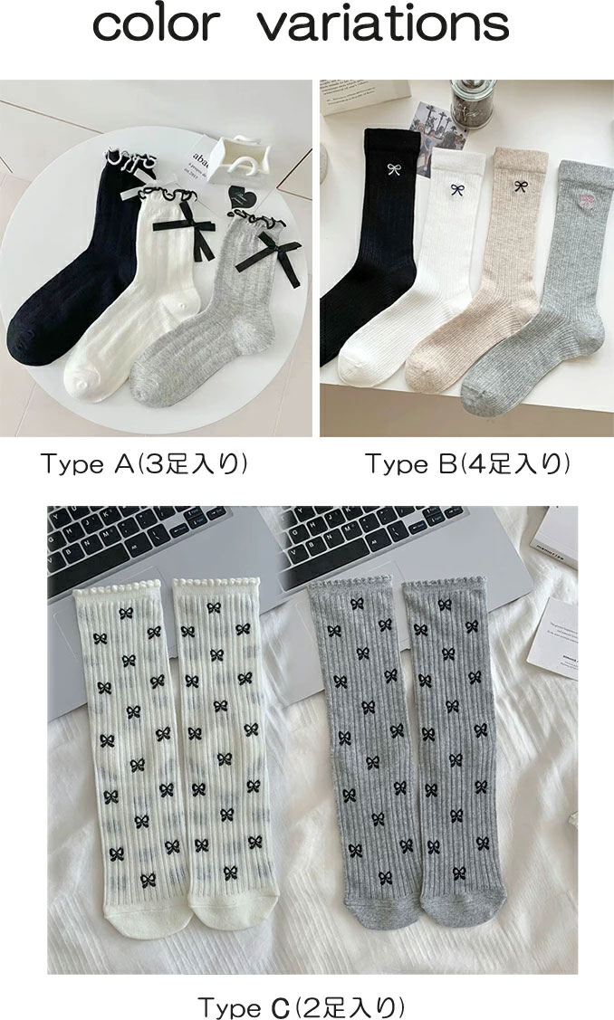 1B6 リボン柄ソックス 靴下レディー レディース 靴下 レッグウェア 靴下 お得なセール Type A(3足入り) Type B(4足入り) Type C(2足入り)