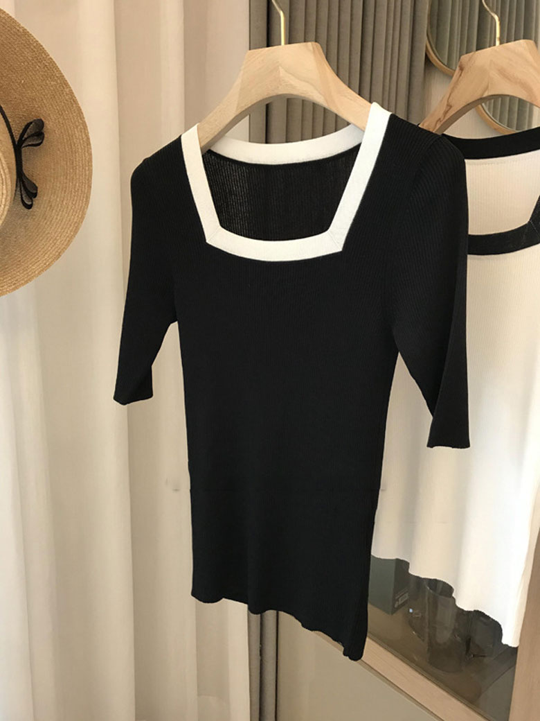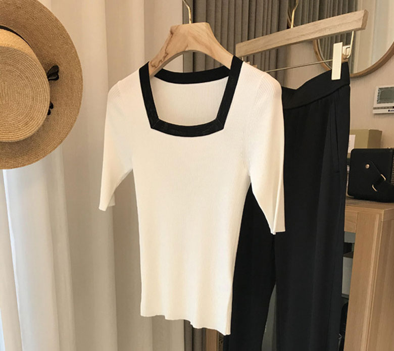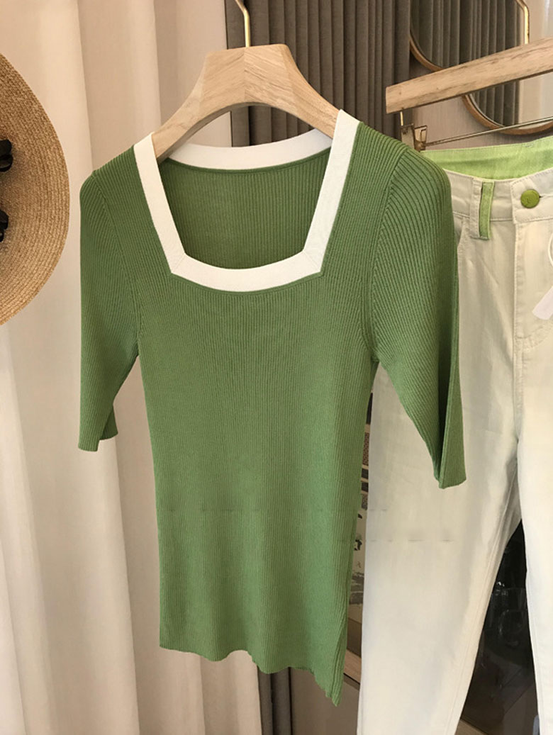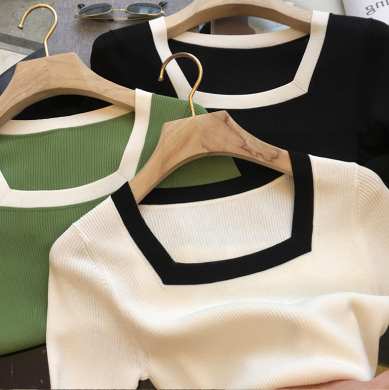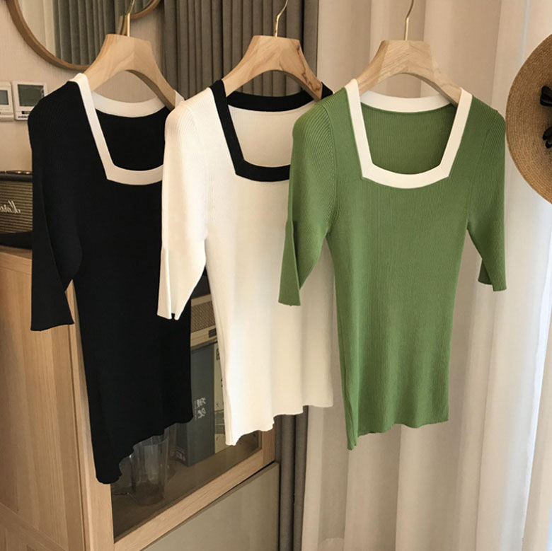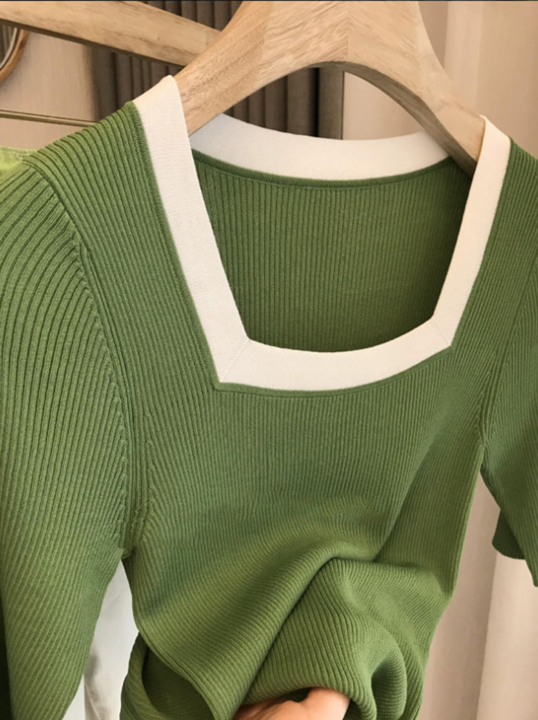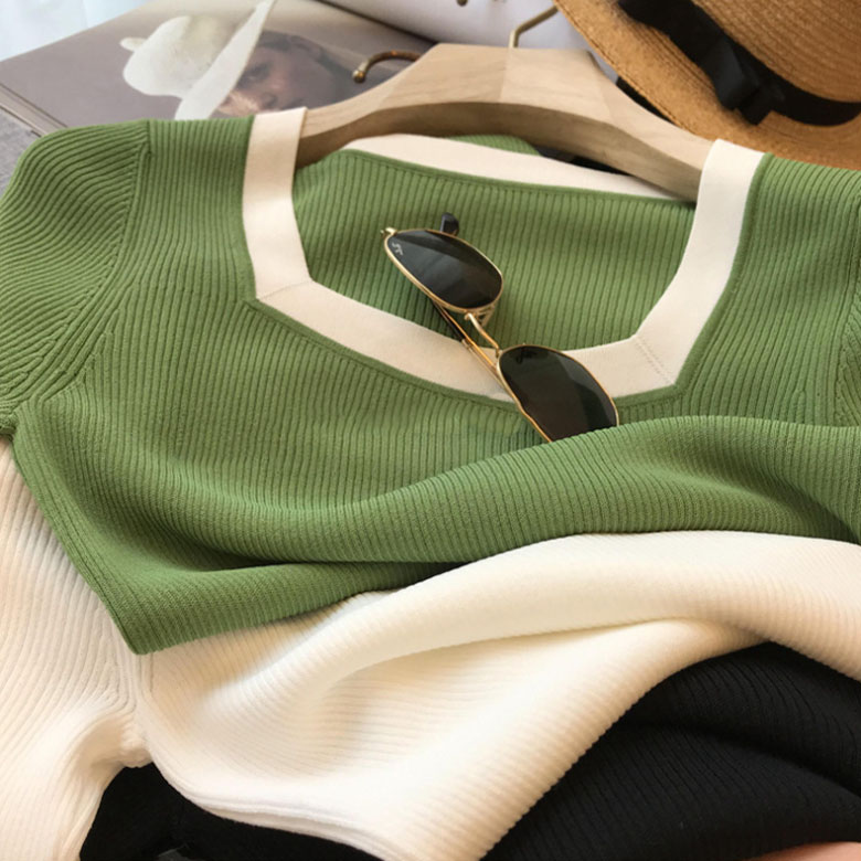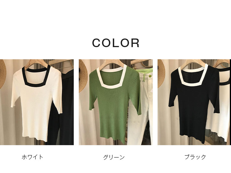 3B30 スクエアネック ニット セー レディースファッション お得なセール M L ホワイト グリーン ブラック