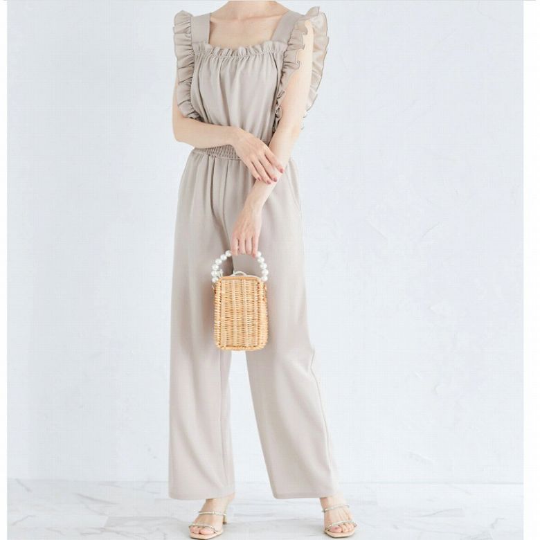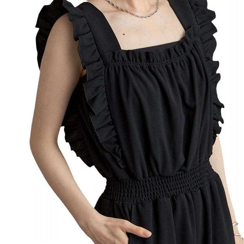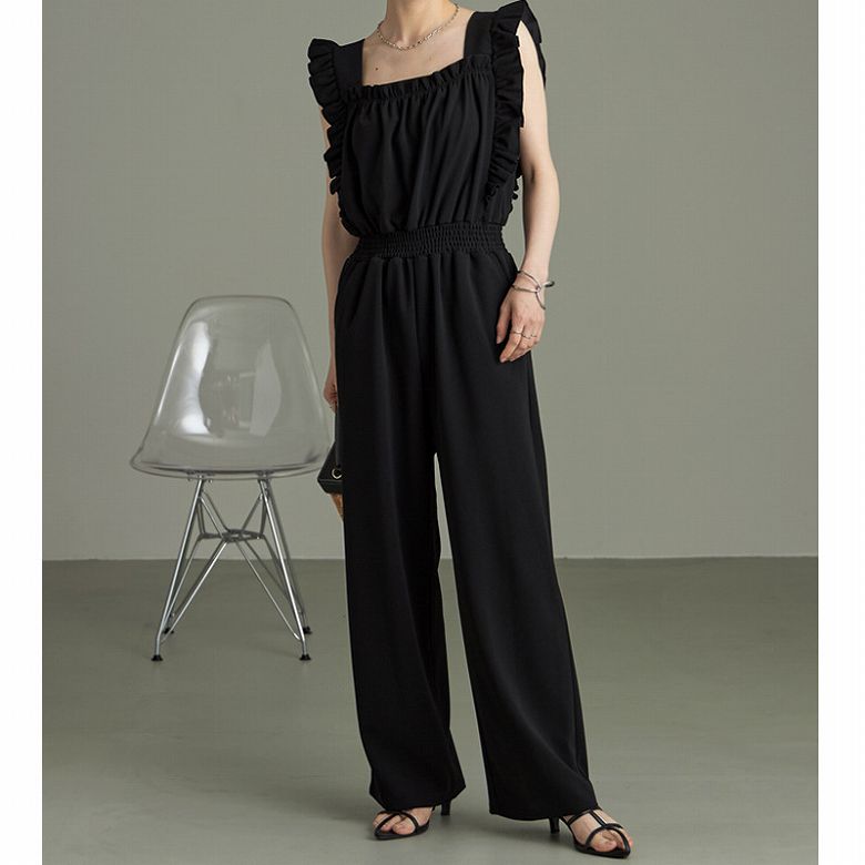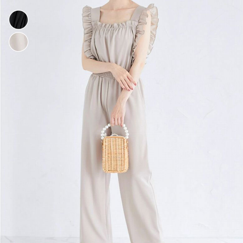 エアネック ハイウエスト ジャンプスー ブラック ベージュ