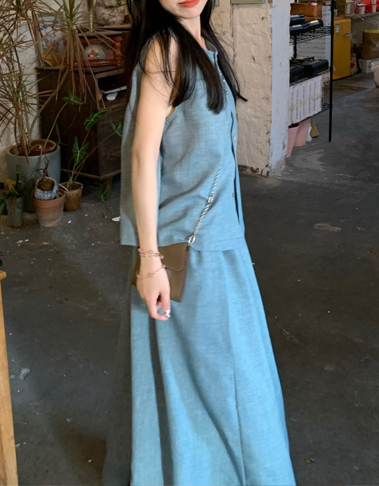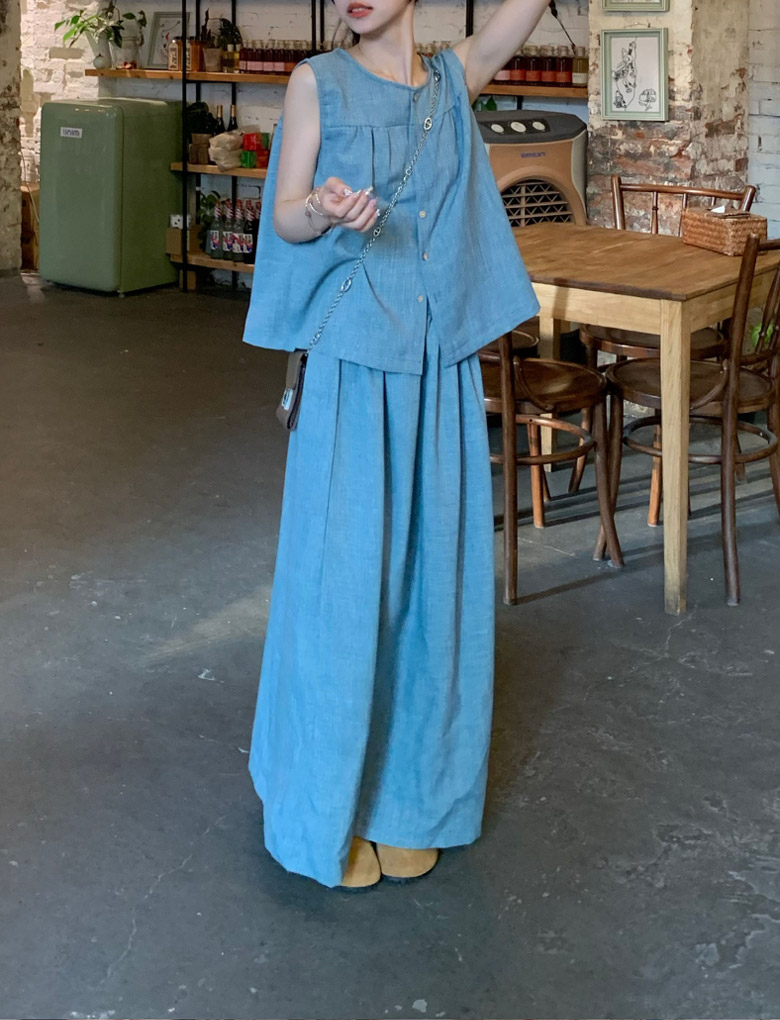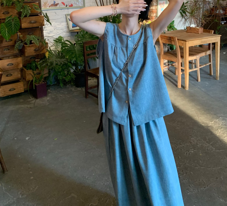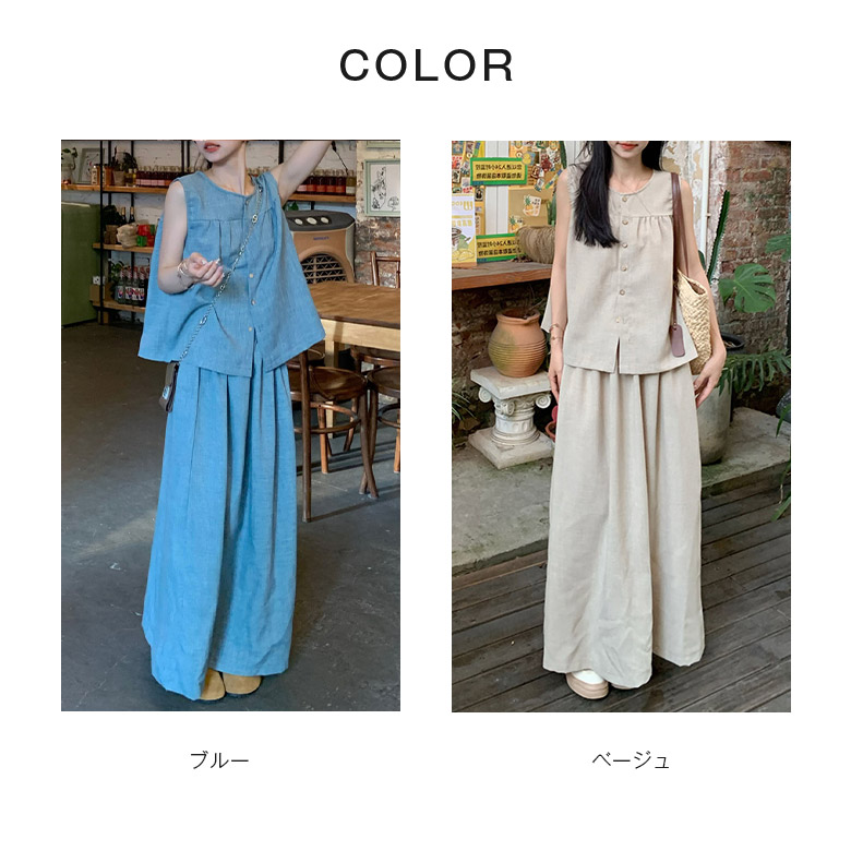 セットアップ レディース ノースリーブ レディースファッション 豊富な品揃え M L ブルー ベージュ