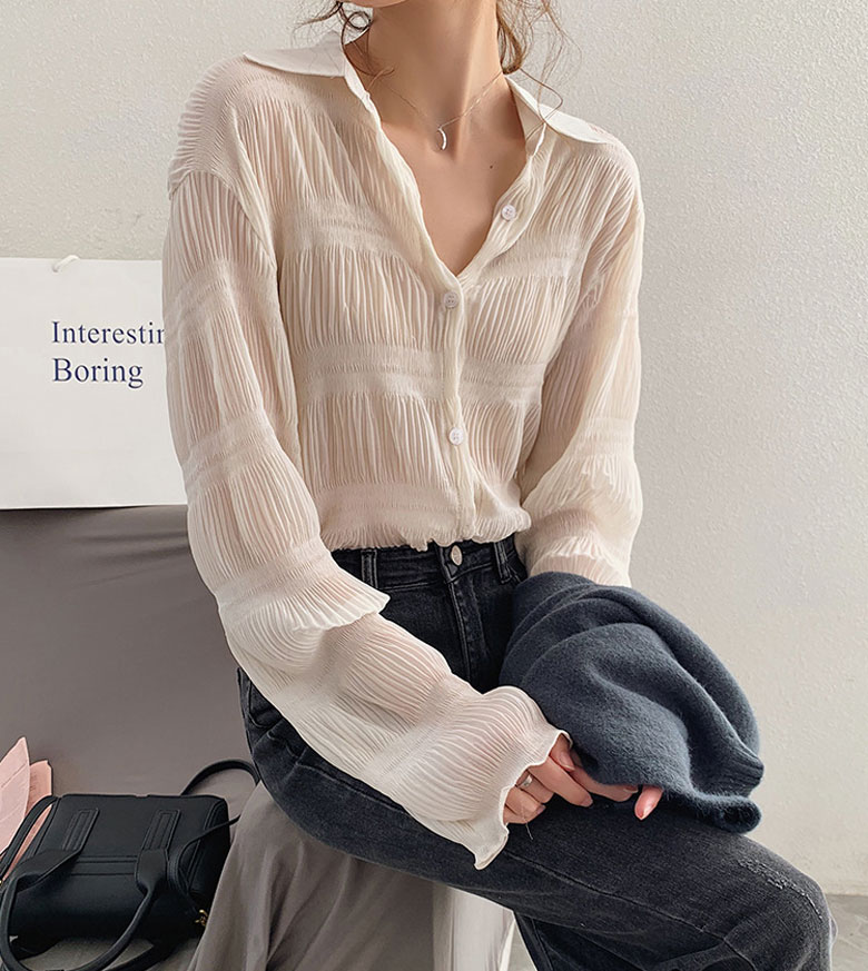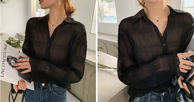 シフォンブラウス シアーブラウス ボリューム袖