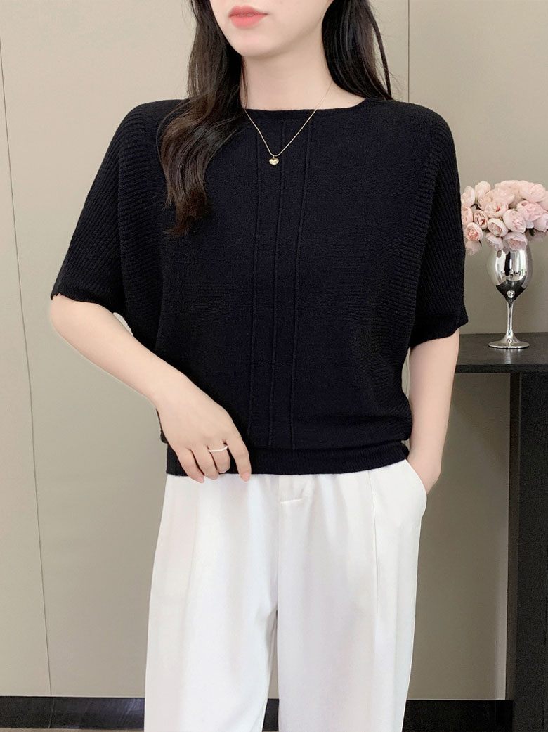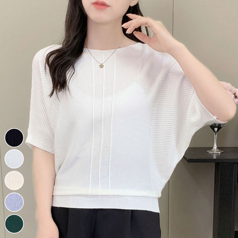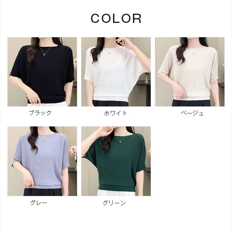 五分袖 ニット セーター レディース レディースファッション お得なセール ブラック ホワイト ベージュ グレー グリーン
