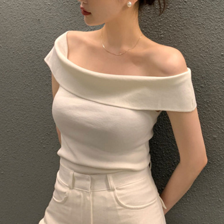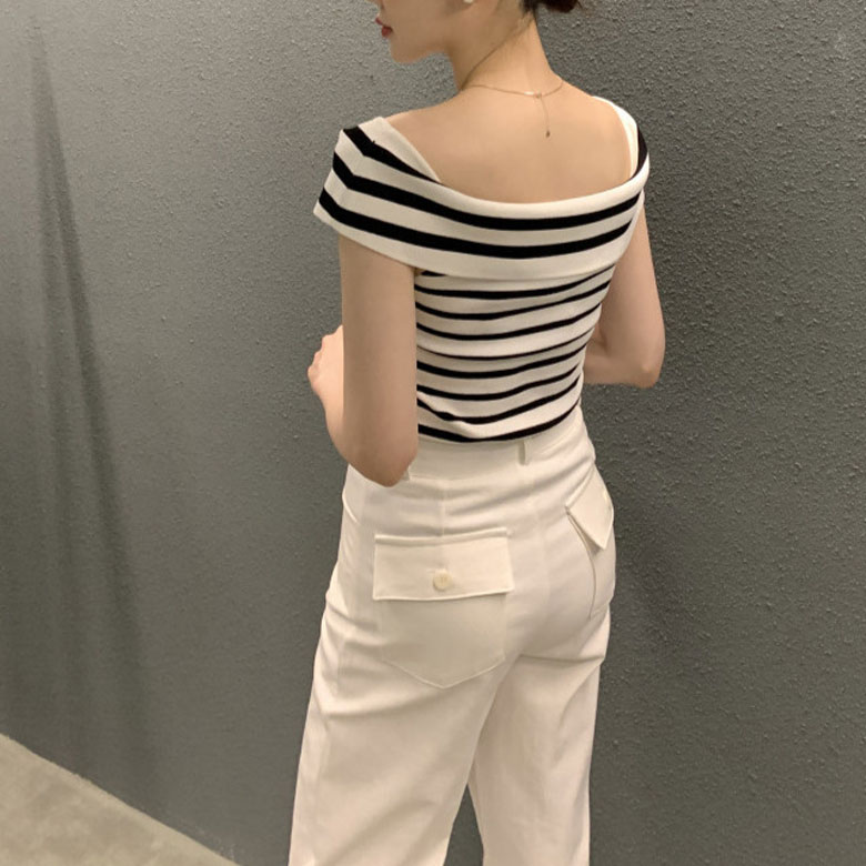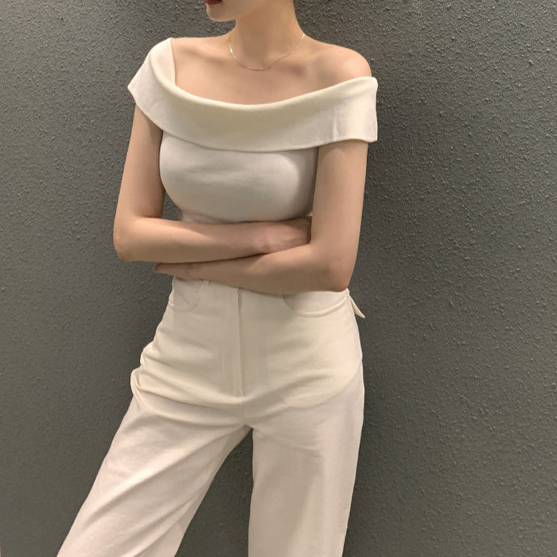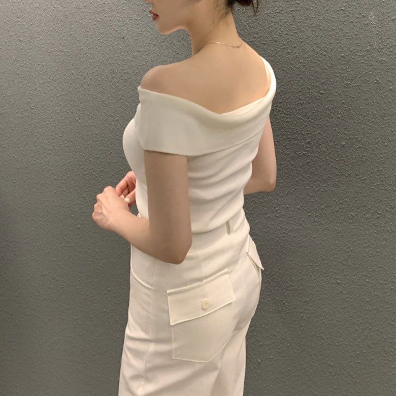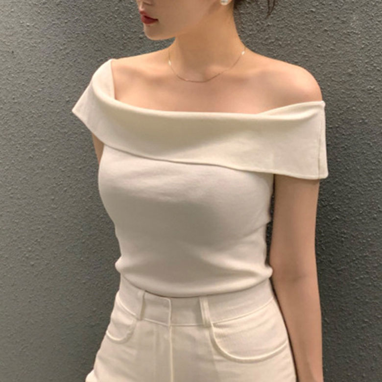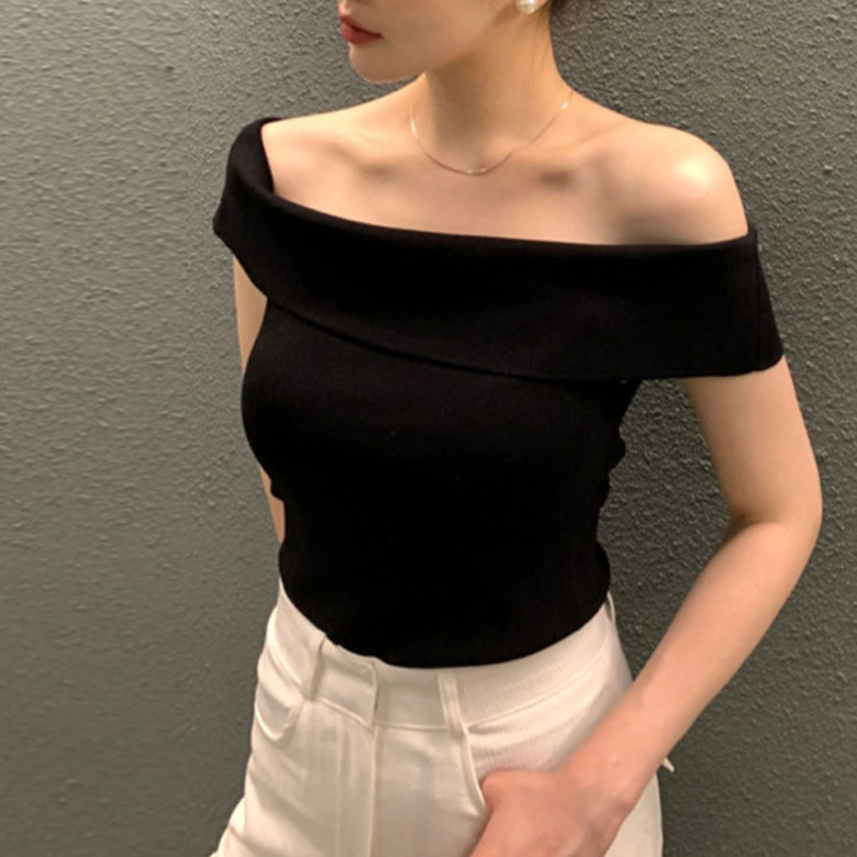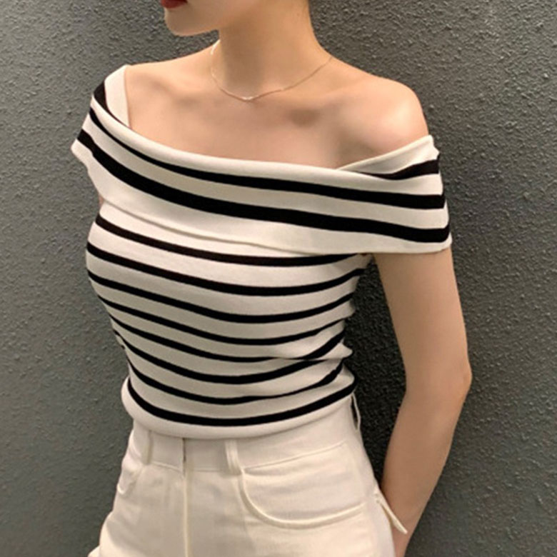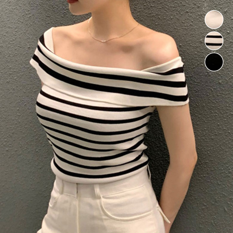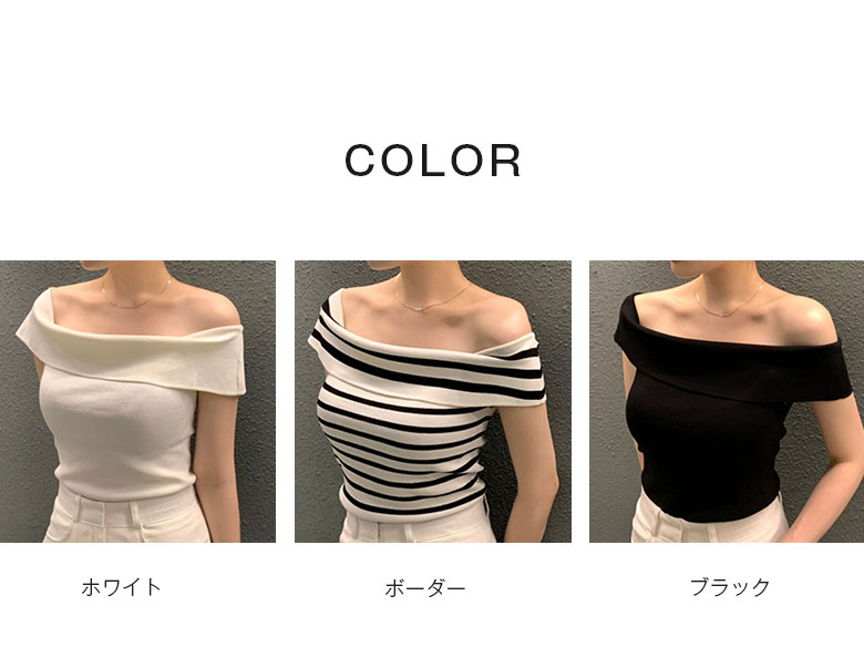 2B28 オフショルダー ニット セー トップス ニット セーター セーター お得なセール ホワイト ボーダー ブラック