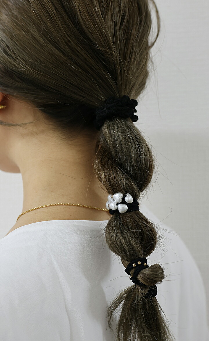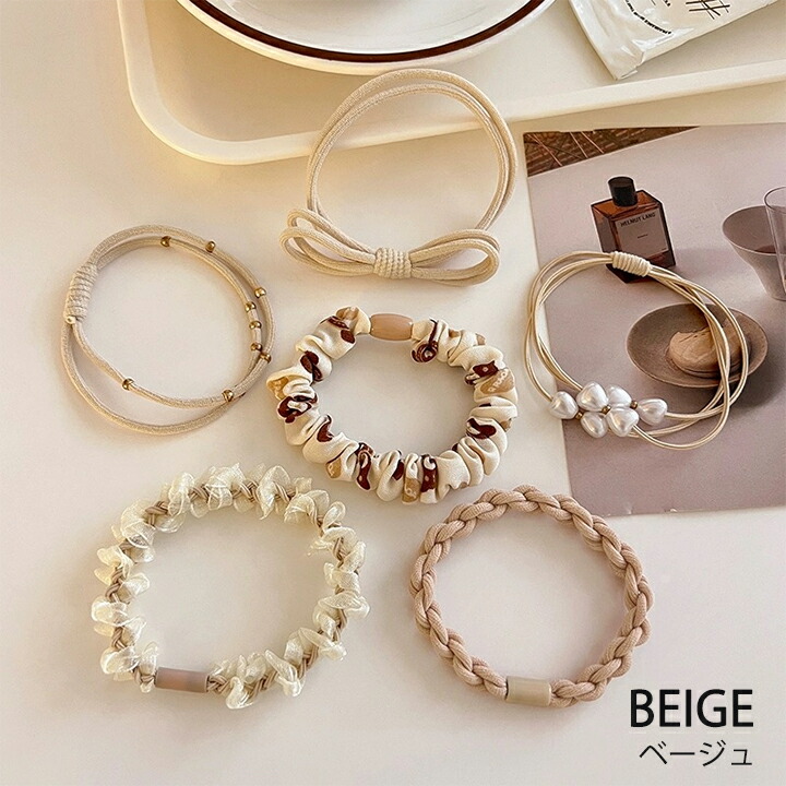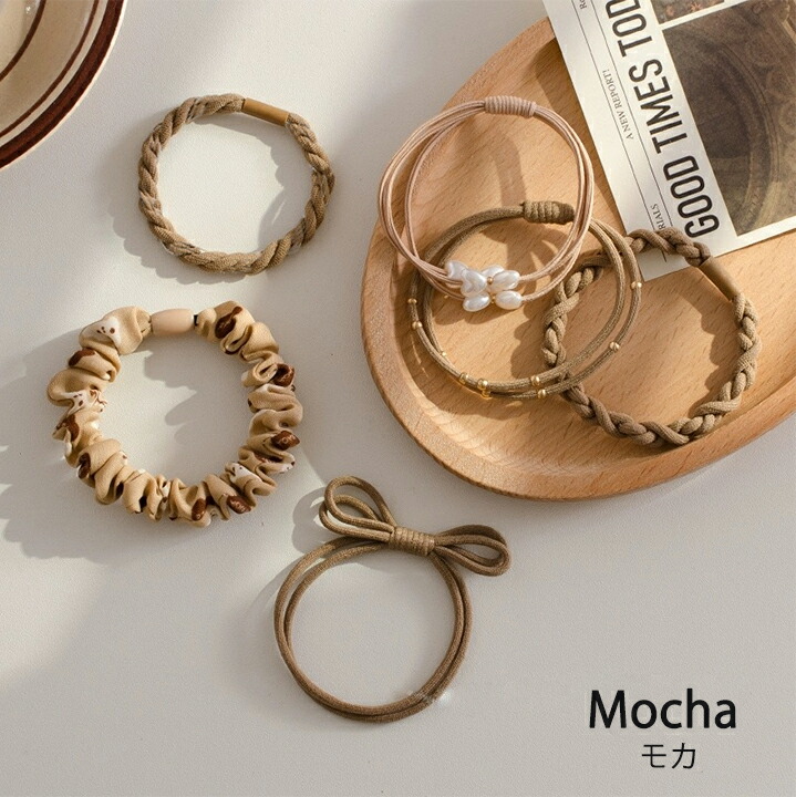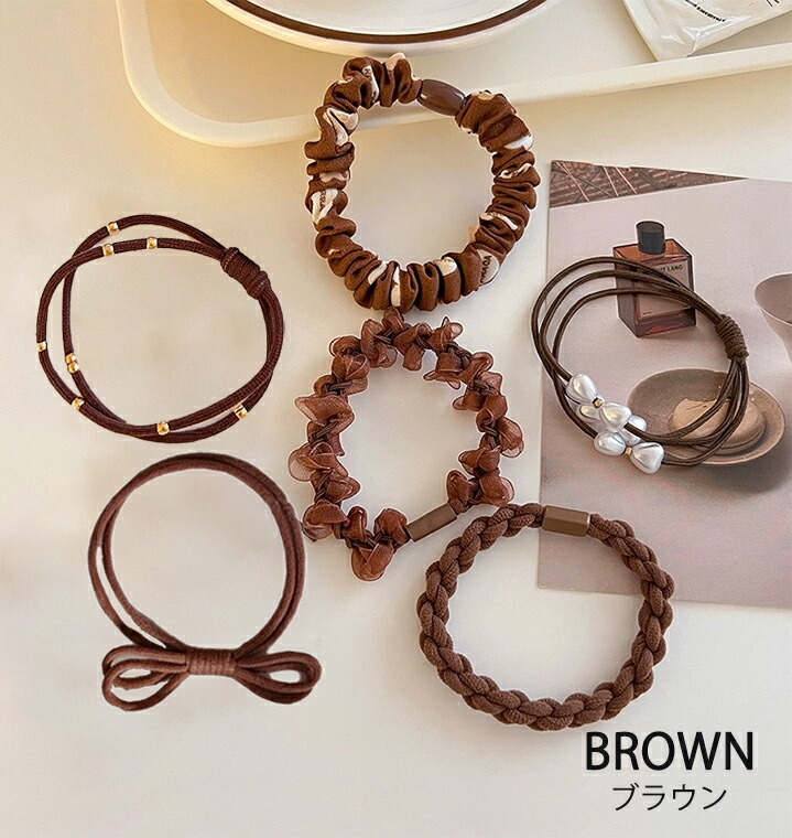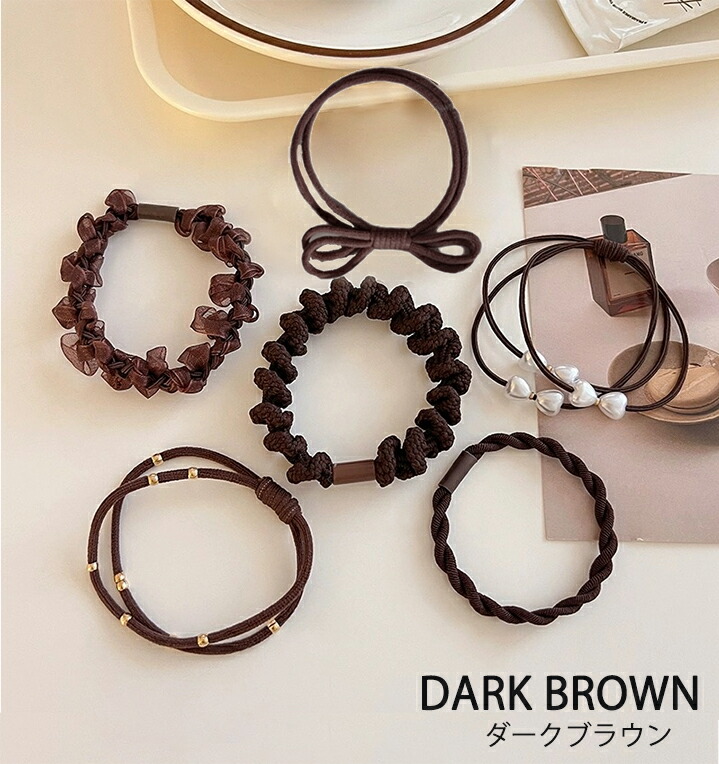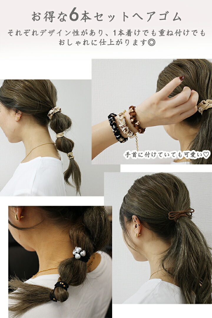ヘアゴム 5タイプ 6本 セット パー ジュエリー アクセサリー 特集 ブラック ブラウン ダークブラウン ベージュ モカ