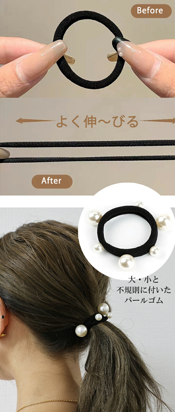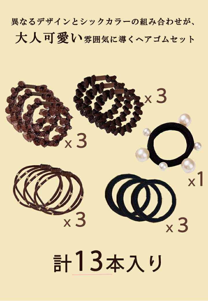 ヘアゴム13本 セット パール 大人っ レディースジュエリー アクセサリー ヘアアクセサリー ヘアバンド 特集 ブラック ブラウン ダークブラウン ベージュ