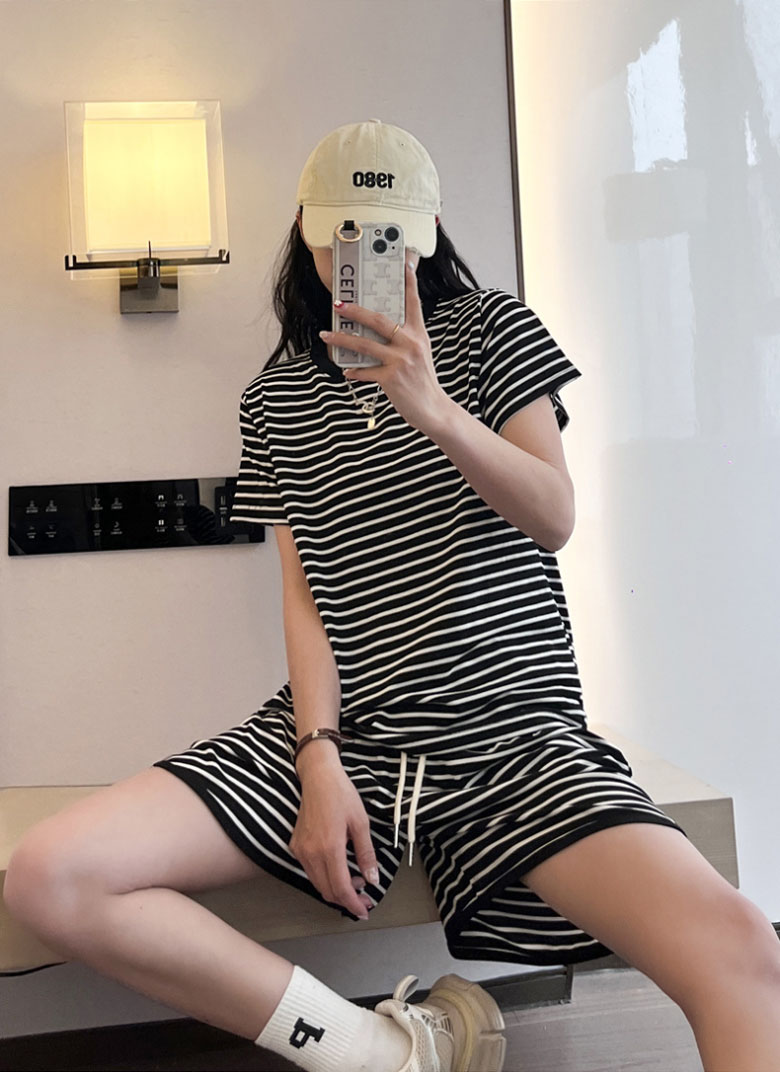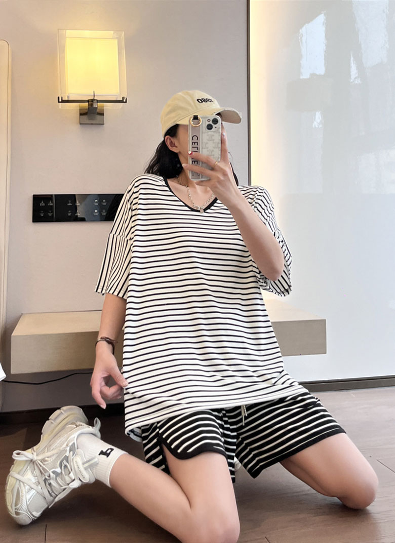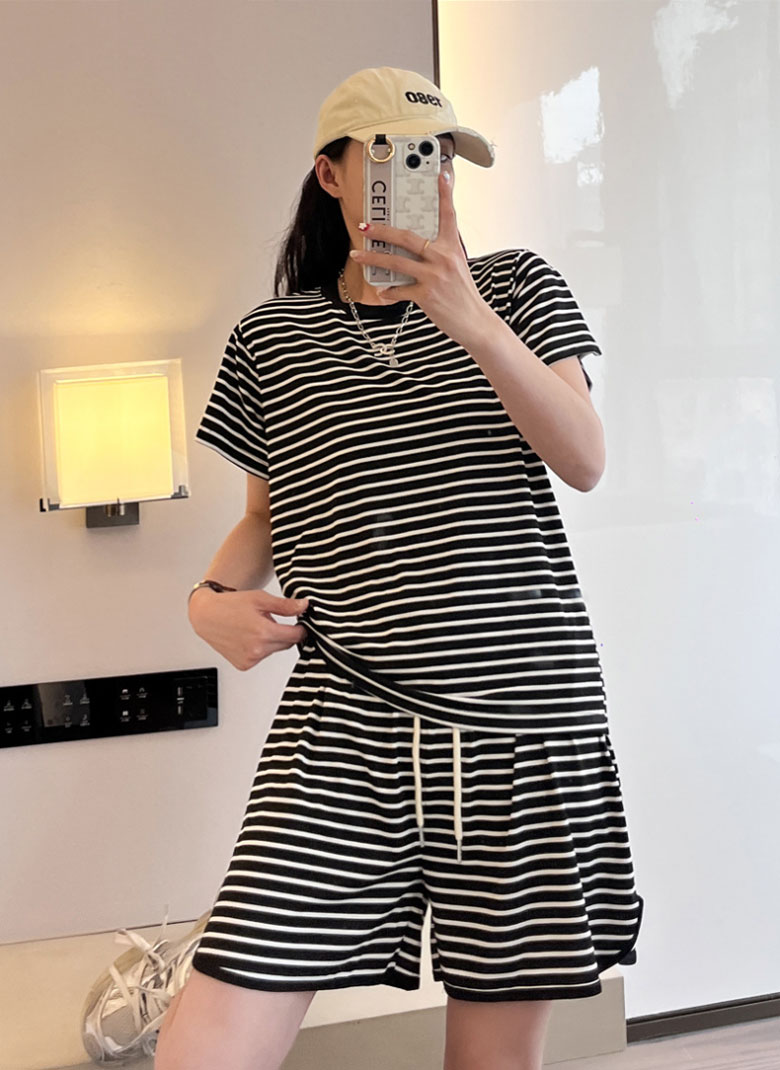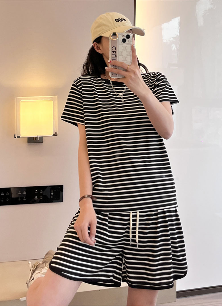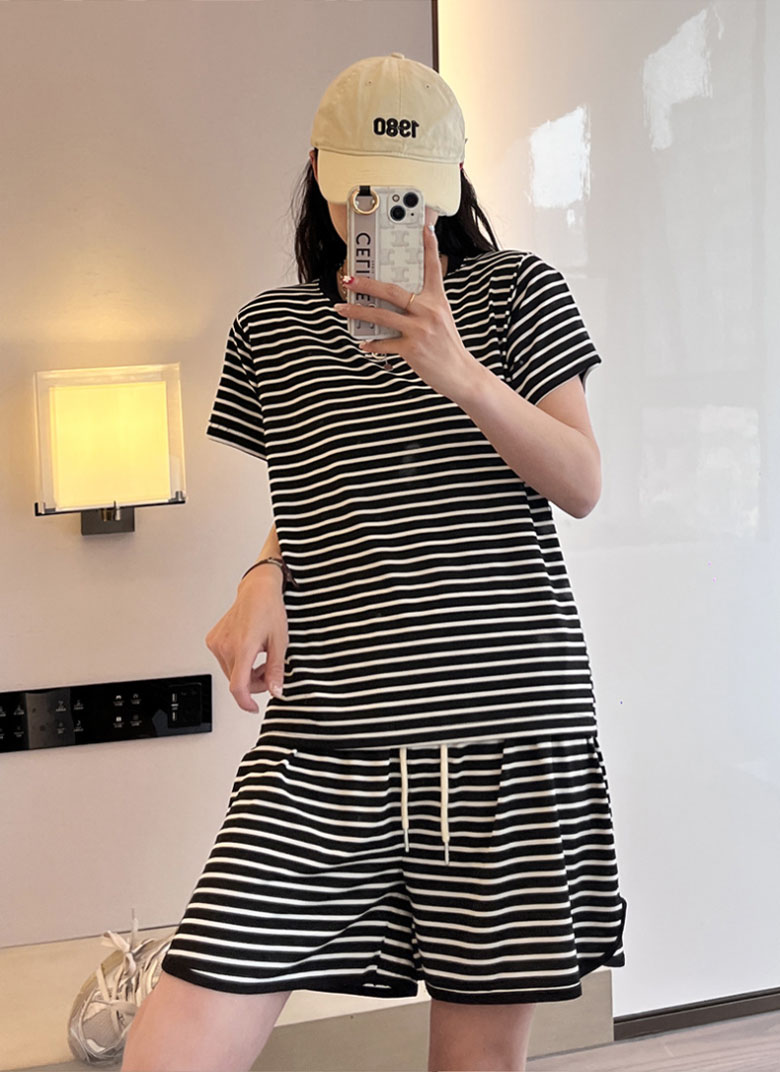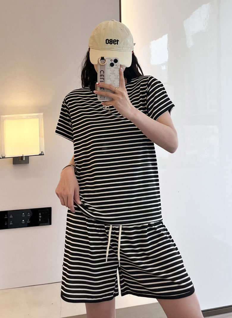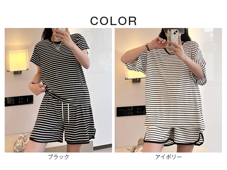 ボーダー柄 ルームウェア セットアップ インナー 下着 ナイトウエア 特集 M L XL ブラック アイボリー