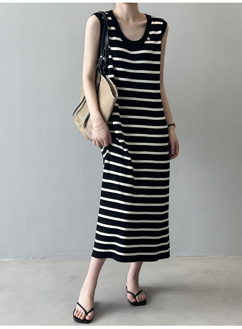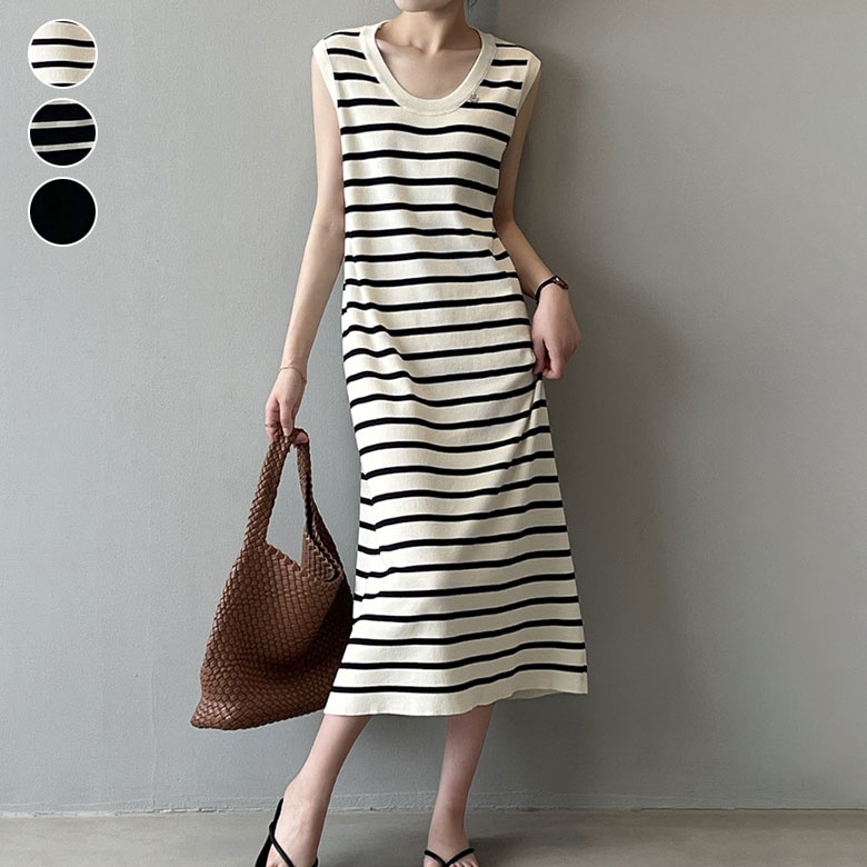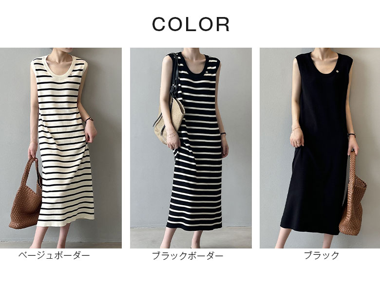 2A35 ロングワンピース レディース レディースファッション 割引 ベージュボーダー ブラックボーダー ブラック