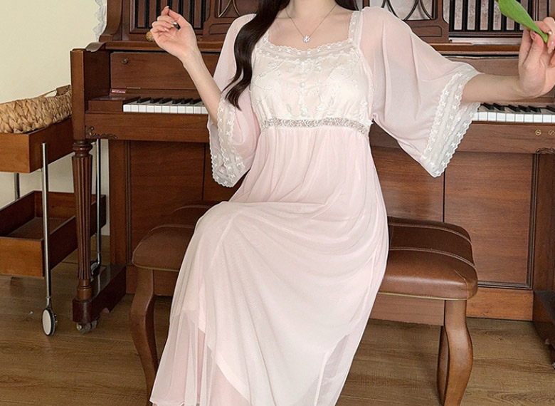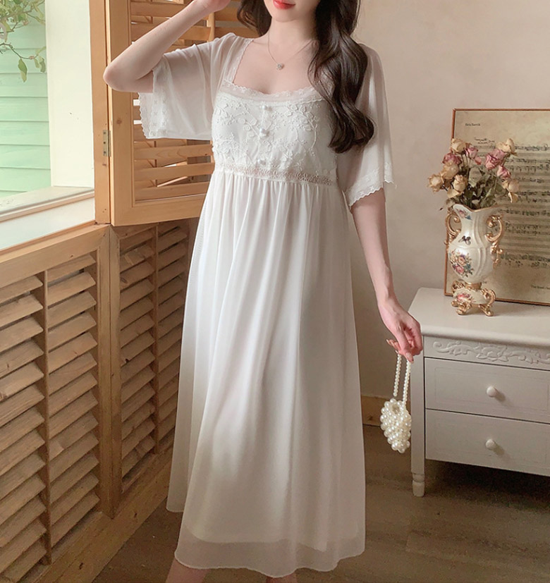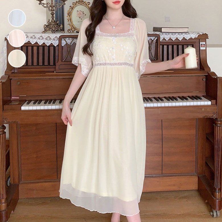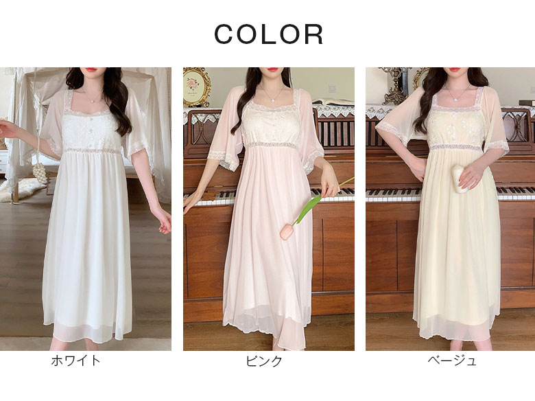 2C10 パジャマ レディース 春 夏 レディース ナイトウェア ルームウェア ネグリジェ 新作 M L ホワイト ピンク ベージュ