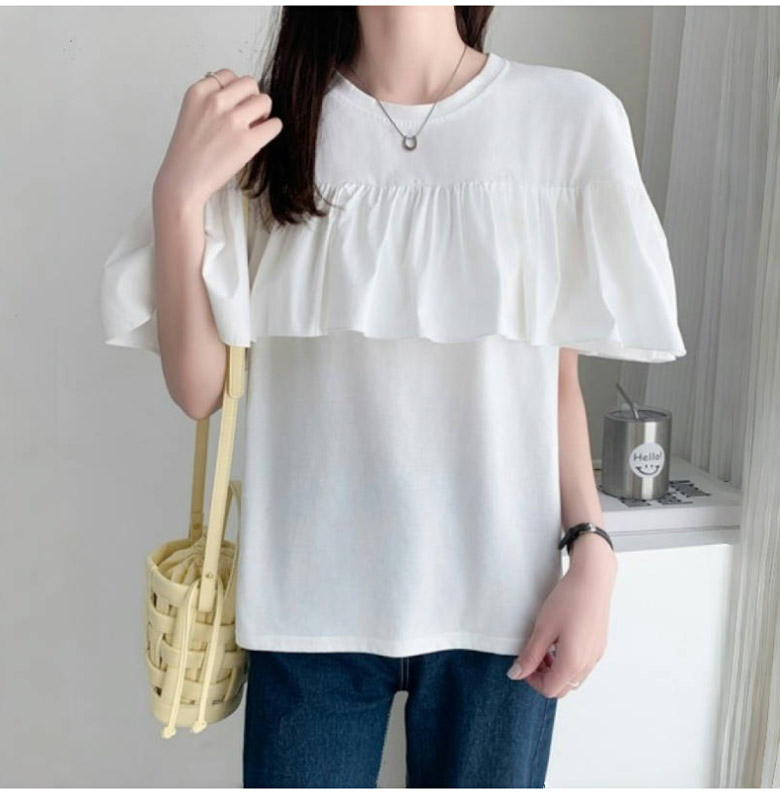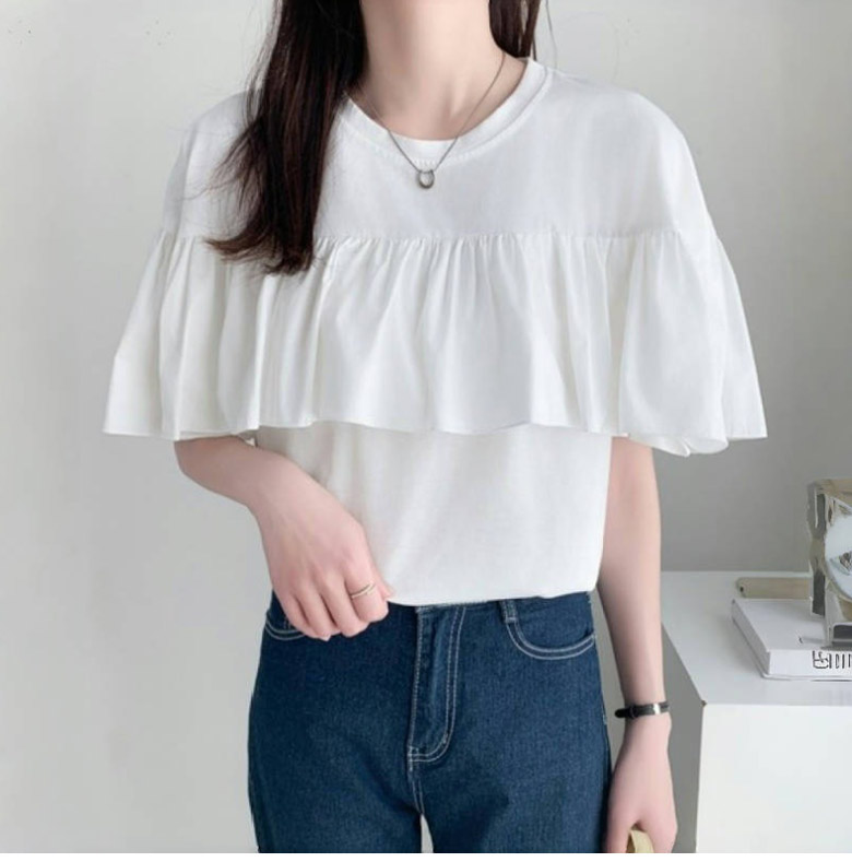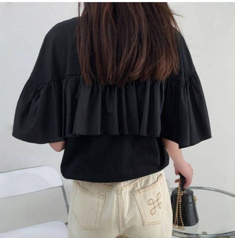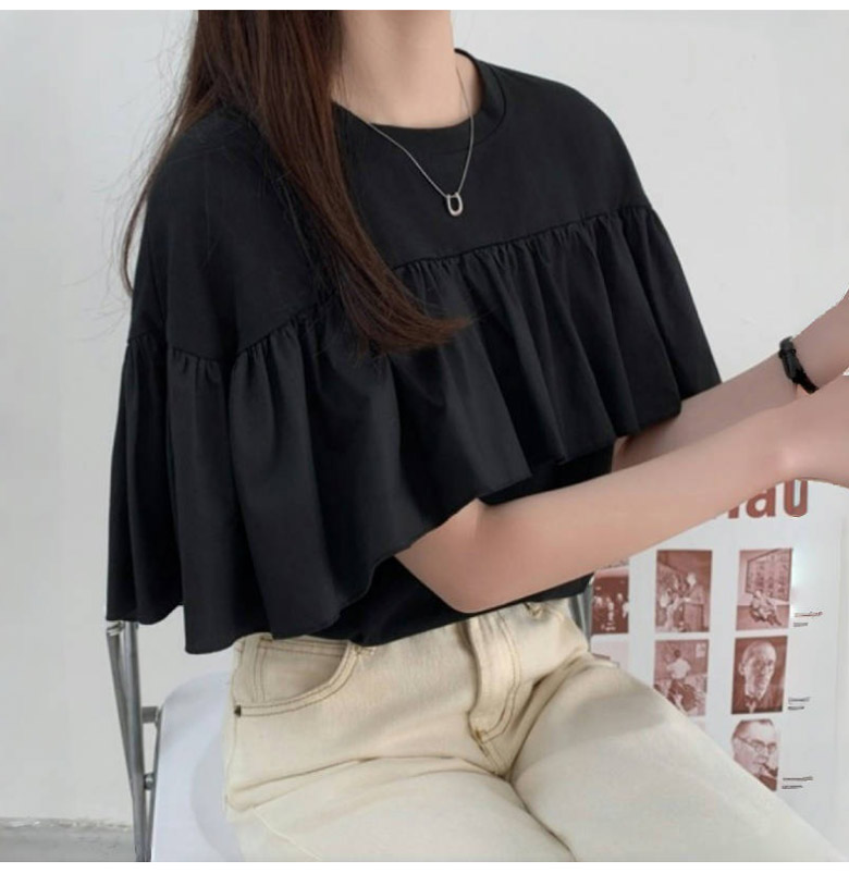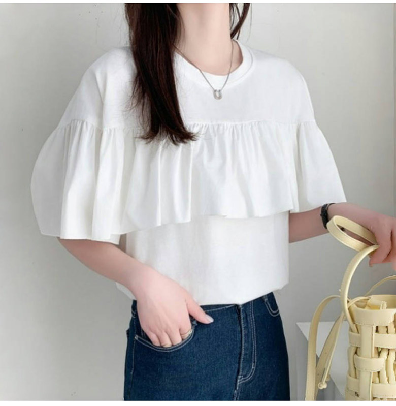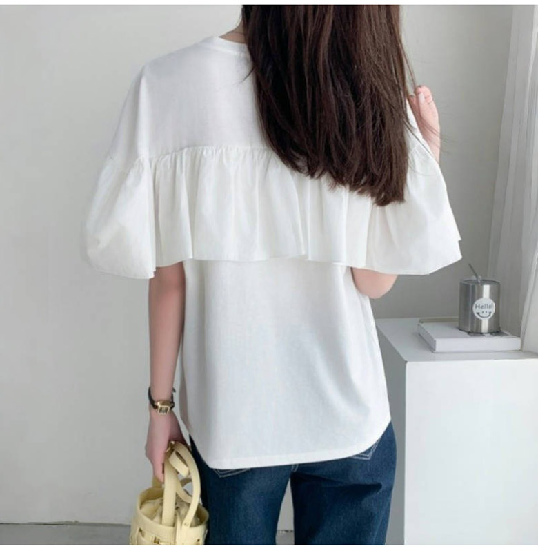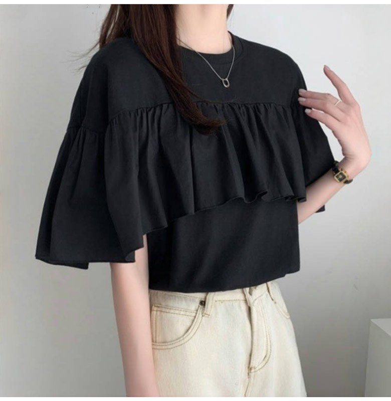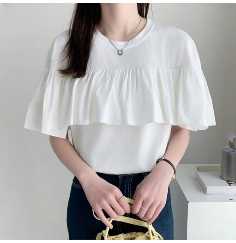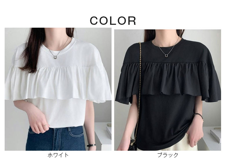 2A47 フリル 半袖 Tシャツ レデ トップス Tシャツ カットソー 人気 ホワイト ブラック