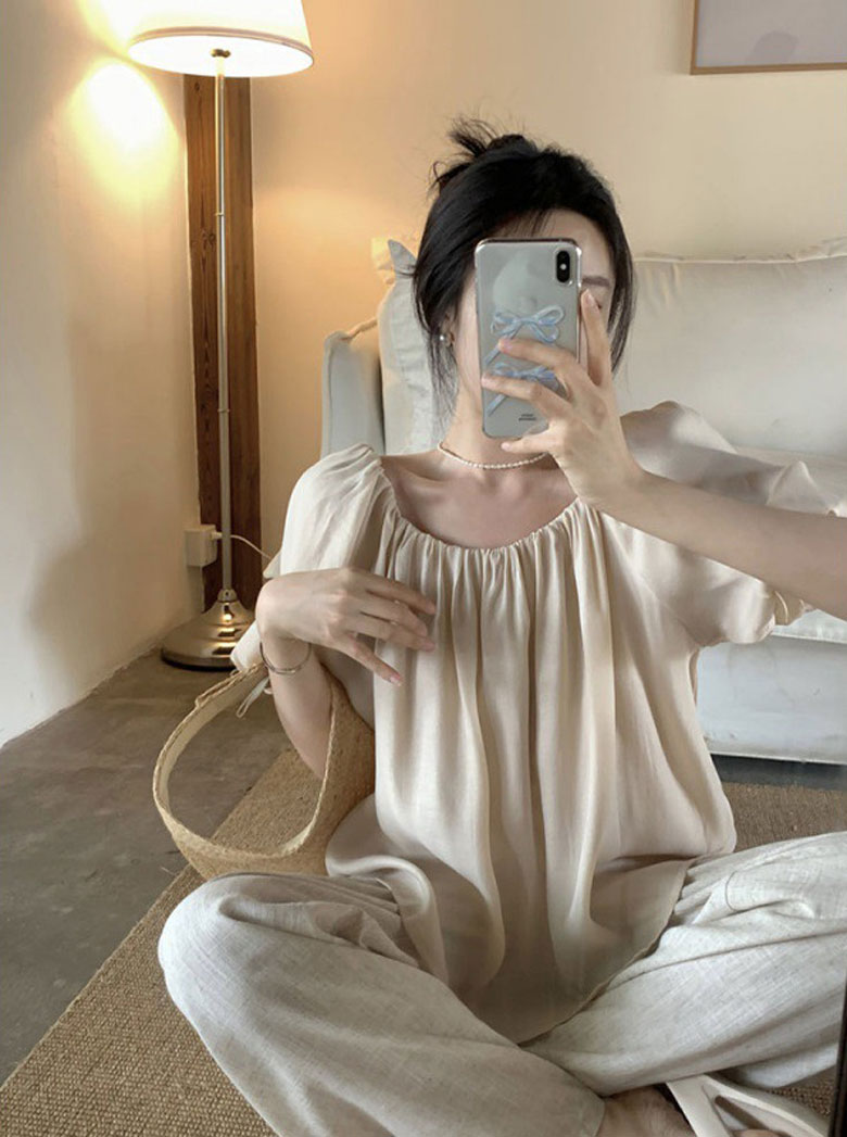 シアースリーブ ドッキングシャツ ボウタイシャツブラウス