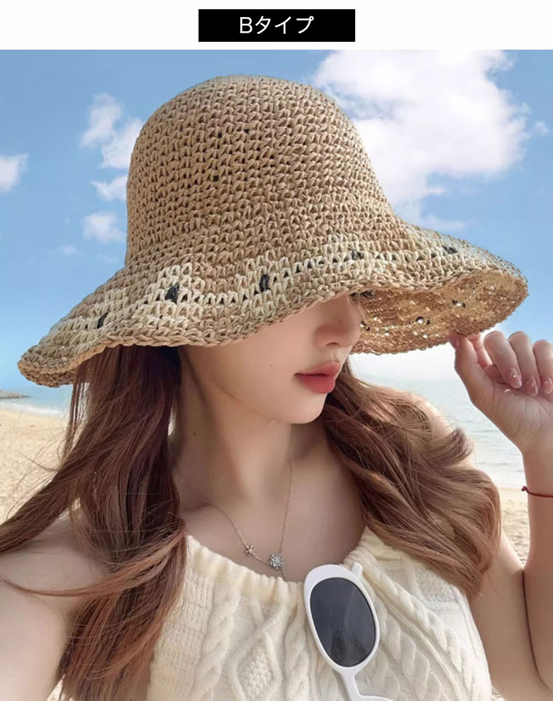 1B29 麦わら帽子 ハット レディー バッグ 小物 ブランド雑貨 続々入荷中 Aタイプ:ベージュ Aタイプ:ブラウン Bタイプ:ベージュ Bタイプ:ブラウン