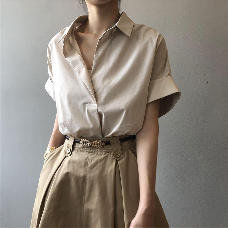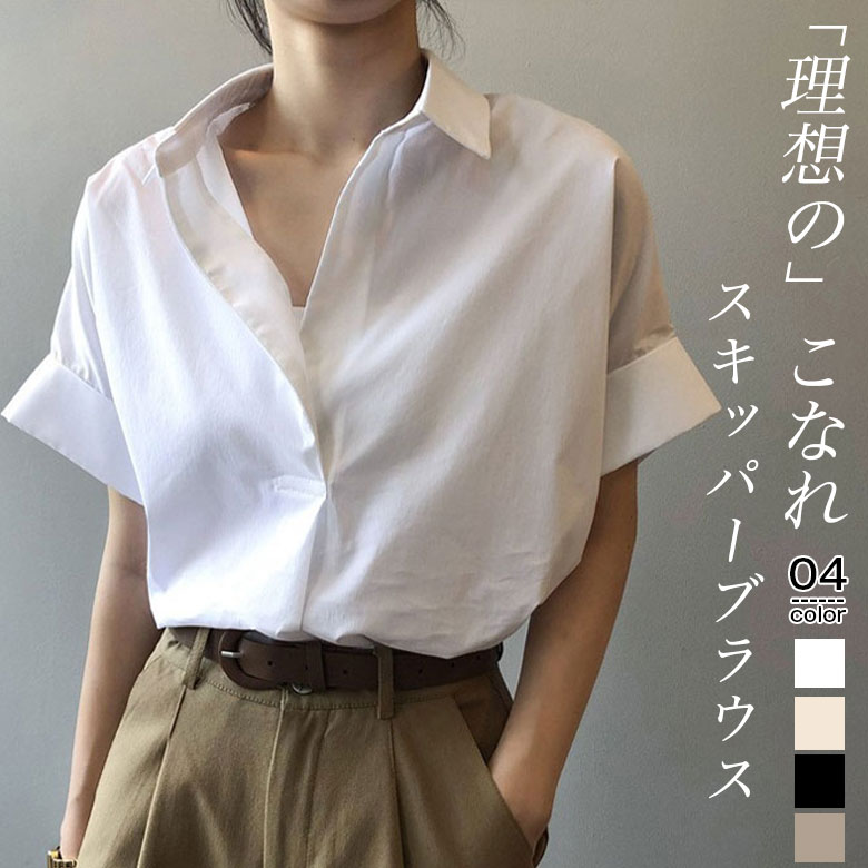 2A23 スキッパー ブラウス レディ トップス シャツ ブラウス 割引 M L XL ベージュ ホワイト ブラック ブラウン