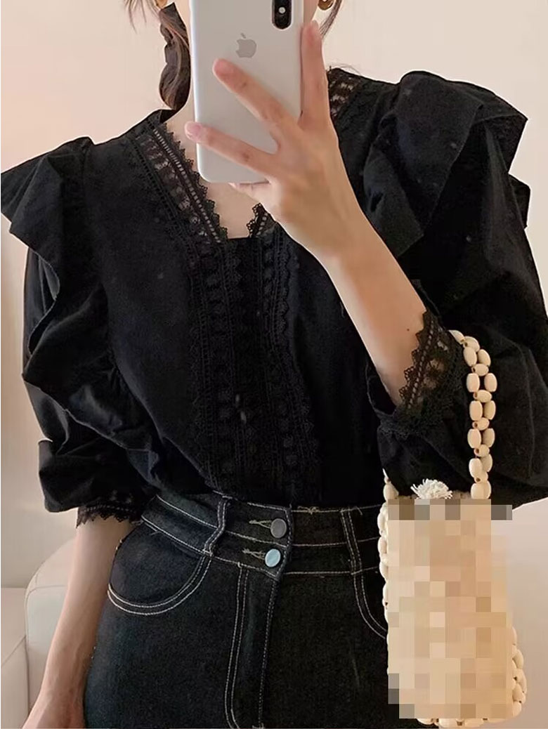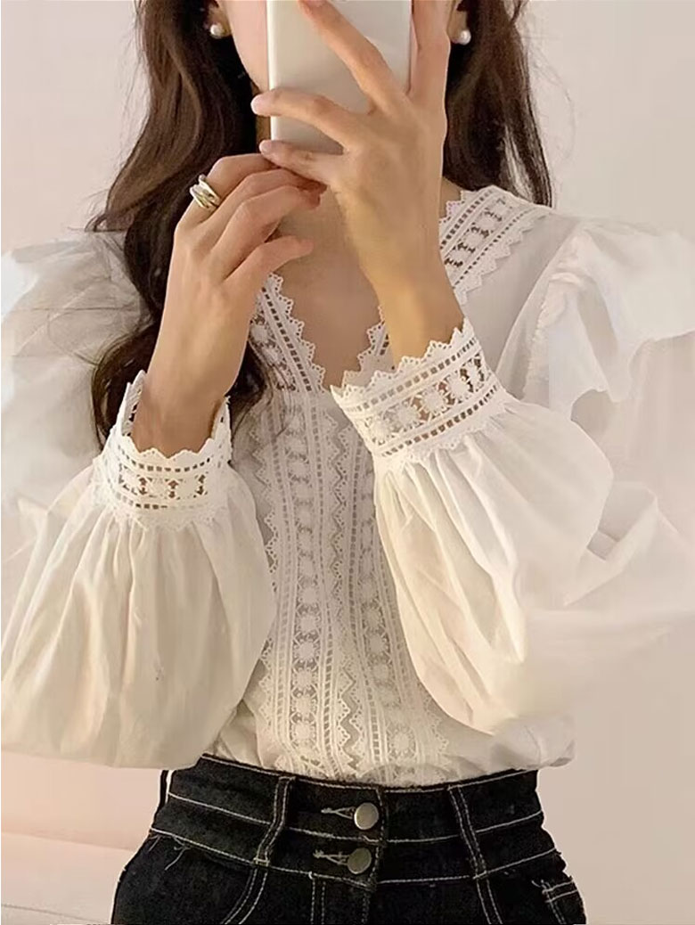 Vネック レース フリル シャツ レデ レディースファッション 続々登場