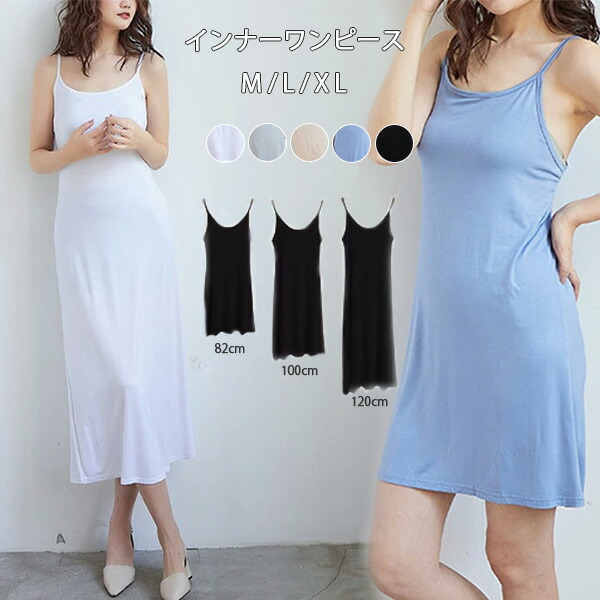 インナーキャミソール インナーワンピー ワンピース 割引 ベージュ(ショート) ブルー(ショート) ホワイト(マキシ)