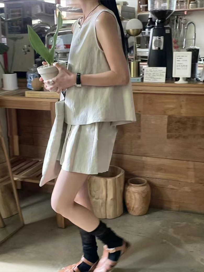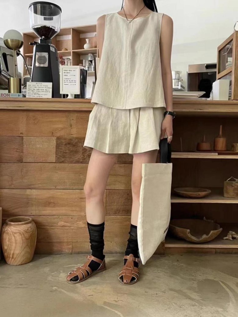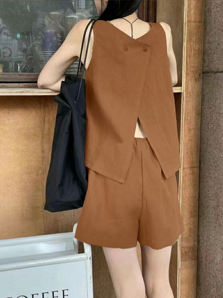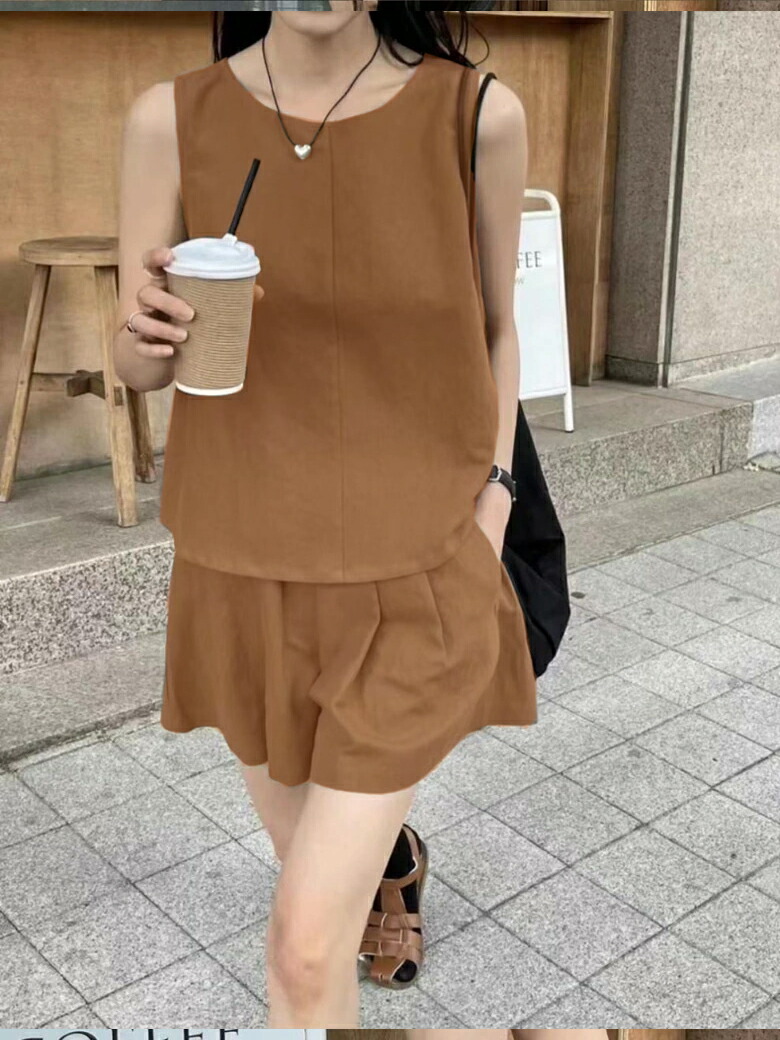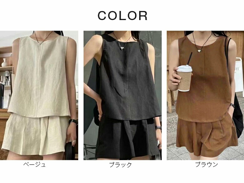 2A22 リネン セットアップ レディ スーツ セットアップ パンツスーツ 通販 ベージュ ブラック ブラウン