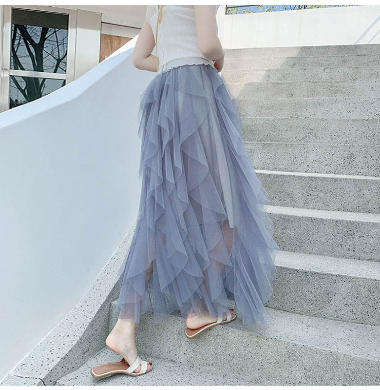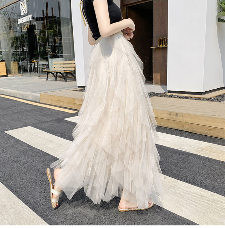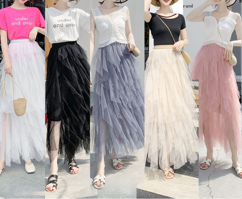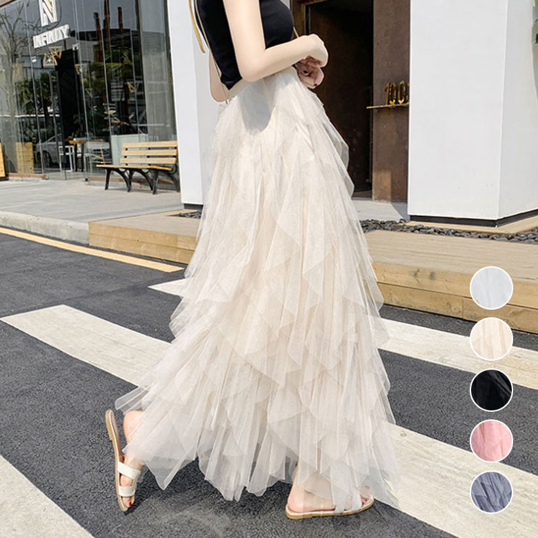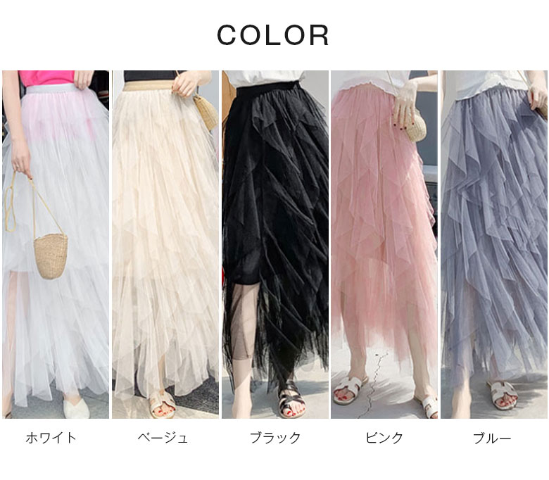1B22 メッシュスカート マキシ丈 ボトムス スカート 通販 ホワイト ベージュ ブラック ピンク ブルー
