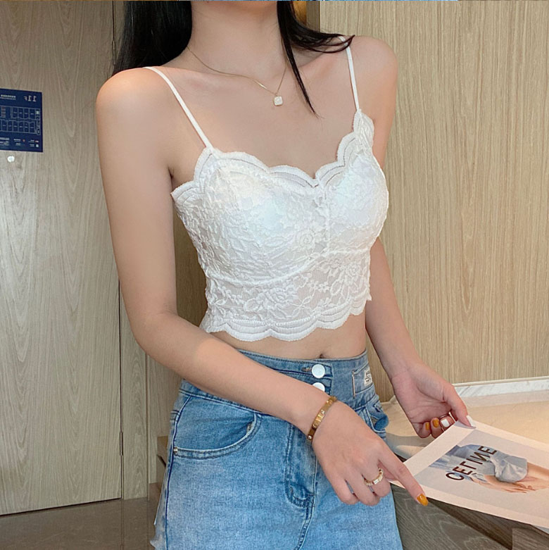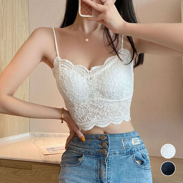 1B25 レースキャミソール パッド付 トップス キャミソール 人気 ホワイト ブラック