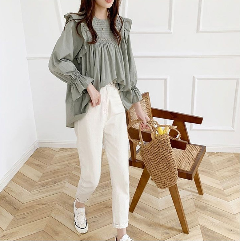シアースリーブ ドッキングシャツ ボウタイシャツブラウス