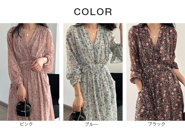2B4 花柄 ワンピース ロングワンピ レディースファッション 続々登場 M L ピンク ブルー ブラック