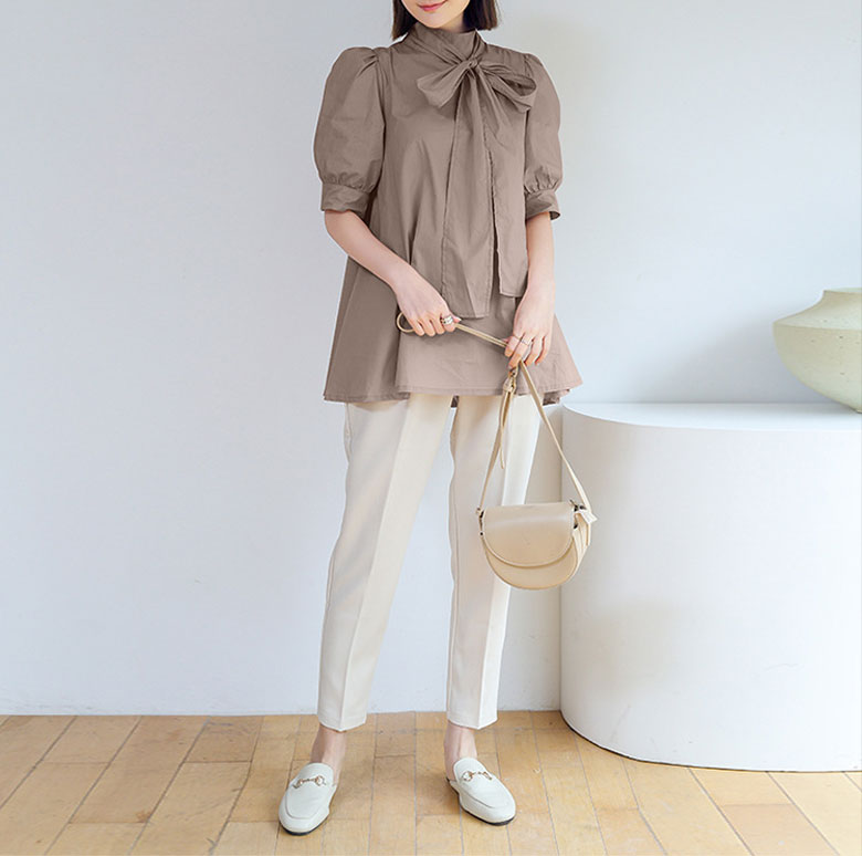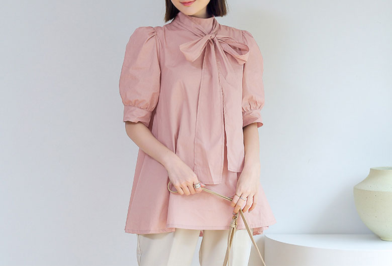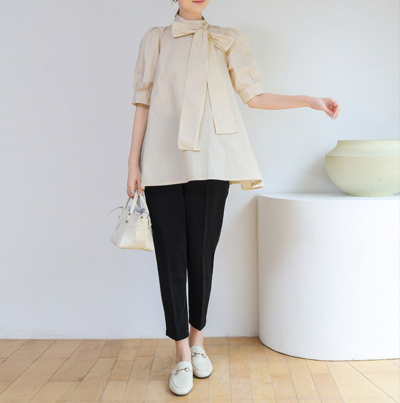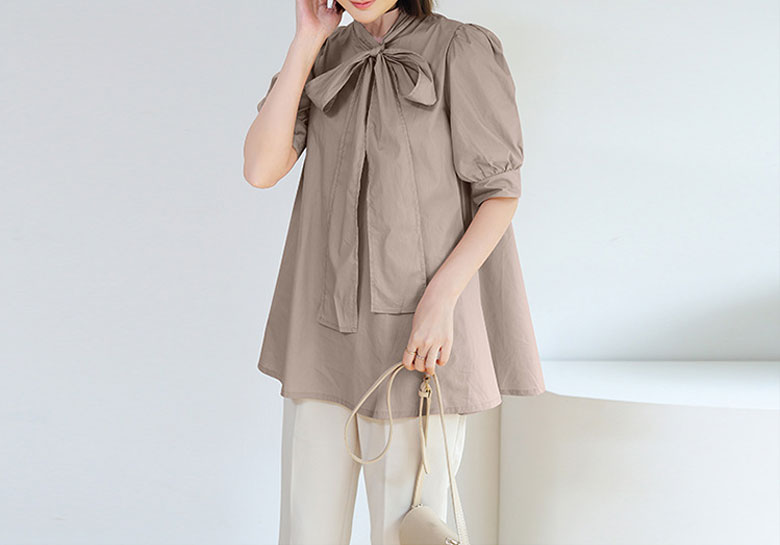 2B7 リボン付き ブラウス レディー トップス シャツ ブラウス 42%Off ホワイト ベージュ ピンク ブラック ブラウン ブルー グリーン