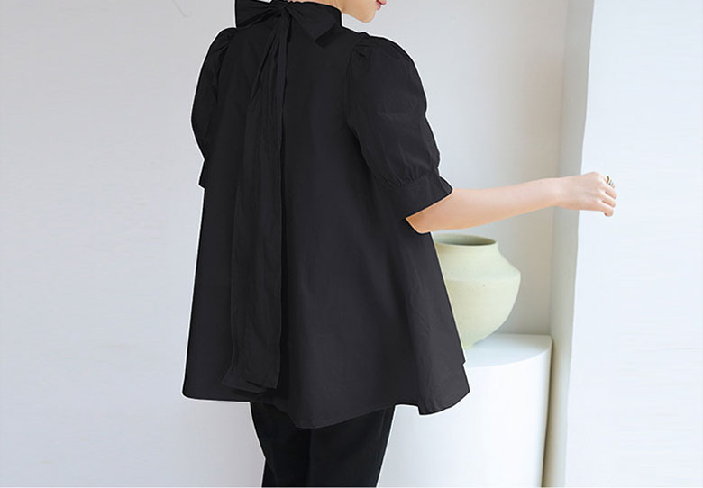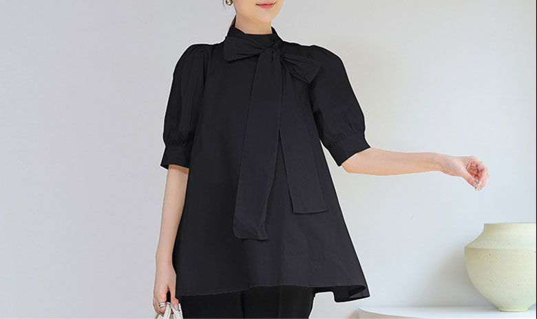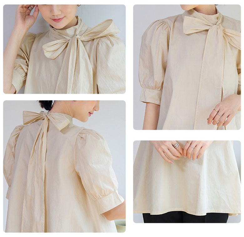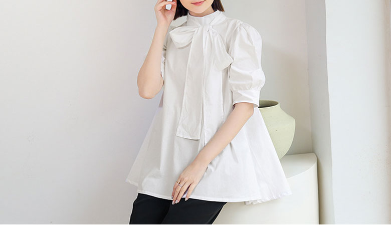 シアースリーブ ドッキングシャツ ボウタイシャツブラウス