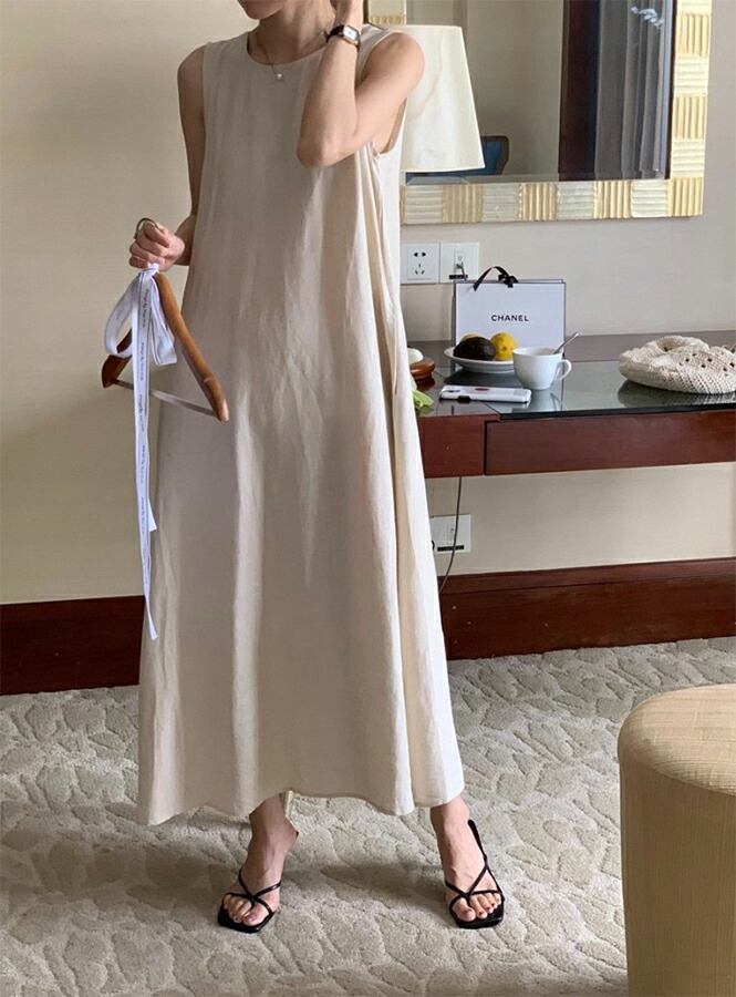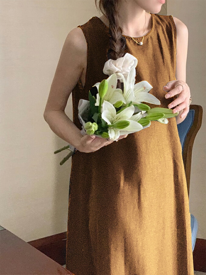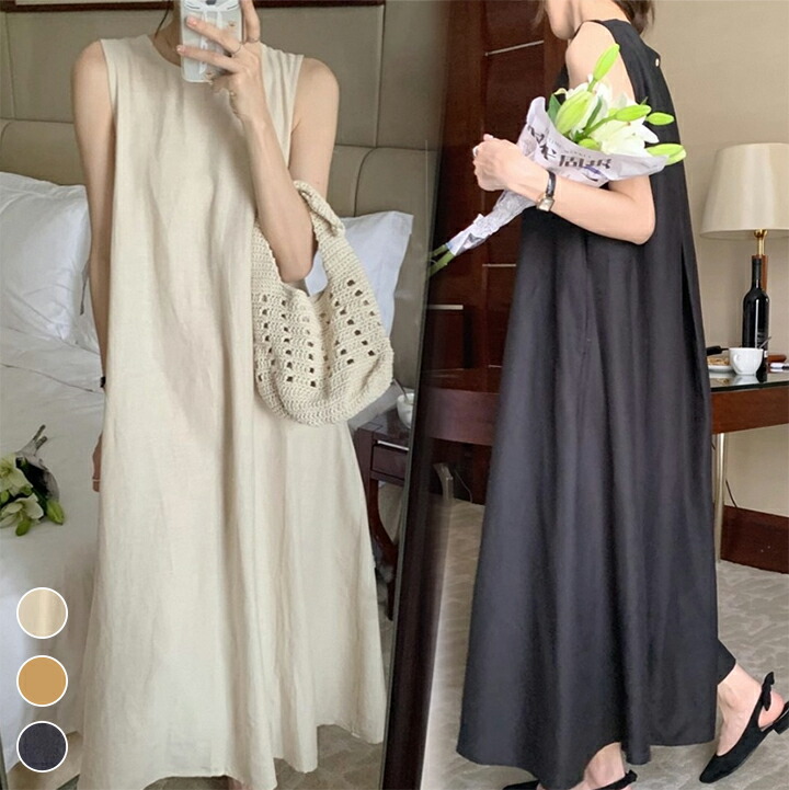1K 綿麻 スリット ワンピース レデ ワンピース 42%Off ベージュ ブラウン ブラック