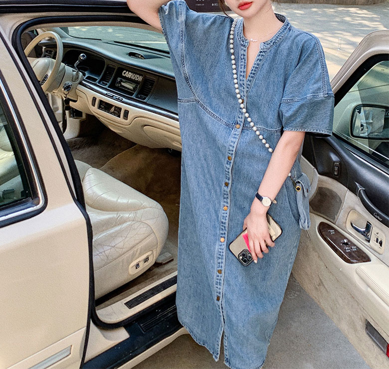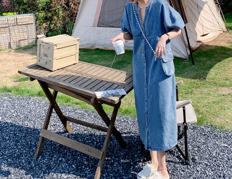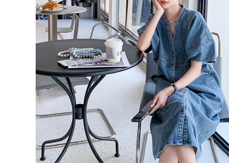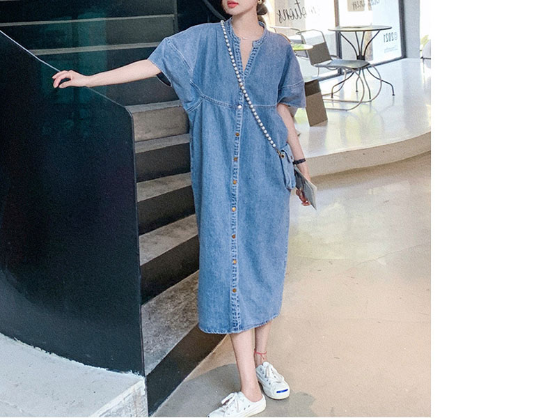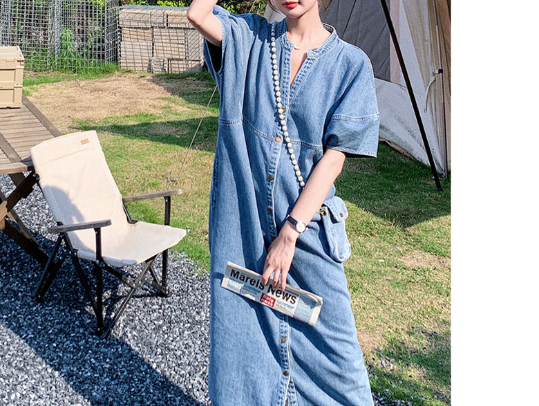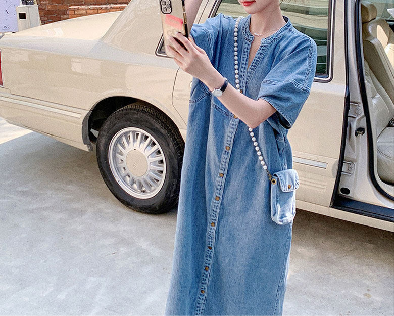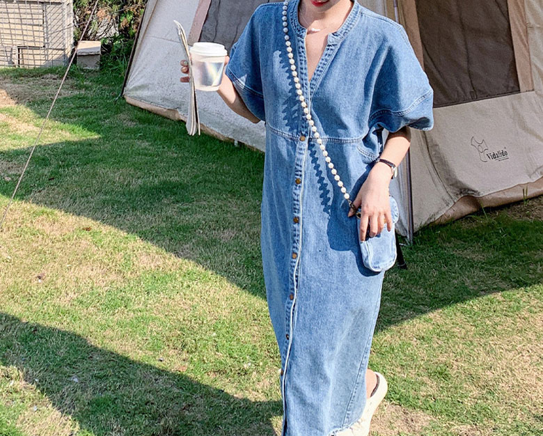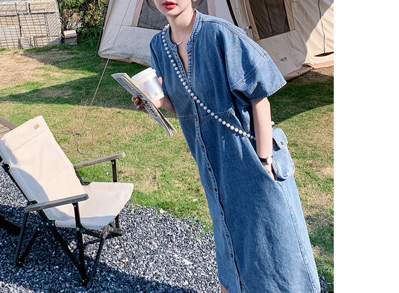 2A42デニム ワンピース ミドル丈 S M L XL ブルー インディゴ