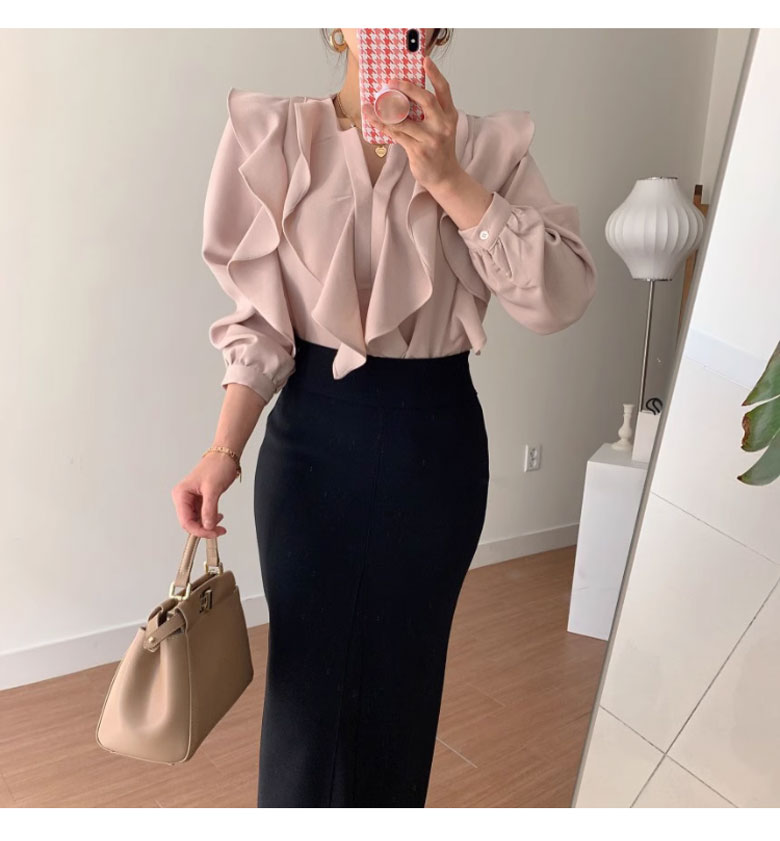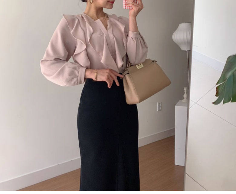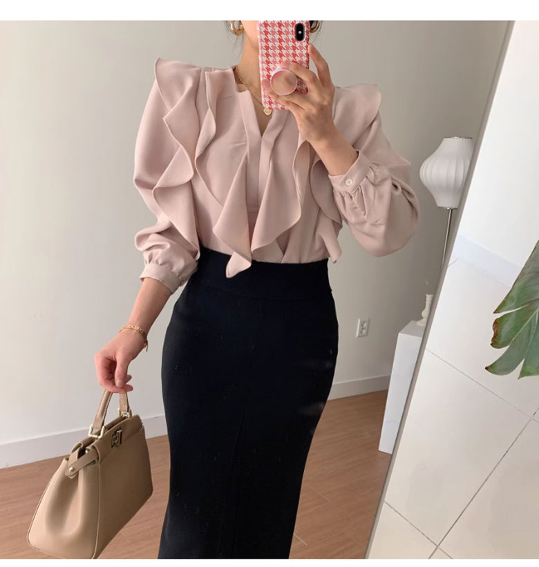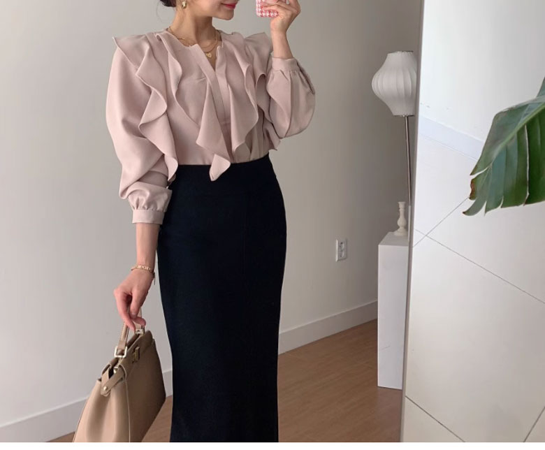 シフォンブラウス シアーブラウス ボリューム袖