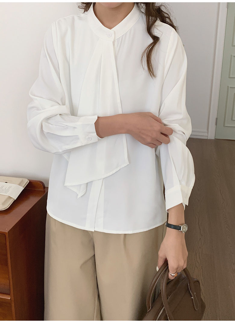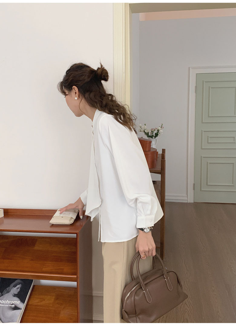 シアースリーブ ドッキングシャツ ボウタイシャツブラウス