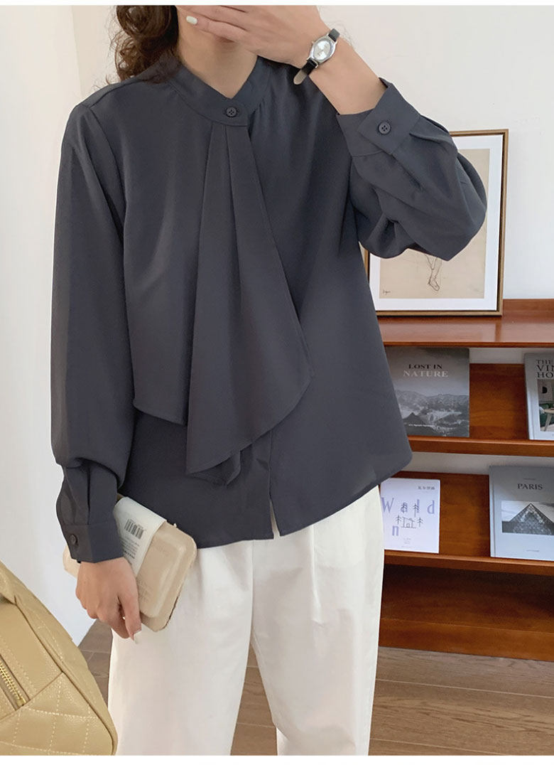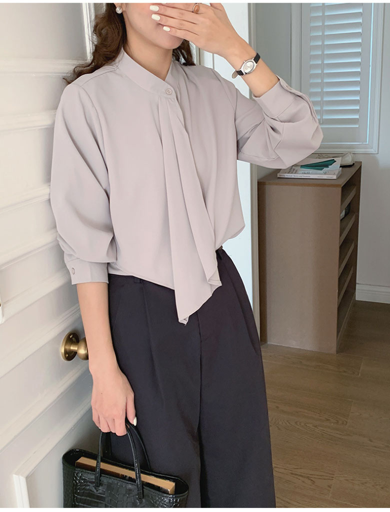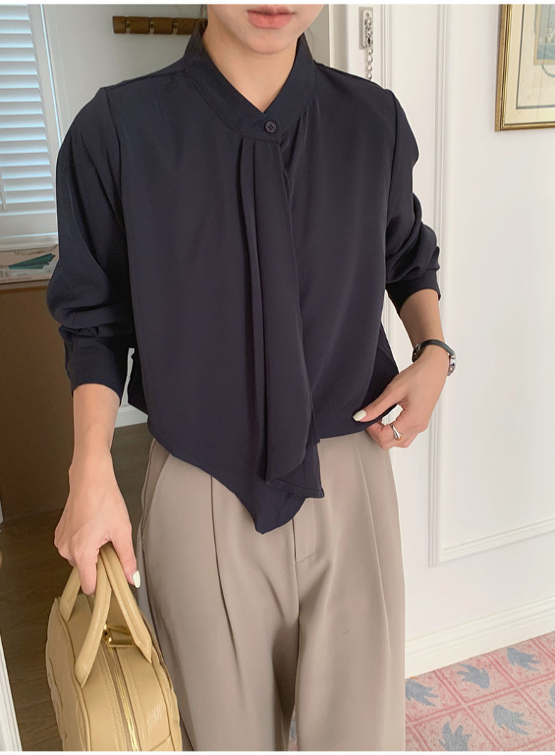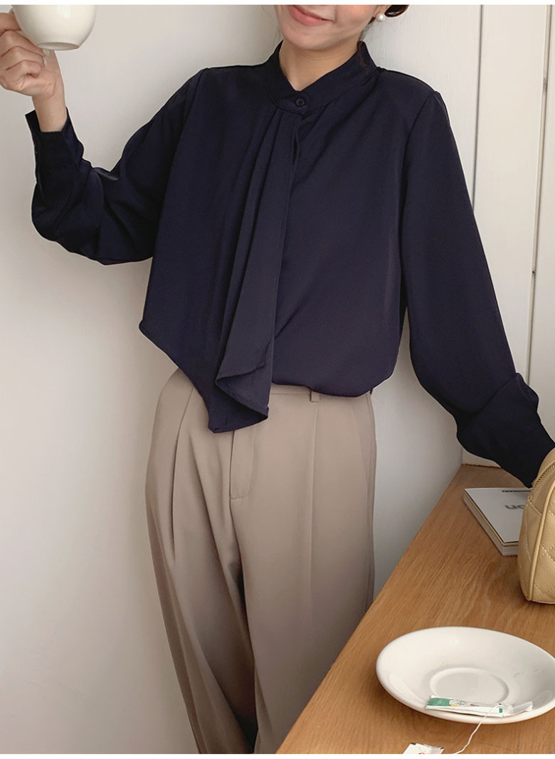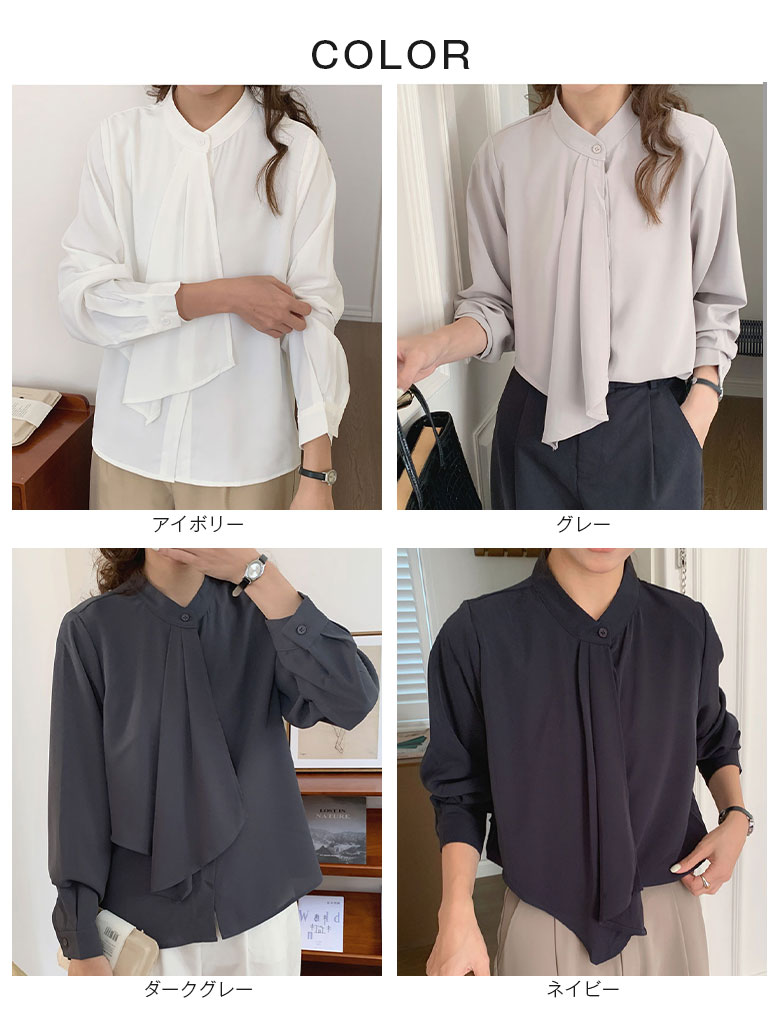 2A1 リボン シフォン シャツ レデ レディースファッション 42%Off アイボリー グレー ダークグレー ネイビー