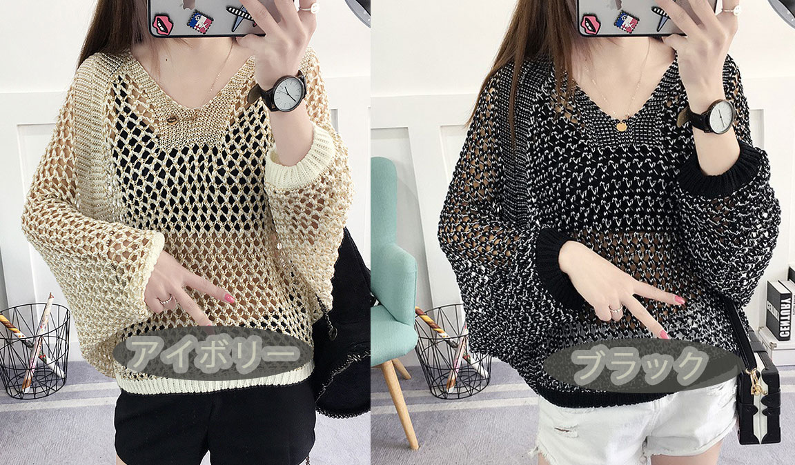 2B4ドルマンニット透かしあみニット トップス ニット セーター セーター お得なセール アイボリー ブラック