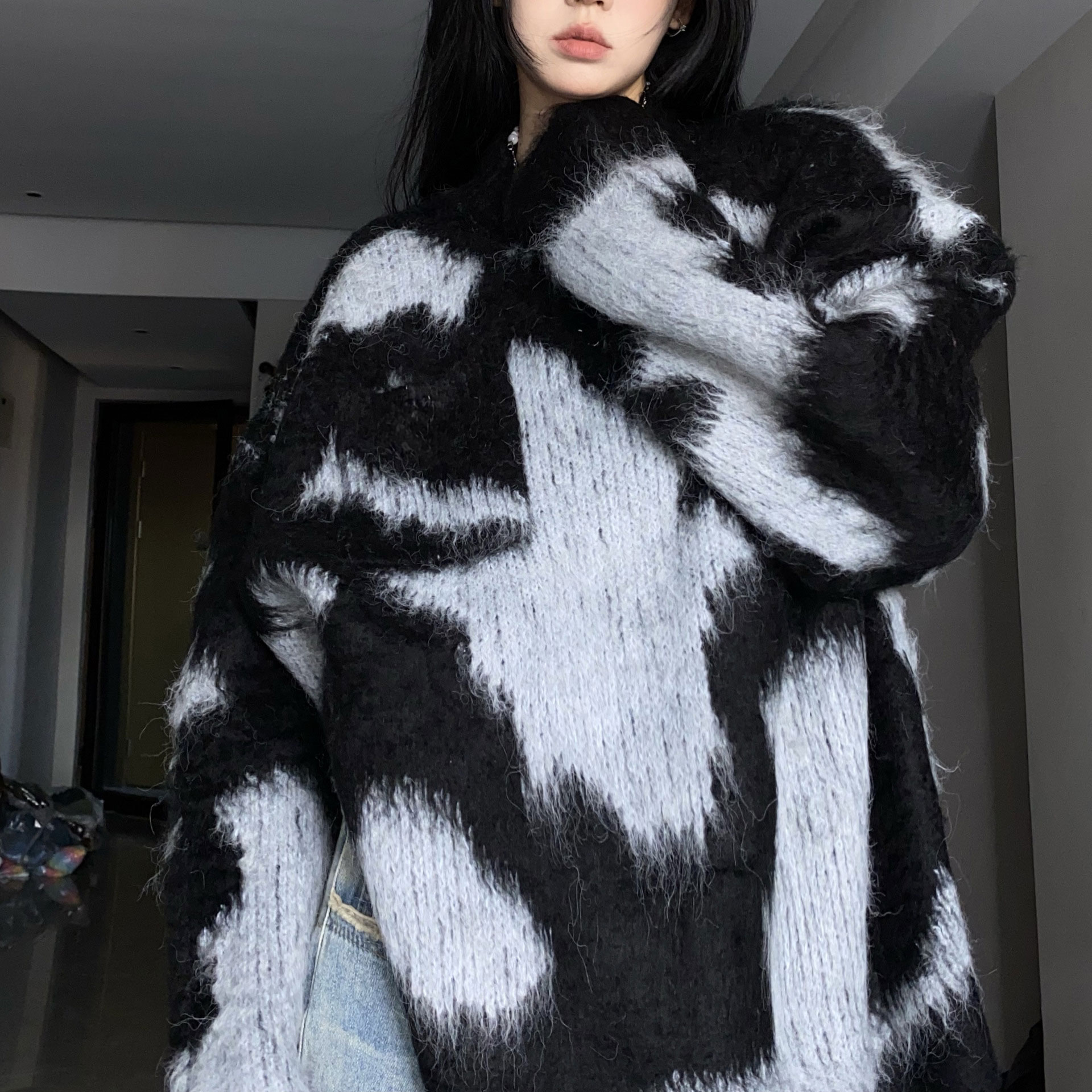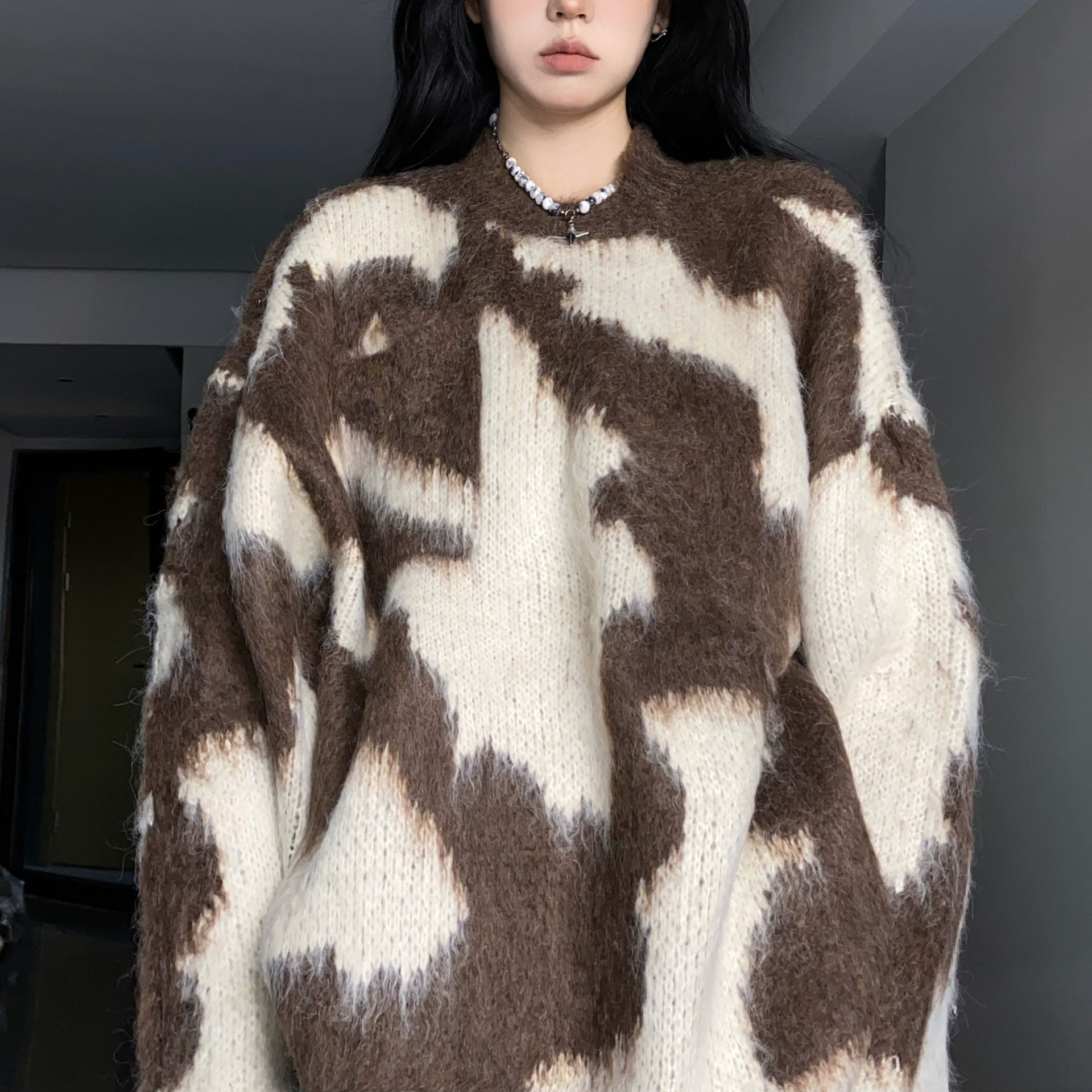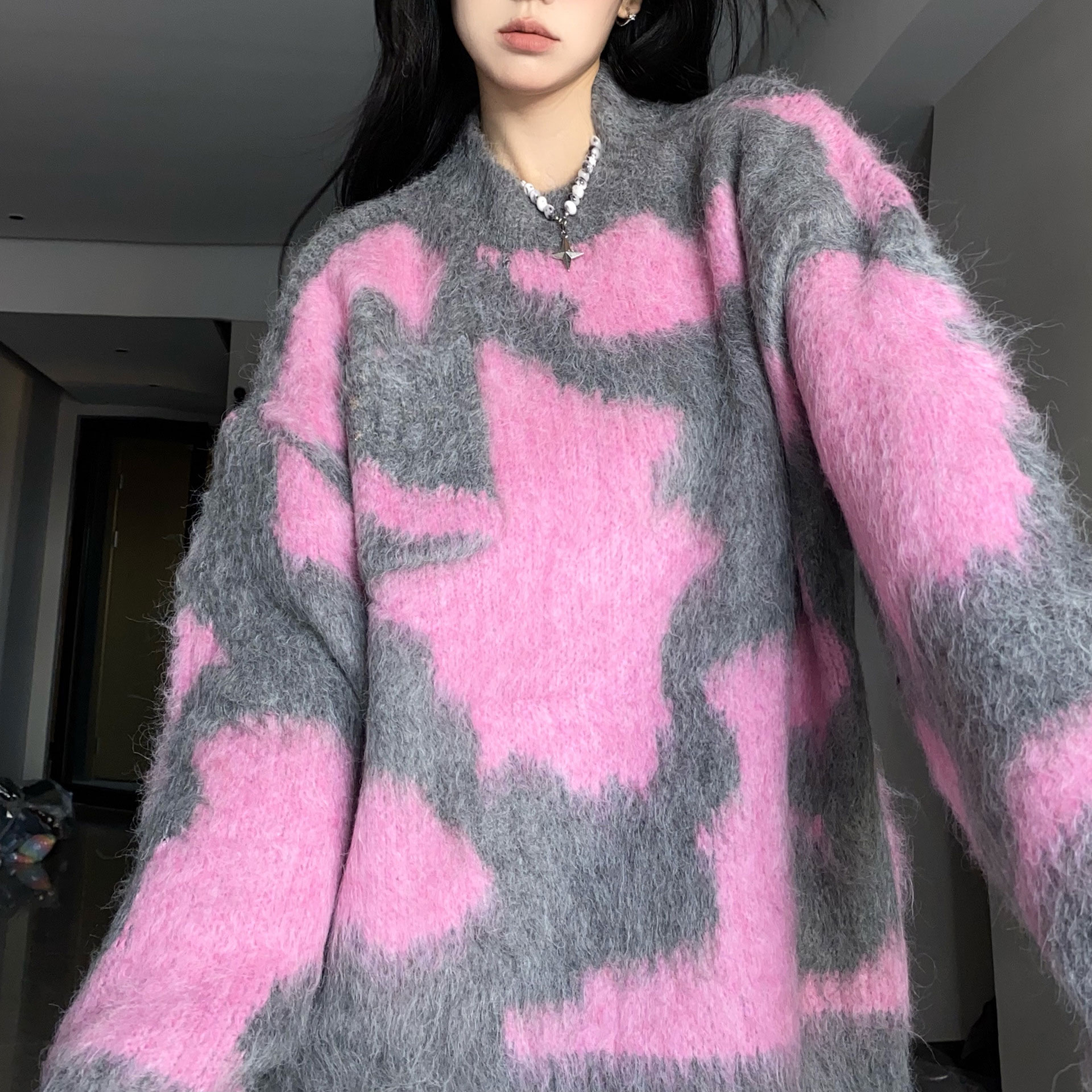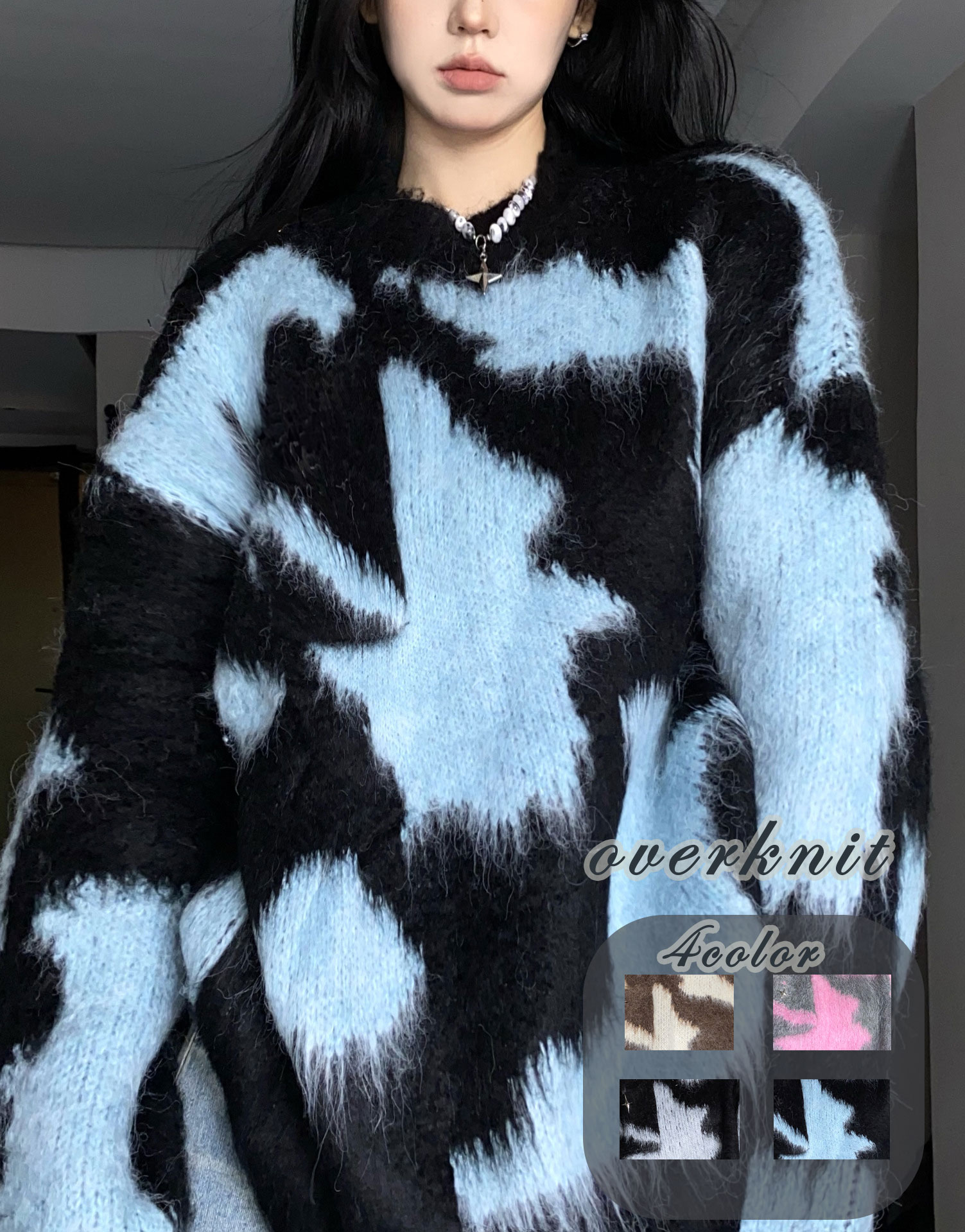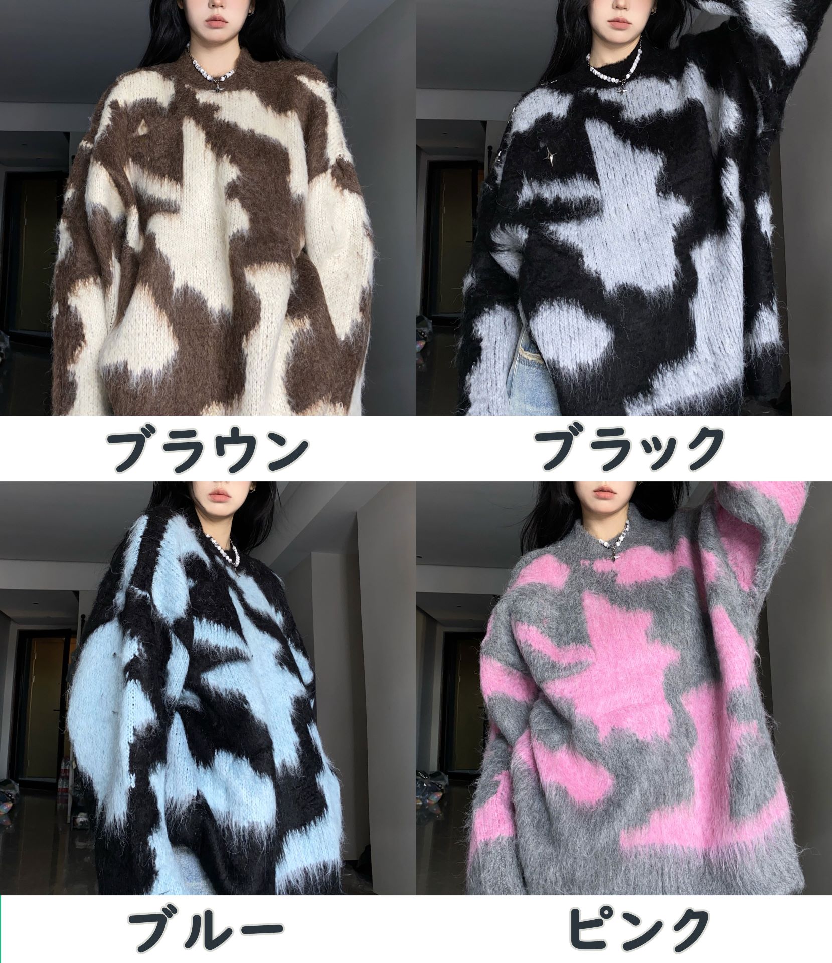 3B39 オーバーニット ラウンドネッ トップス ニット セーター セーター 豊富 ブラウン ブラック ブルー ピンク