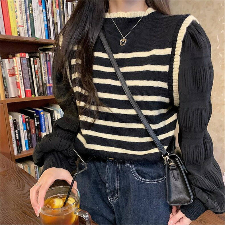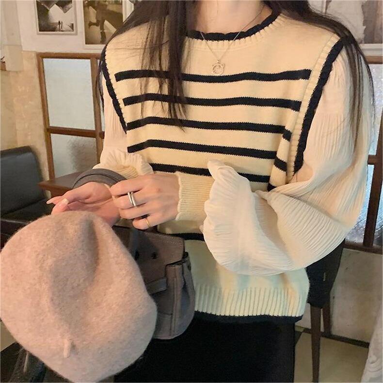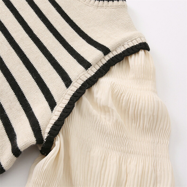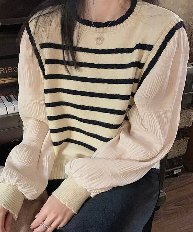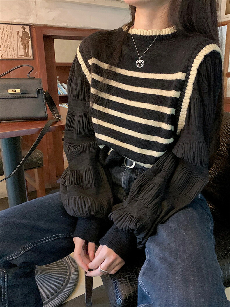 3B30 異素材パフスリーブ ニット トップス ニット セーター セーター 豊富な品揃え アイボリー ブラック