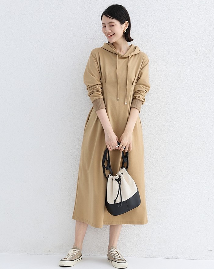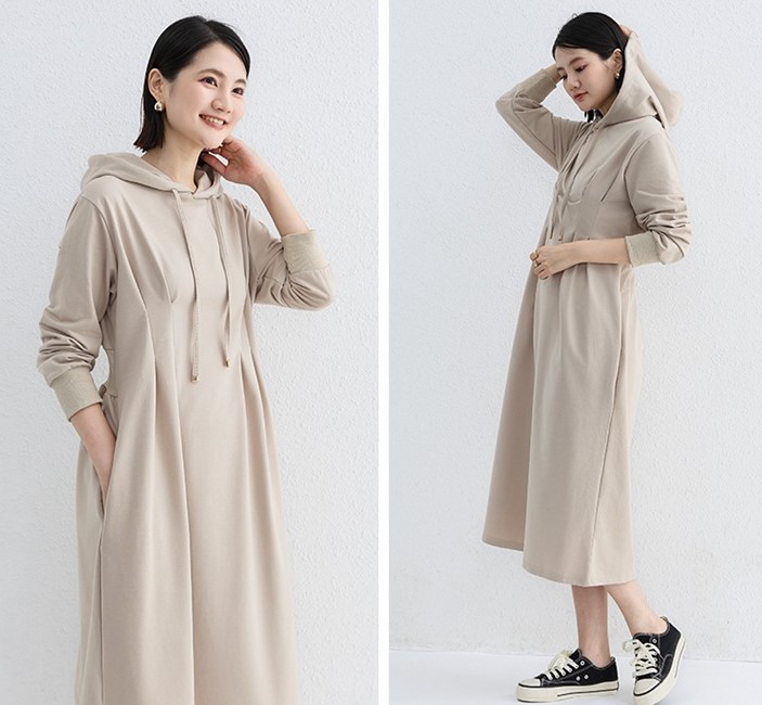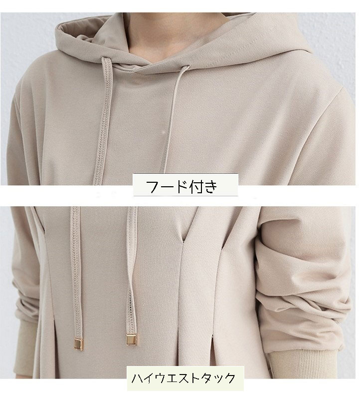 2A4 フードワンピース カジュアル レディースファッション 42%Off Mサイズ Lサイズ アイボリー グレー ベージュ ネイビー ブラック