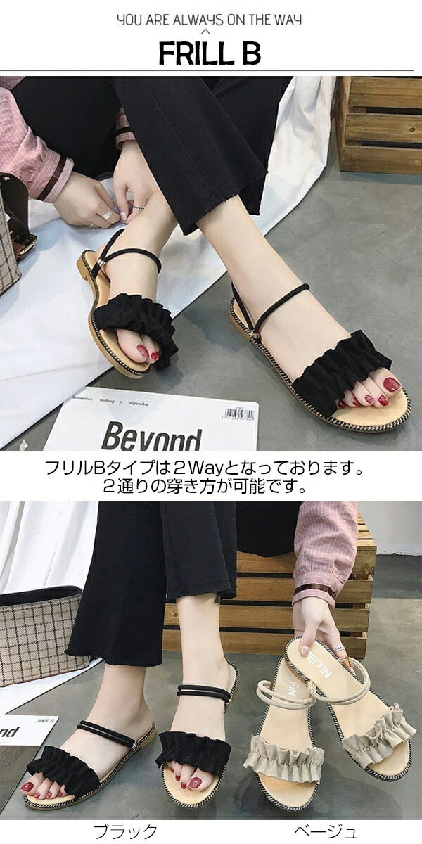 フラットサンダル かわいい フリル リ レディース靴 サンダル ビーチサンダル 豊富 37 38 39 40 フリルA ブラック フリルA ベージュ フリルA マスタード フリルB ブラック フリルB ベージュ リボンA ブラック リボンA ベージュ リボンA マスタード リボンA ゴールド リボンB ブラック リボンB ベージュ