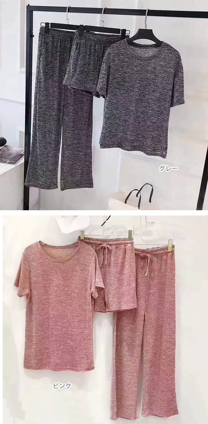 1B23 ルームウェア上下3点セット レディース ナイトウェア ルームウェア ルームウェア 上下セット 人気 グレー ピンク