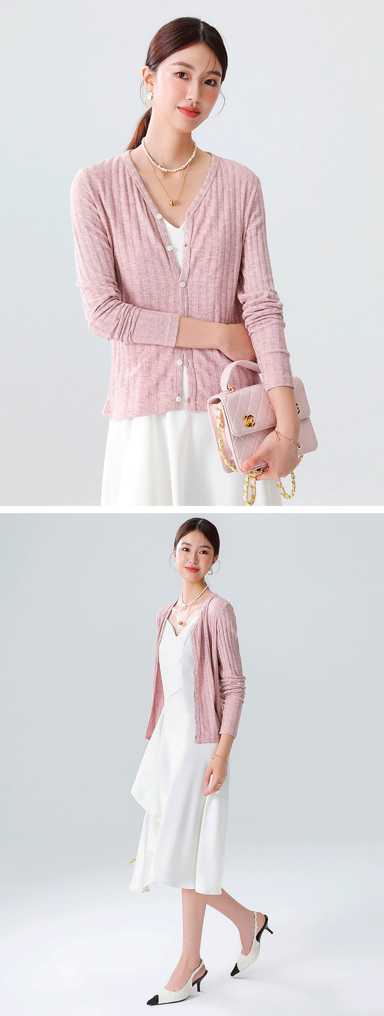 3B31 カーディガン Vネック 無地 トップス カーディガン ボレロ 新作 M L ホワイト ピンク ベージュ グレー ブラック