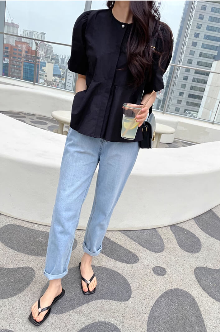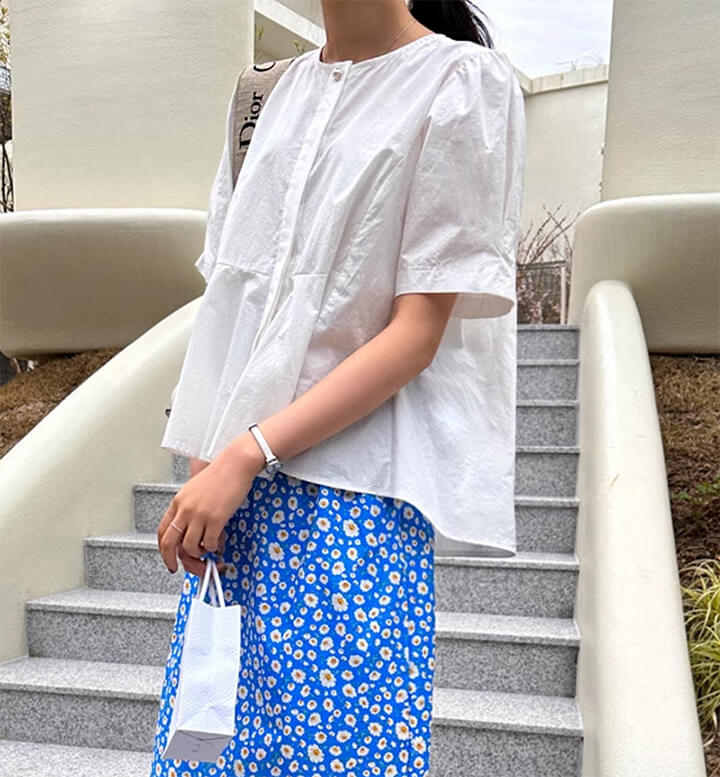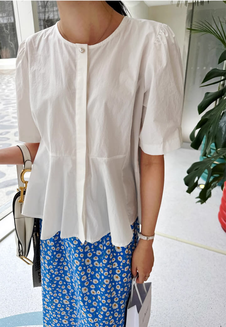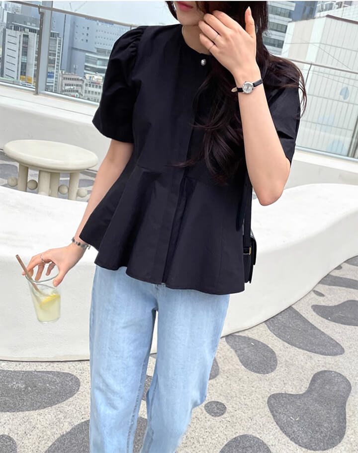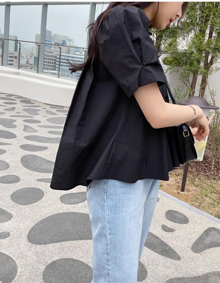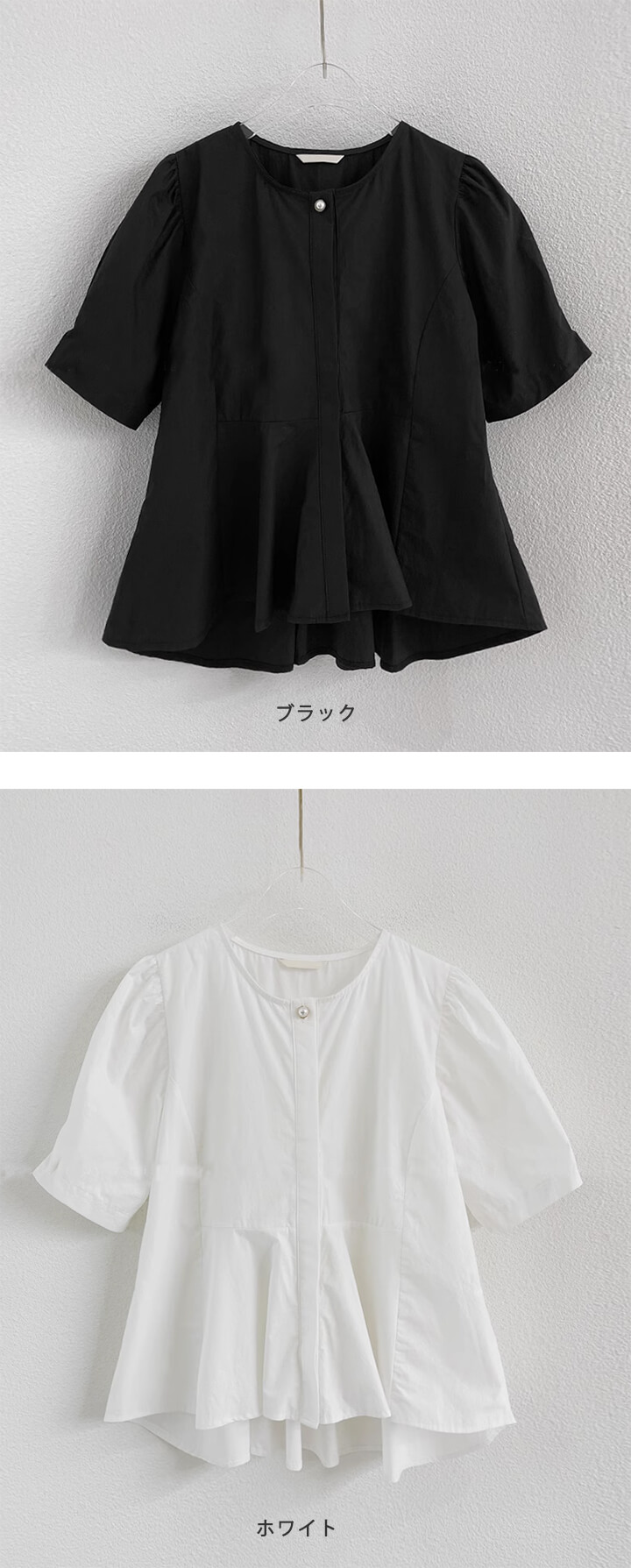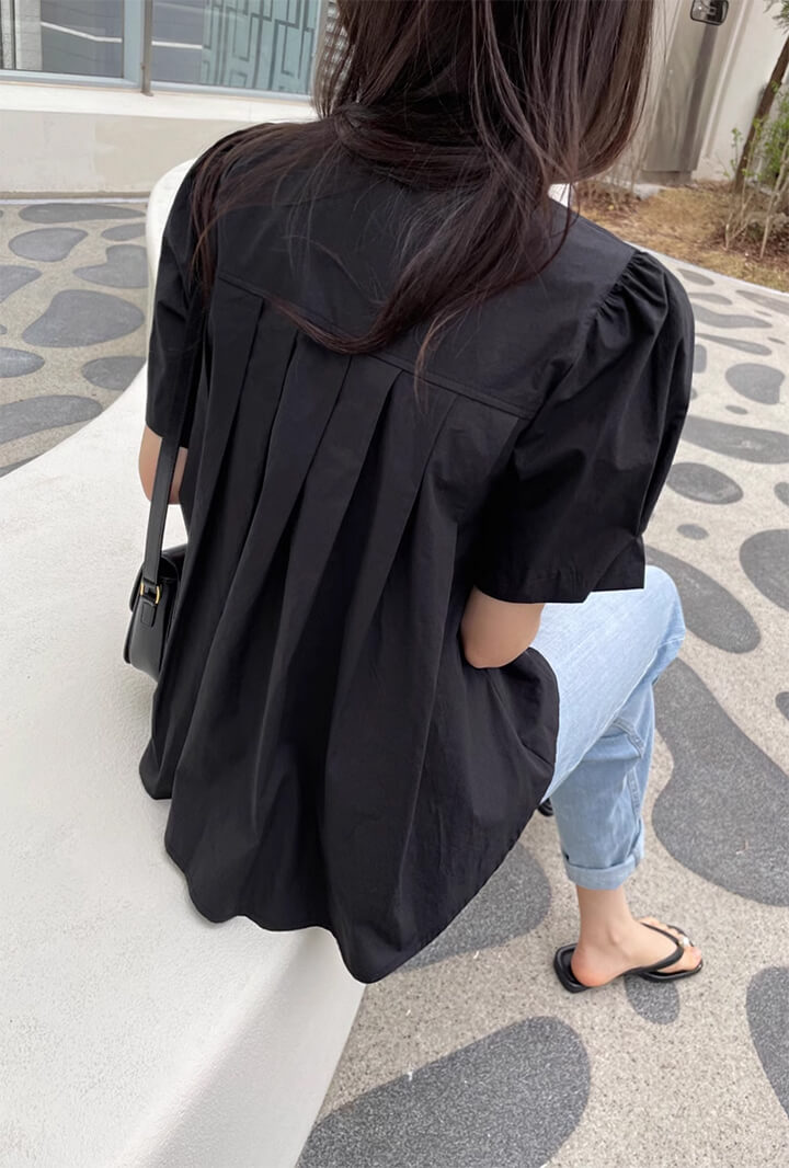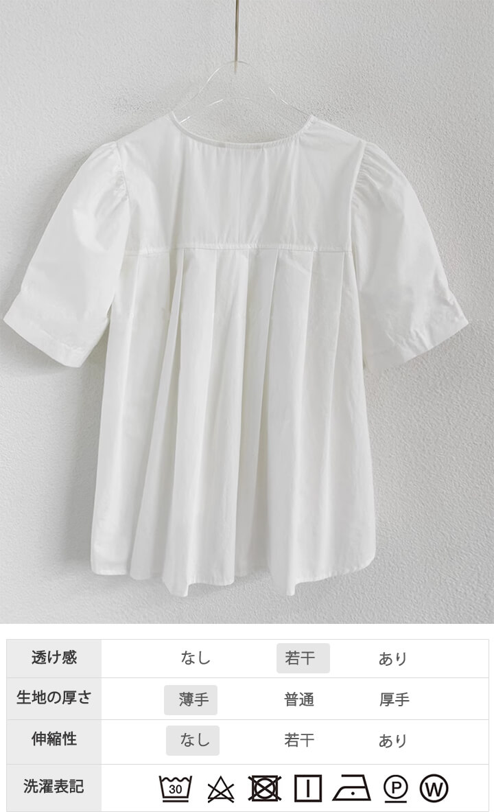 2A41 バックプリーツ半袖 ブラウス トップス シャツ ブラウス 割引 ホワイト ブラック