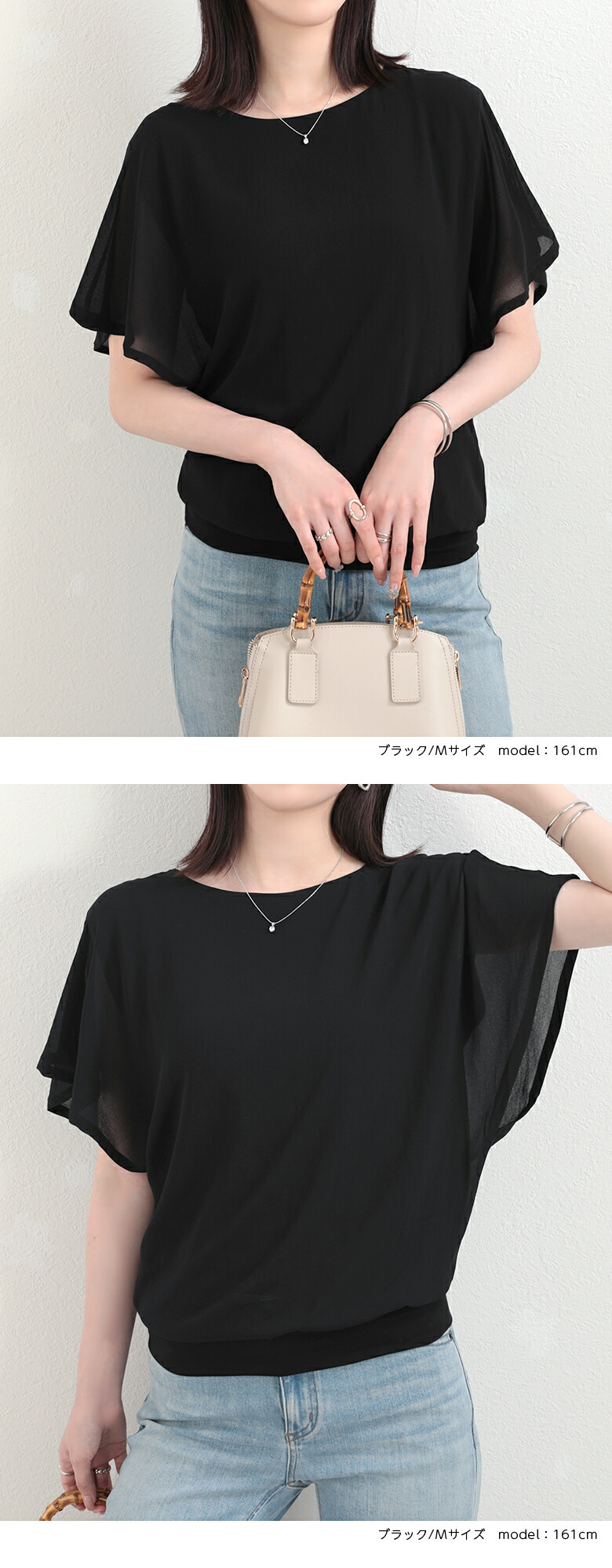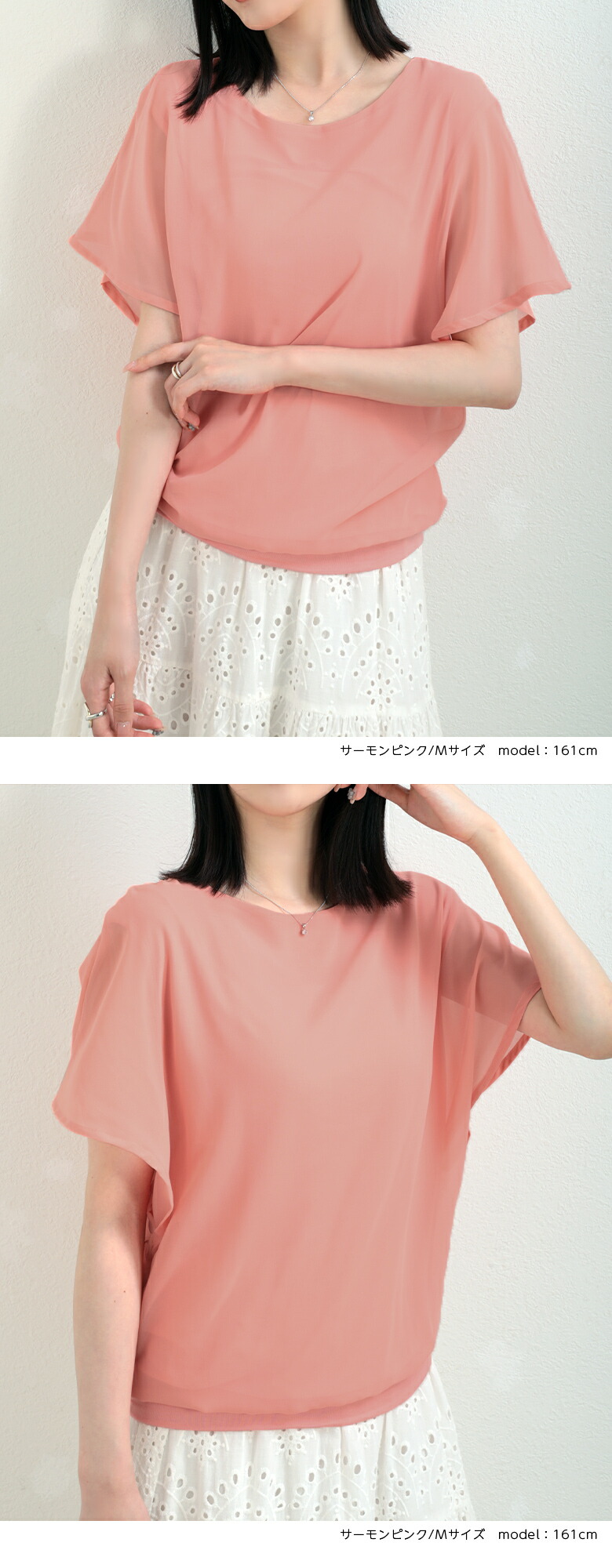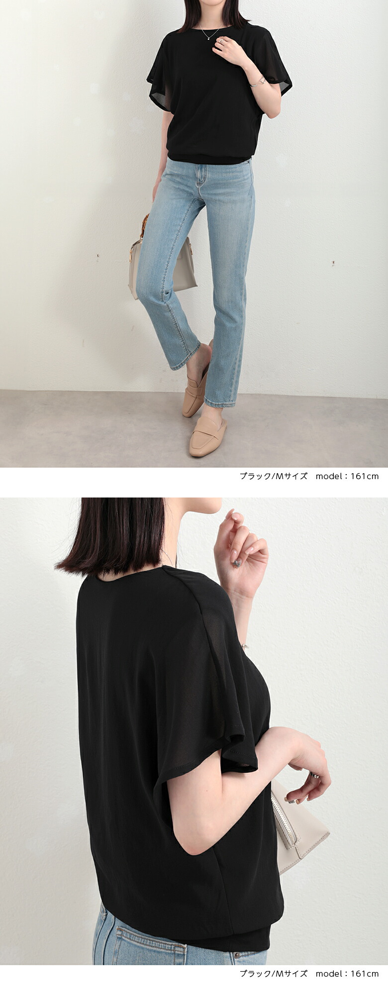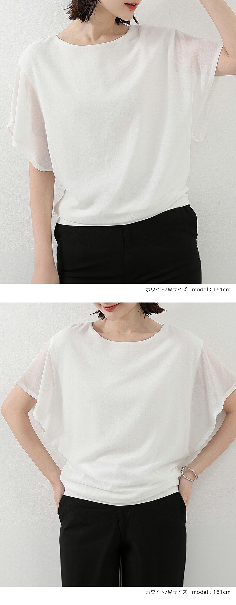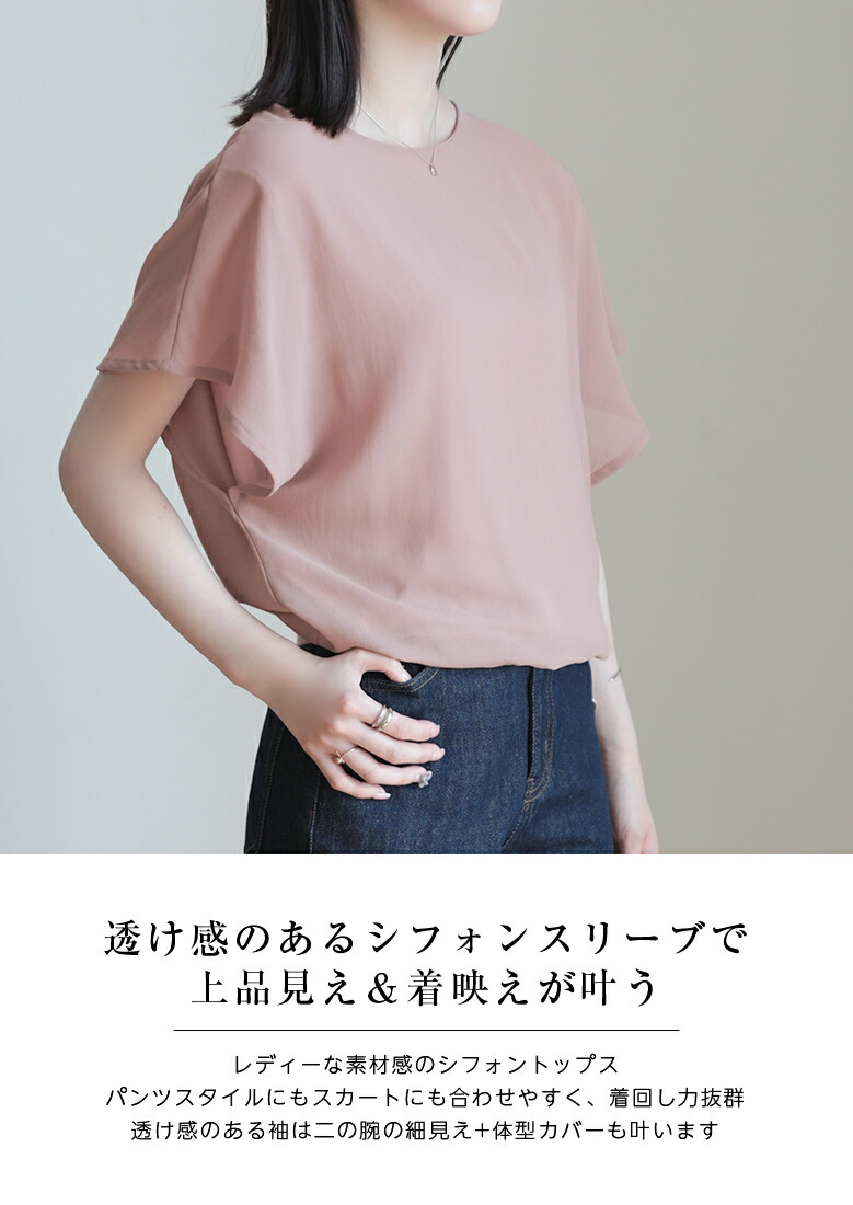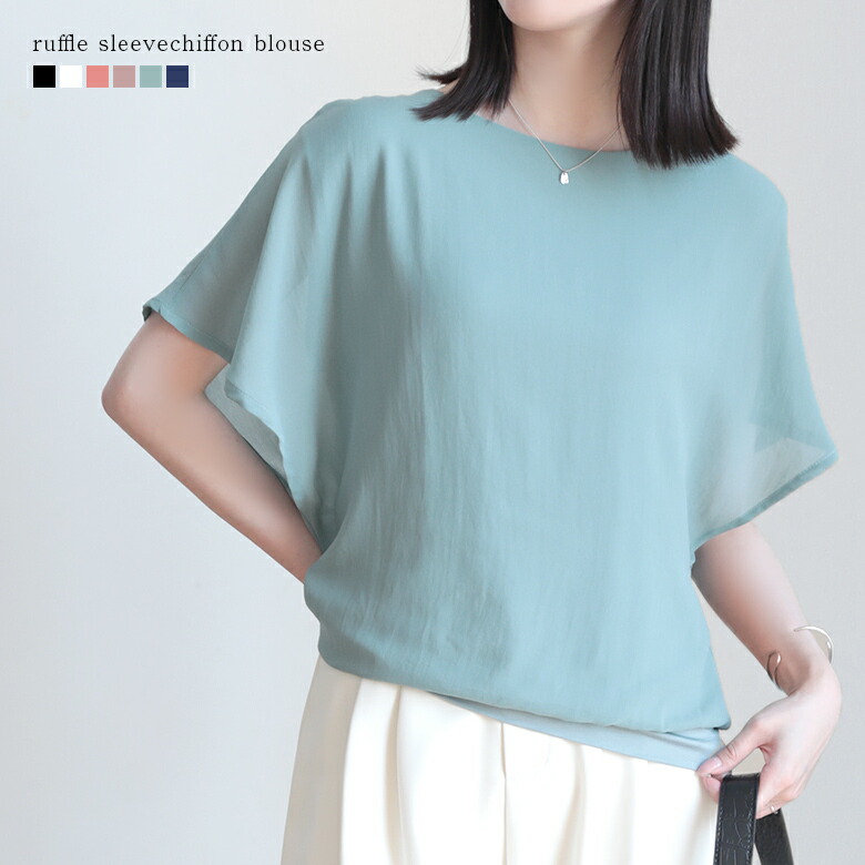 2A36 フレンチスリーブ シフォンブ トップス Tシャツ カットソー 特集 M L ホワイト ブラック サーモンピンク ネイビー ロースピンク サックスブルー ベージュ ブラウン