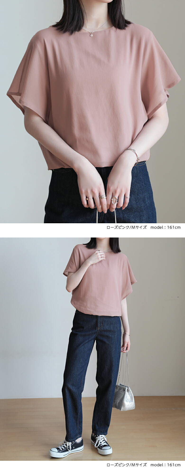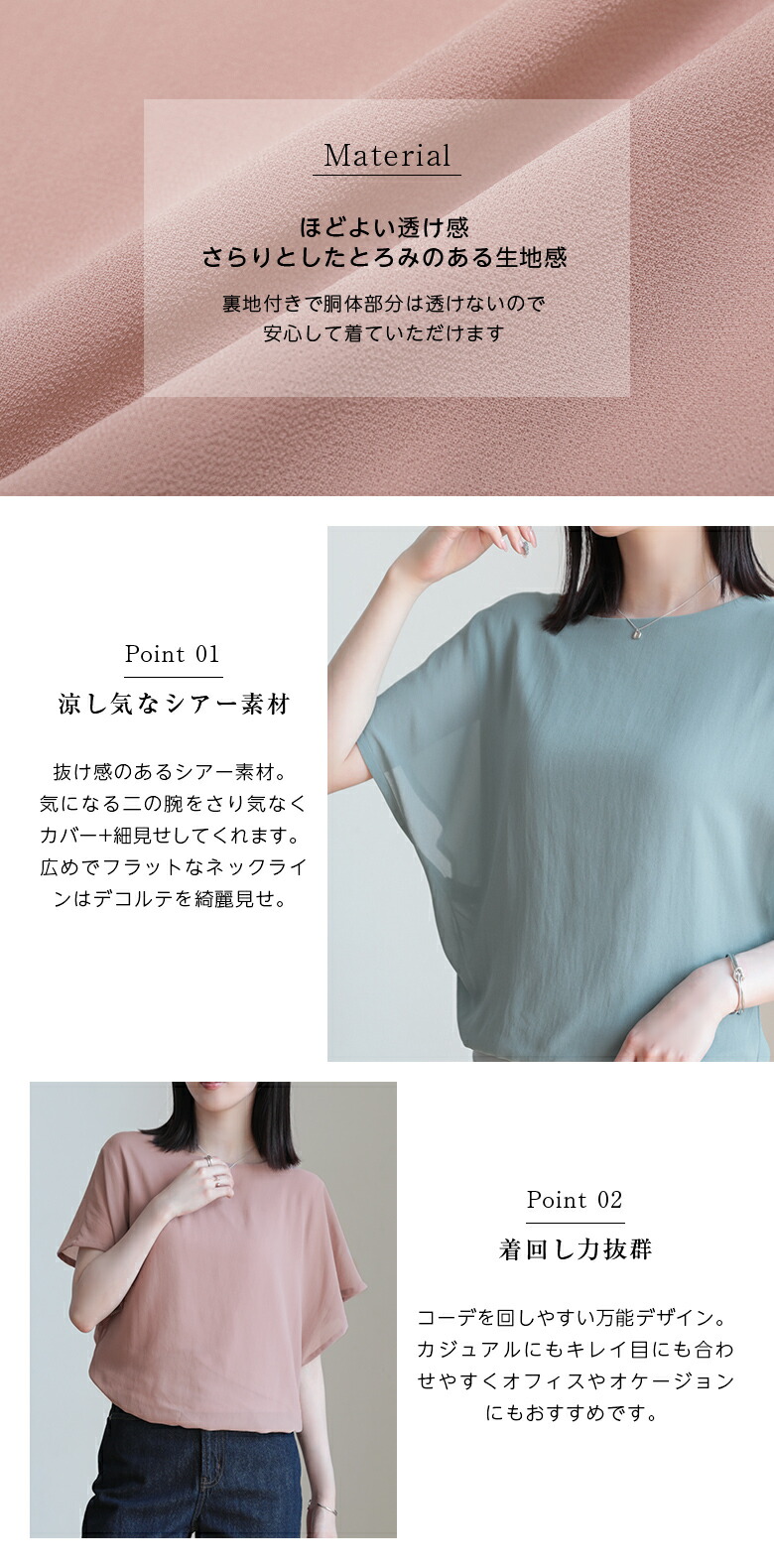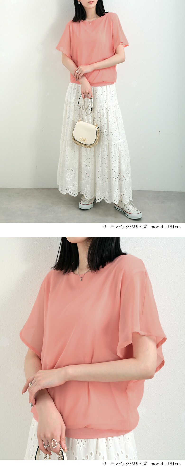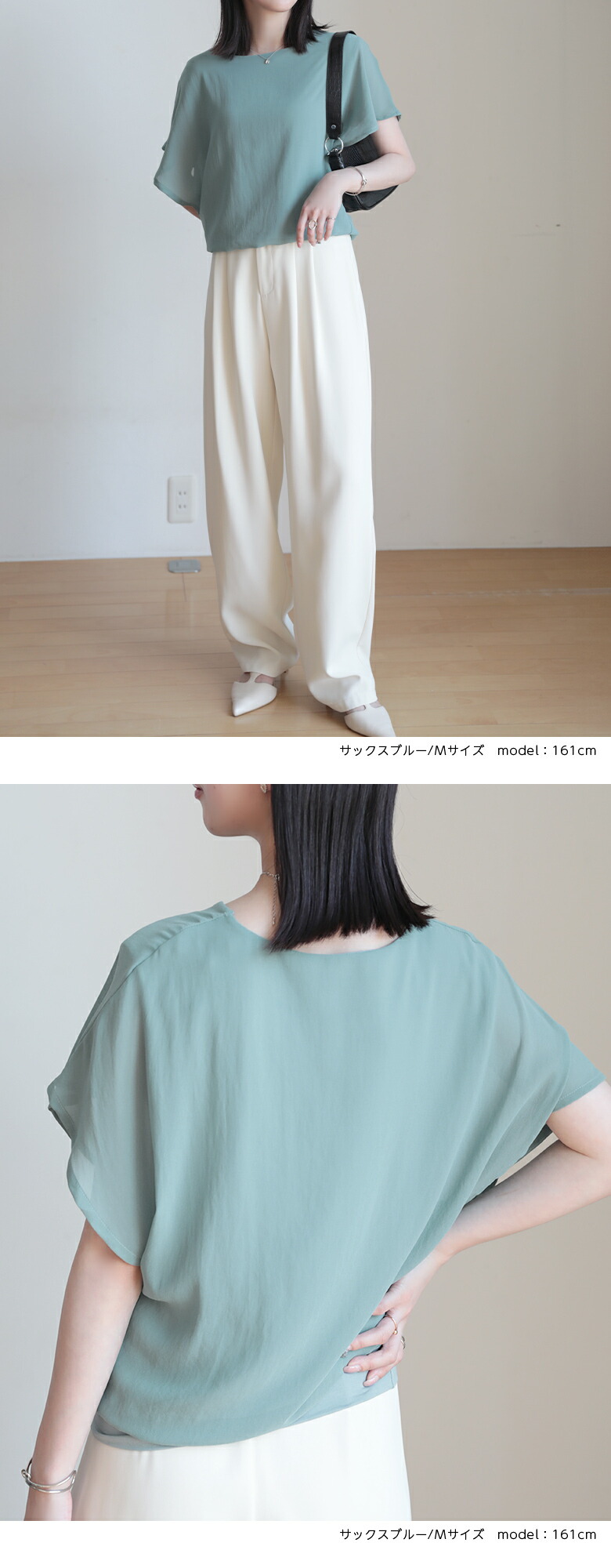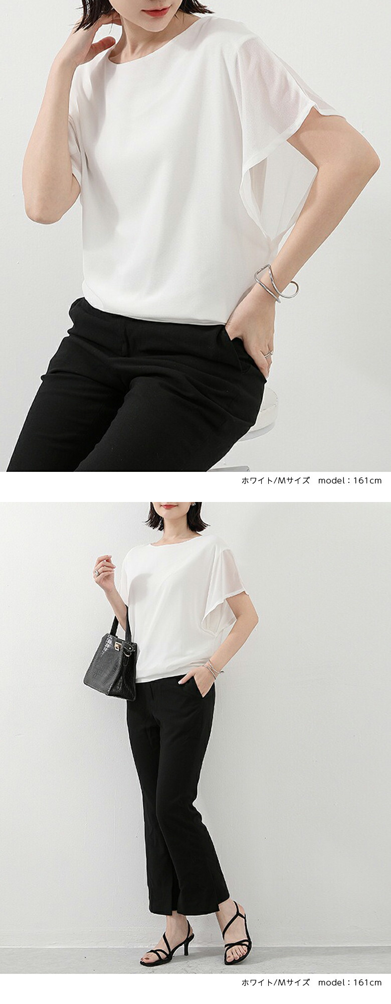 2A36 フレンチスリーブ シフォンブ トップス Tシャツ カットソー 特集 M L ホワイト ブラック サーモンピンク ネイビー ロースピンク サックスブルー ベージュ ブラウン