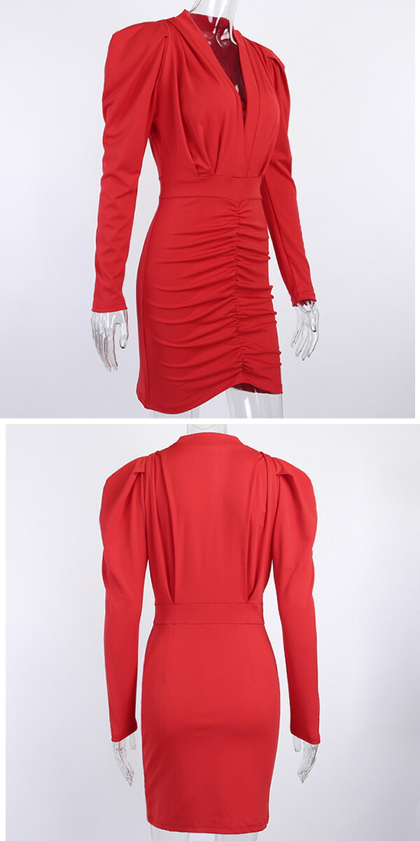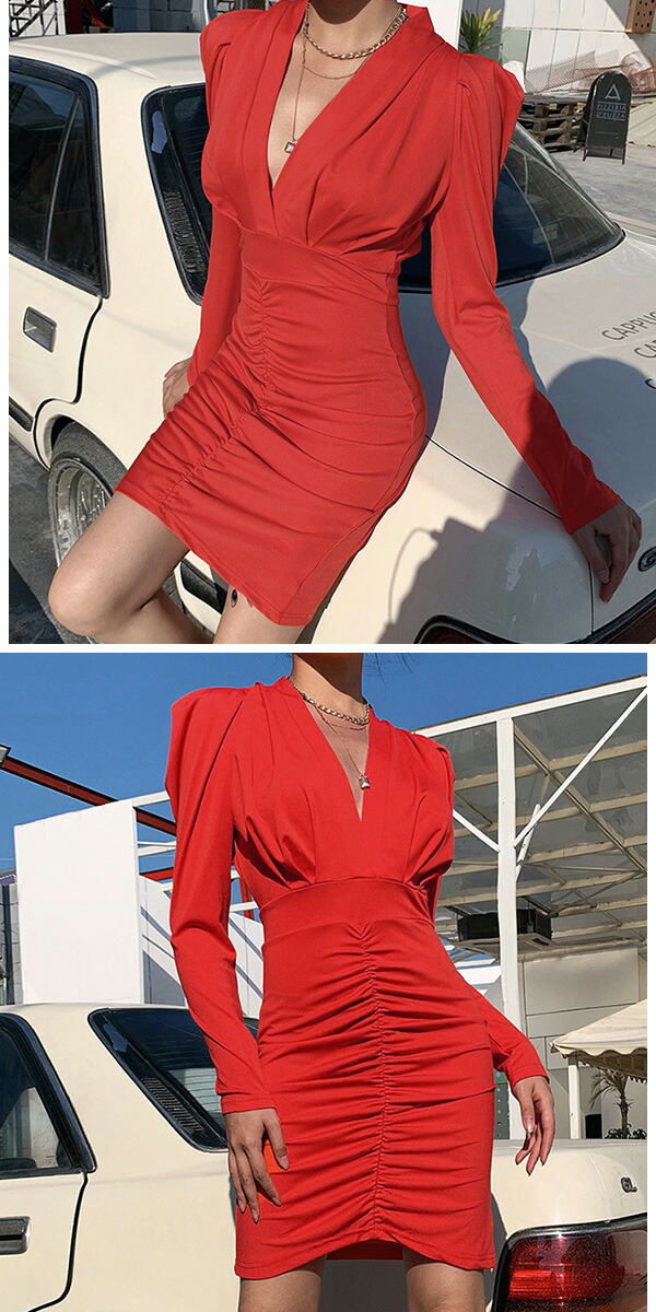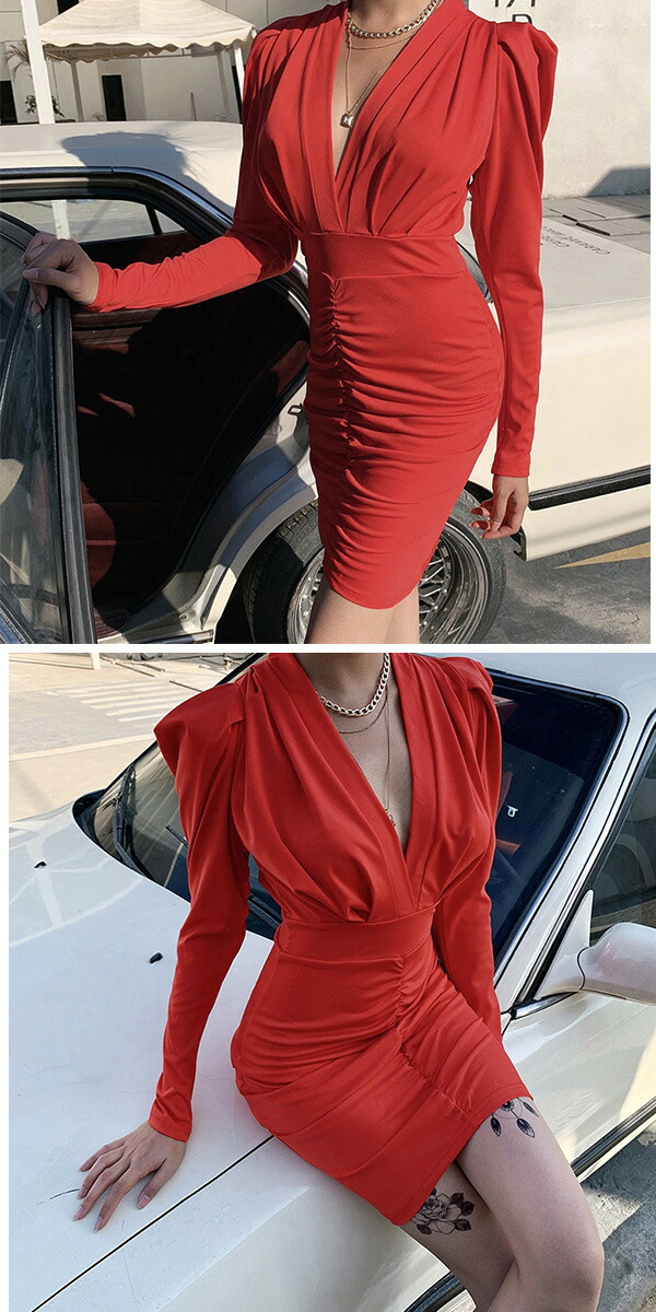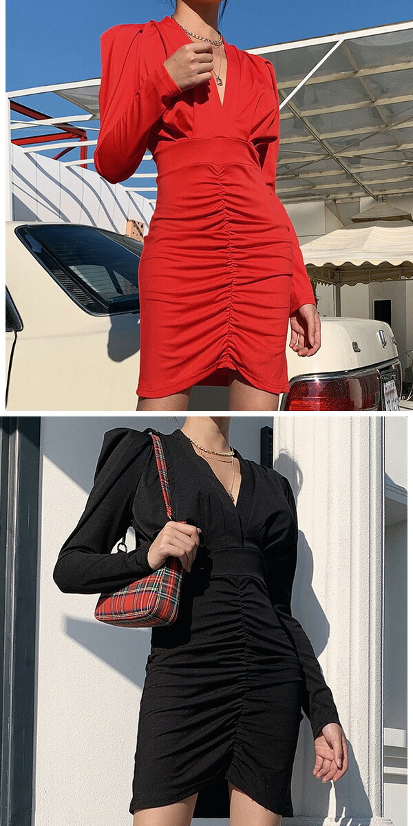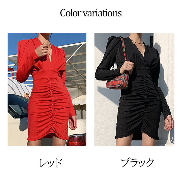 2A50 2カラーVネックワンピース ワンピース 42%Off S M L レッド ブラック